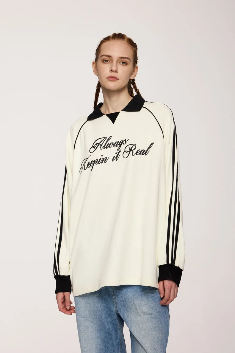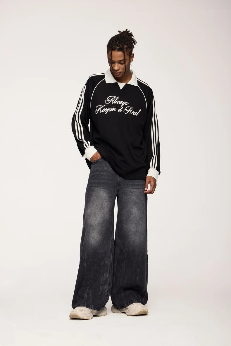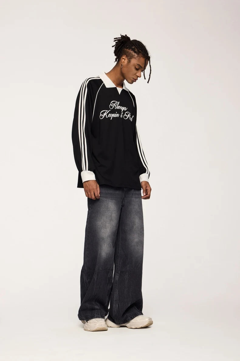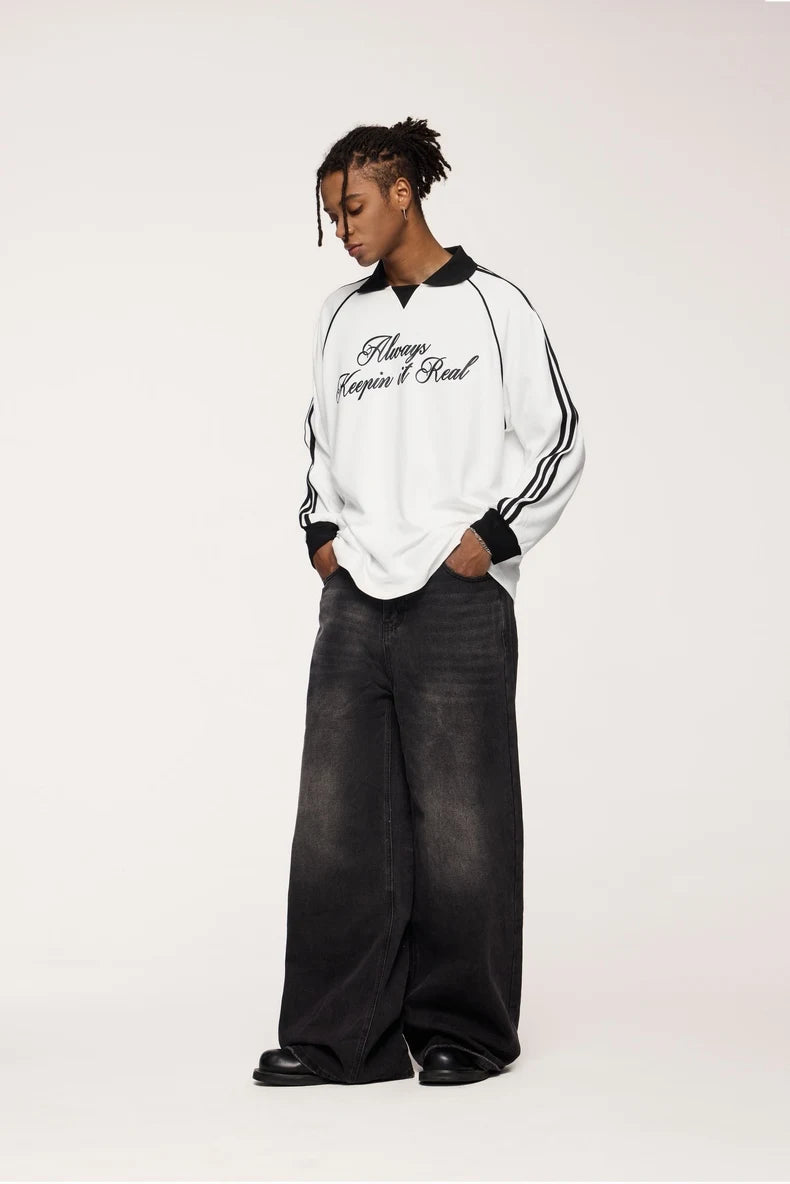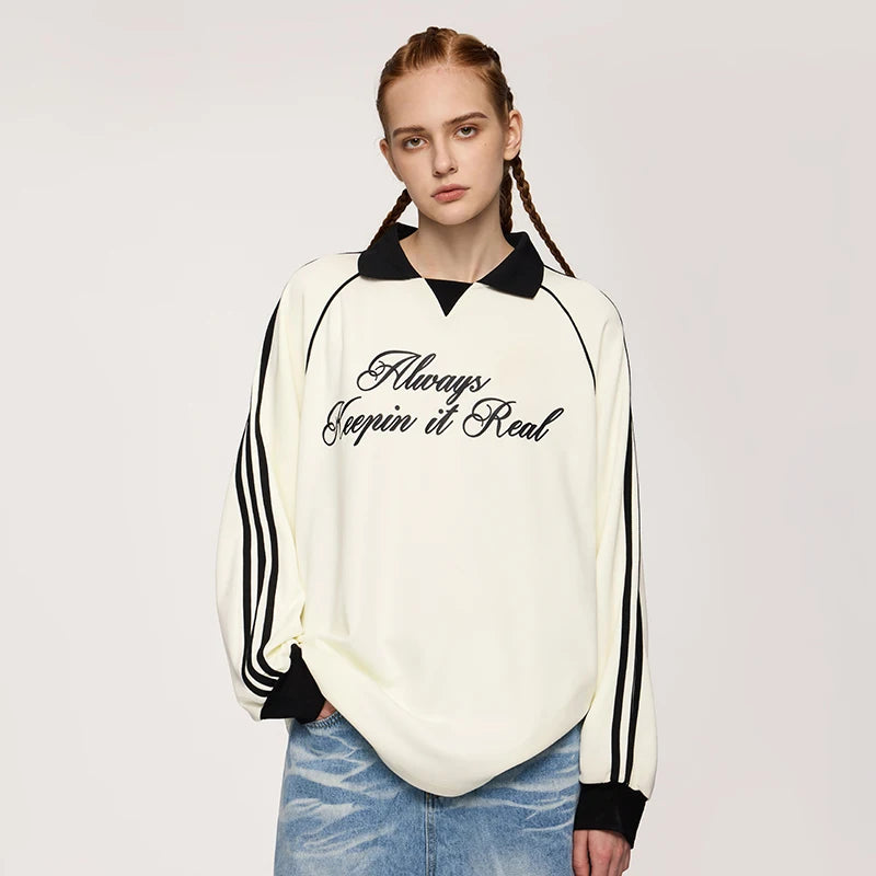 Unisex Streetwear POLO Trendy Oversized Colourblock Long-sleeved T-Shirt