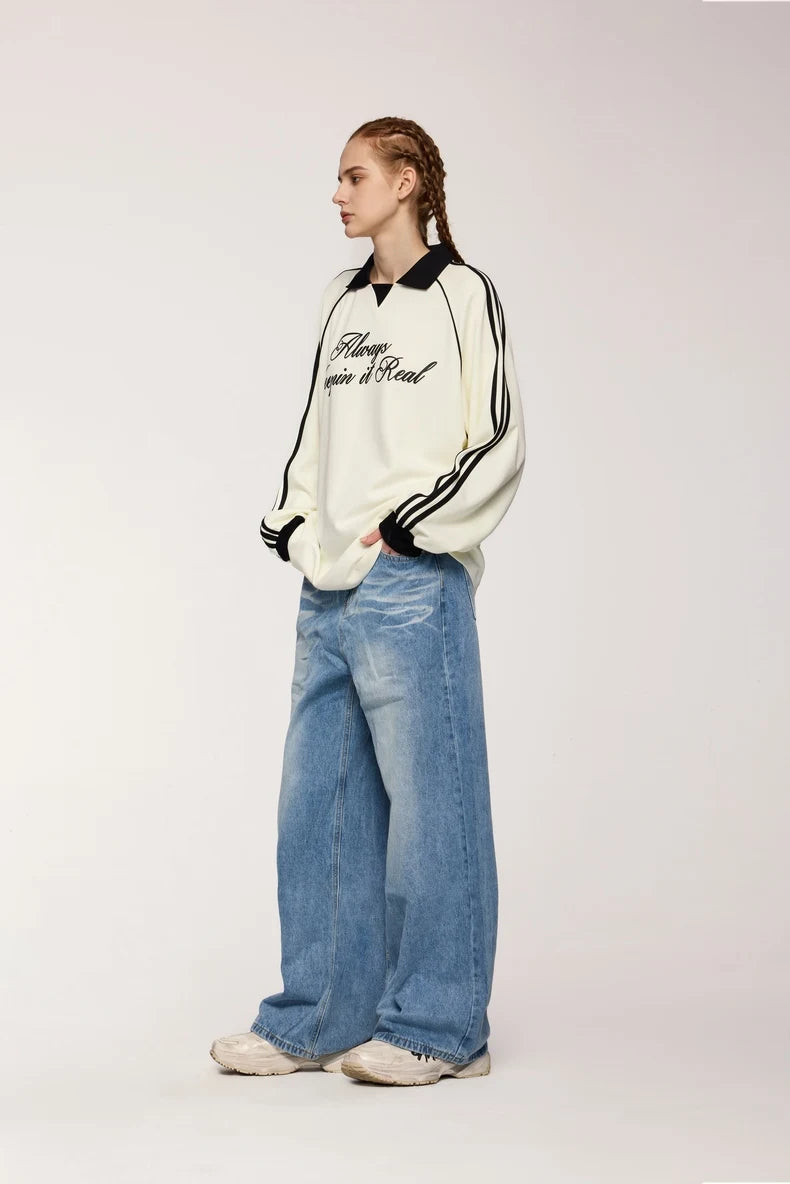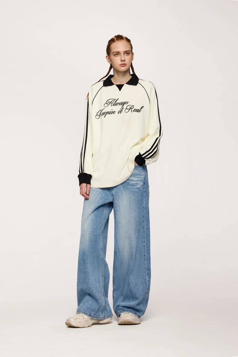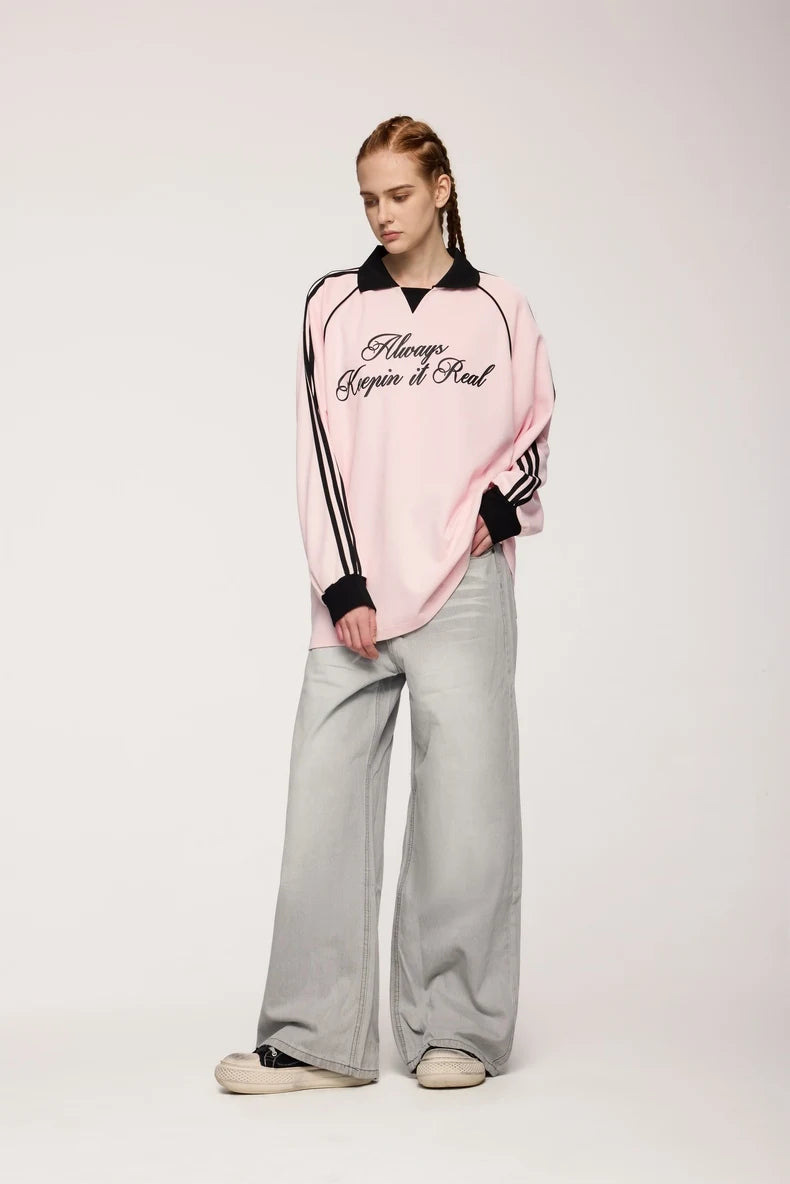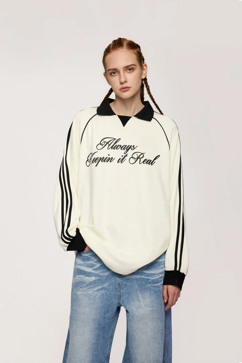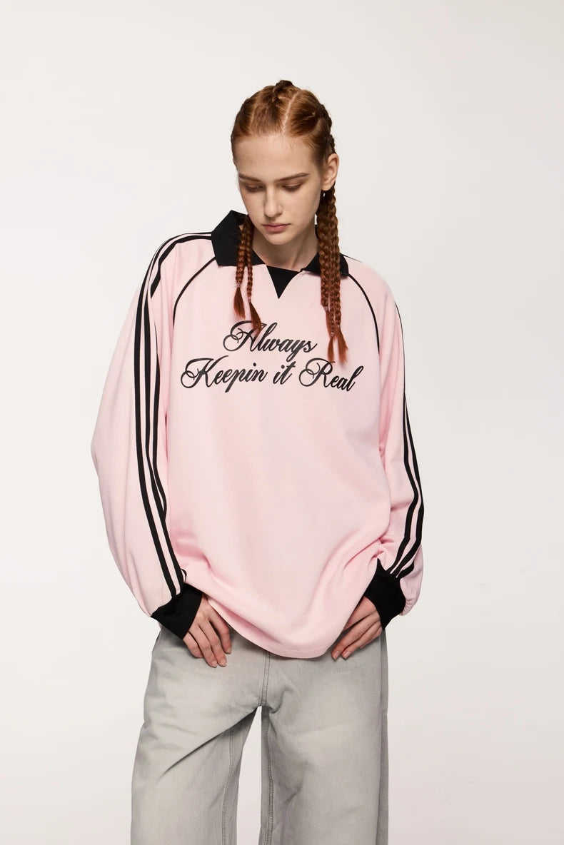 Unisex Streetwear POLO Trendy Oversized Colourblock Long-sleeved T-Shirt