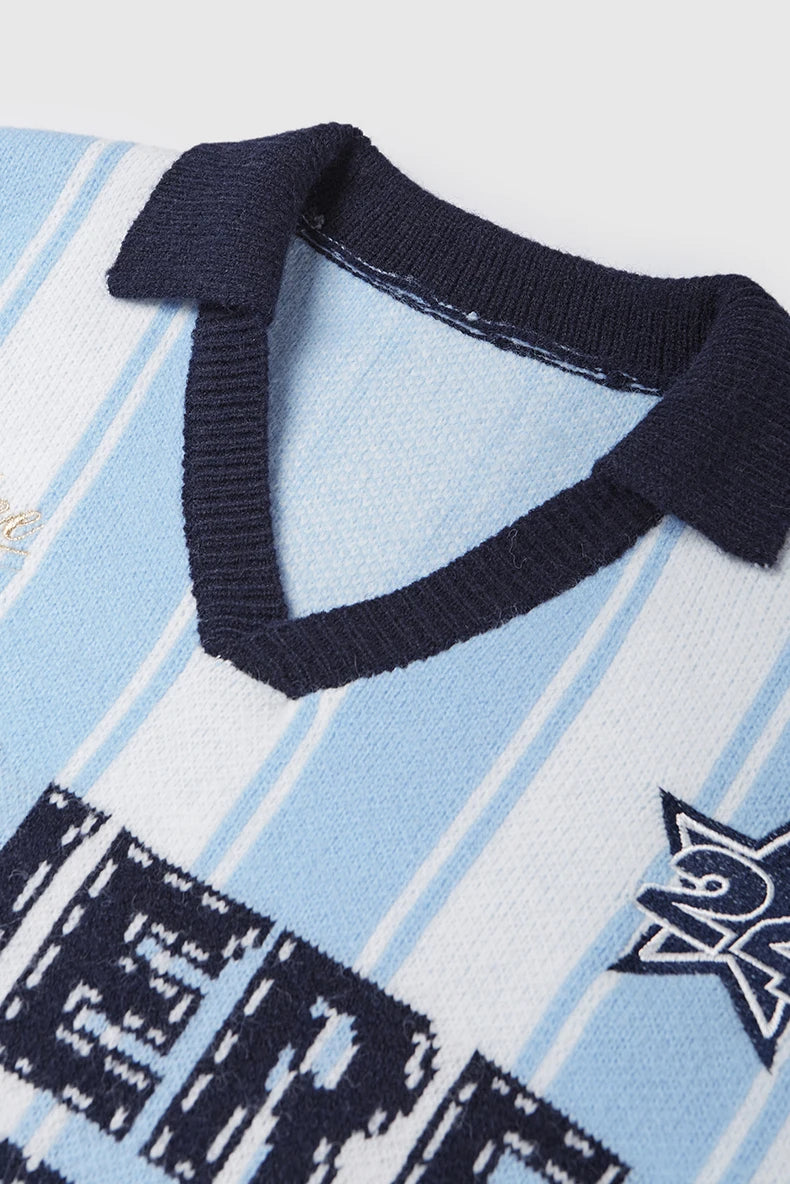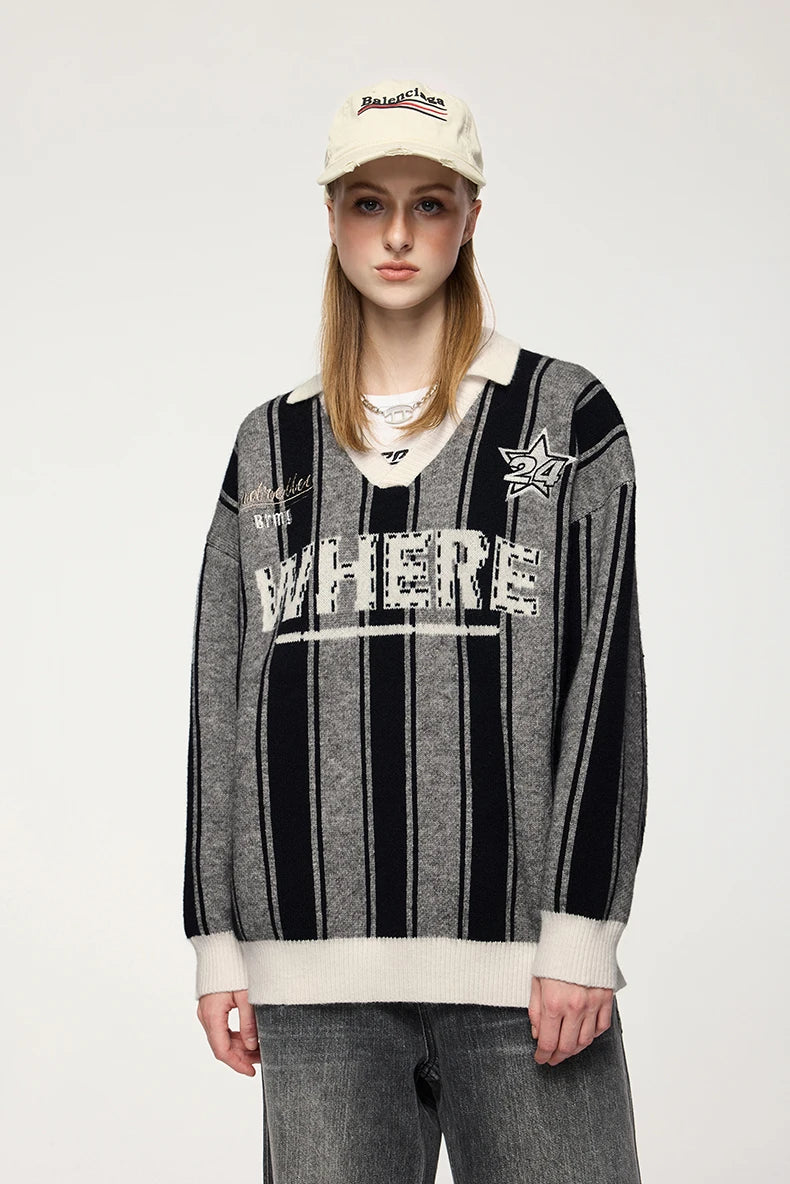 Unisex Vertical Stripe Cozy Retro Sporty Loose Colorblock Knit Pullover Top Sweater