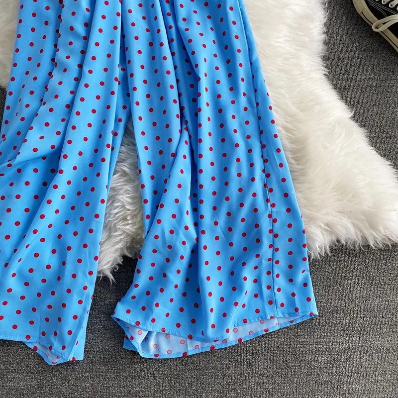 Women's V-Neck Floral Print Jumpsuit - Dolman Sleeves Wide Leg Trousers