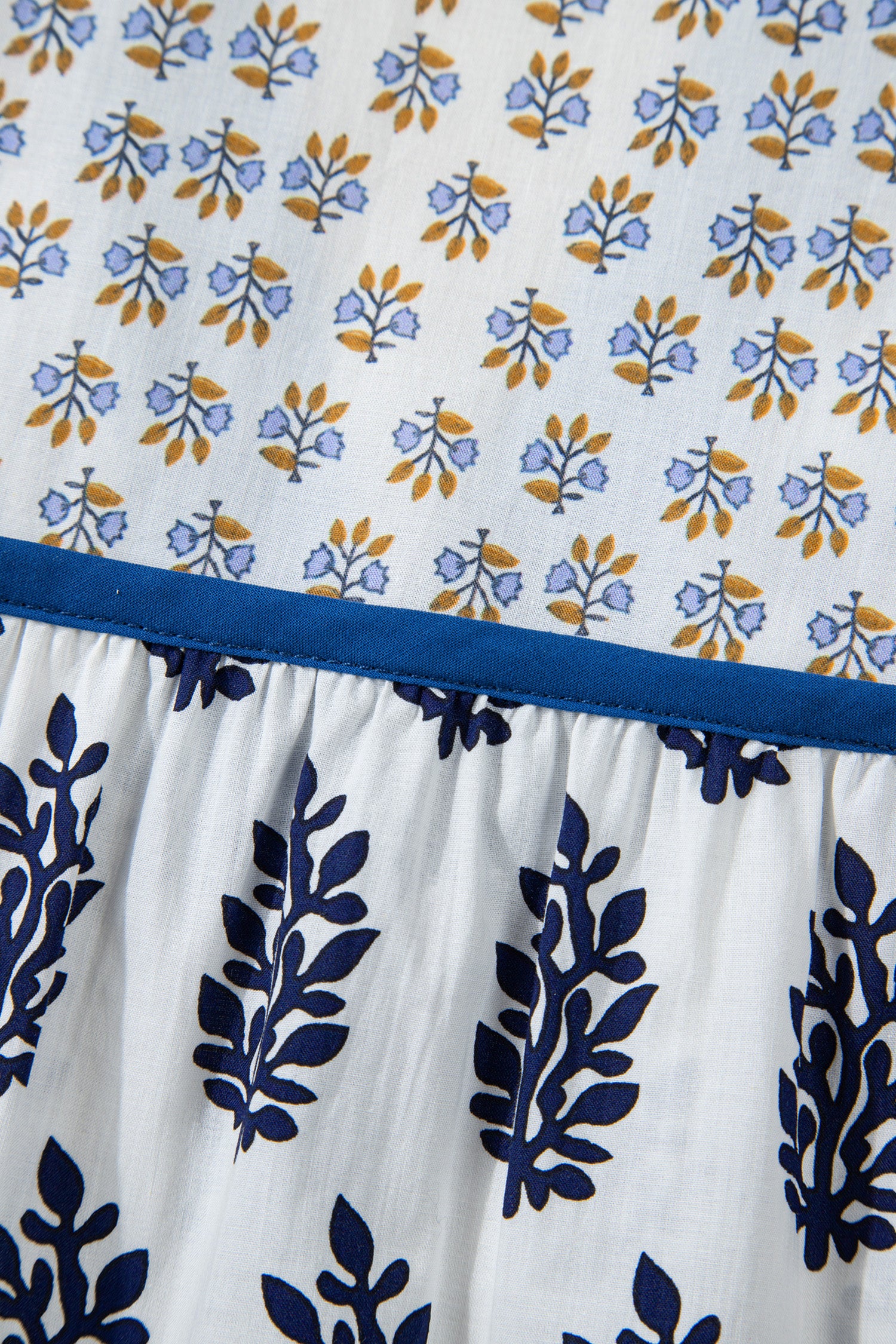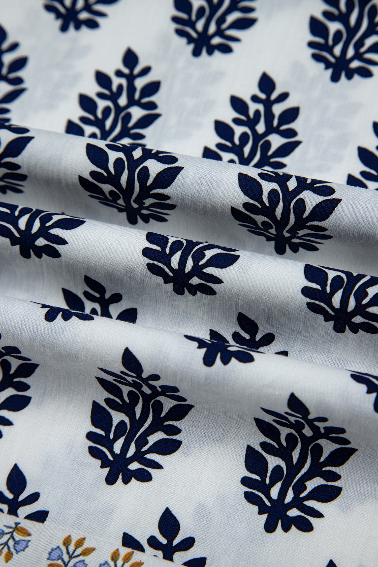 Embrace bohemian elegance with this stunning floral patchwork blouse in crisp white. Featuring romantic puff sleeves, contrast trim detailing, and a flattering split neckline, this piece combines feminine charm with free-spirited style for a truly captivating look.
