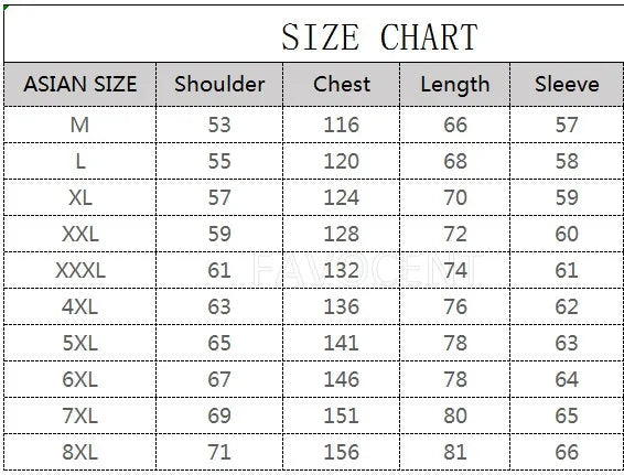 | 3XL-8XL | 3XL-8XL | 56-66 | 124-156 | 54-66 | 83-95 | 66-72 |