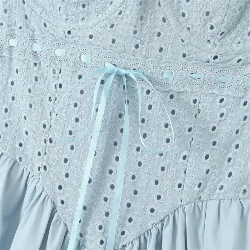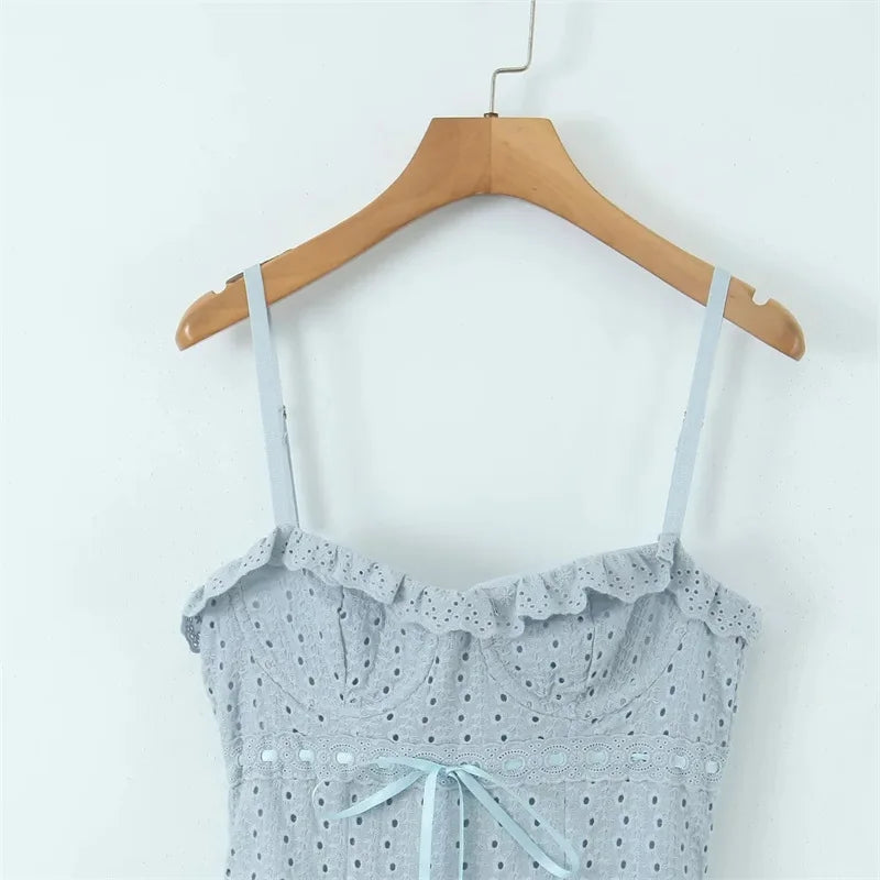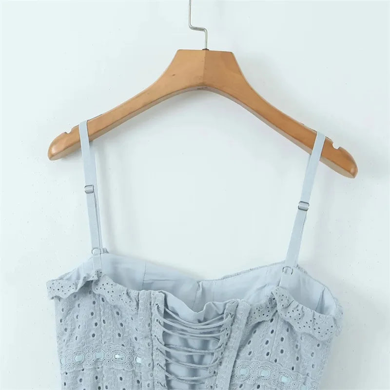 Women Blue Midi Spaghetti Strap Crochet Dress