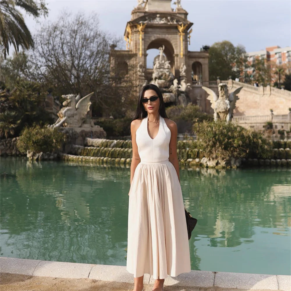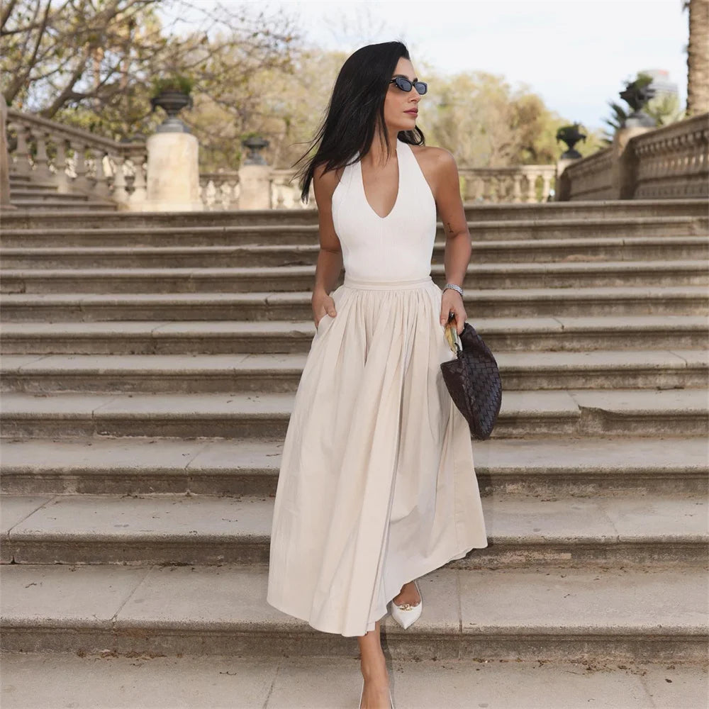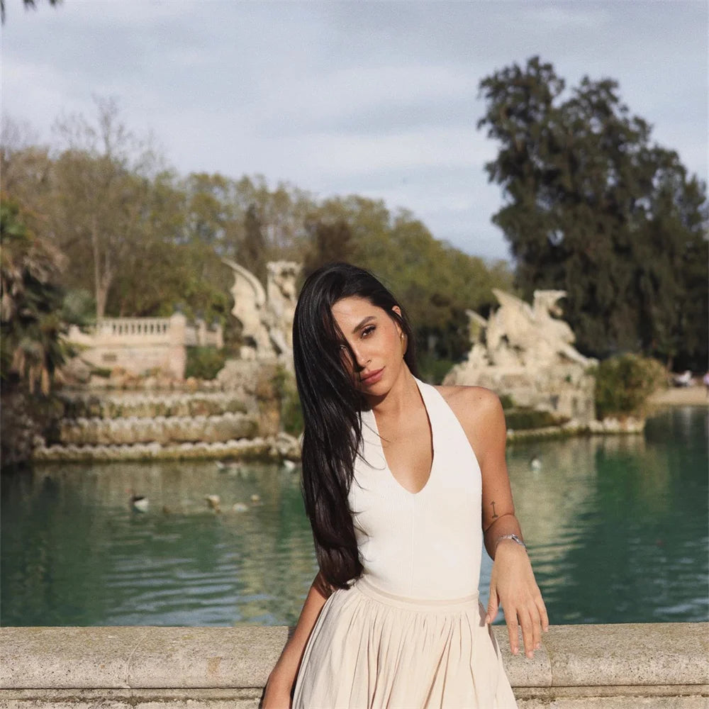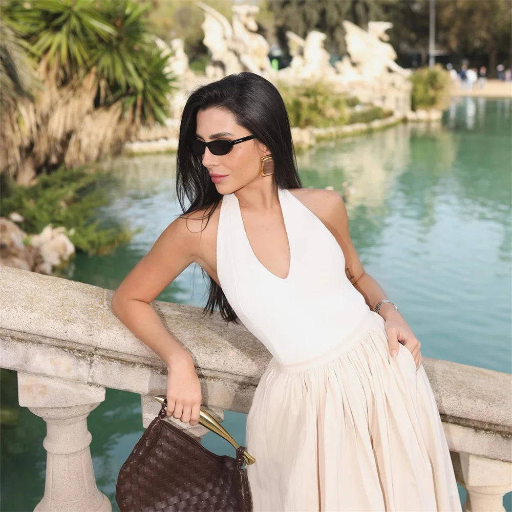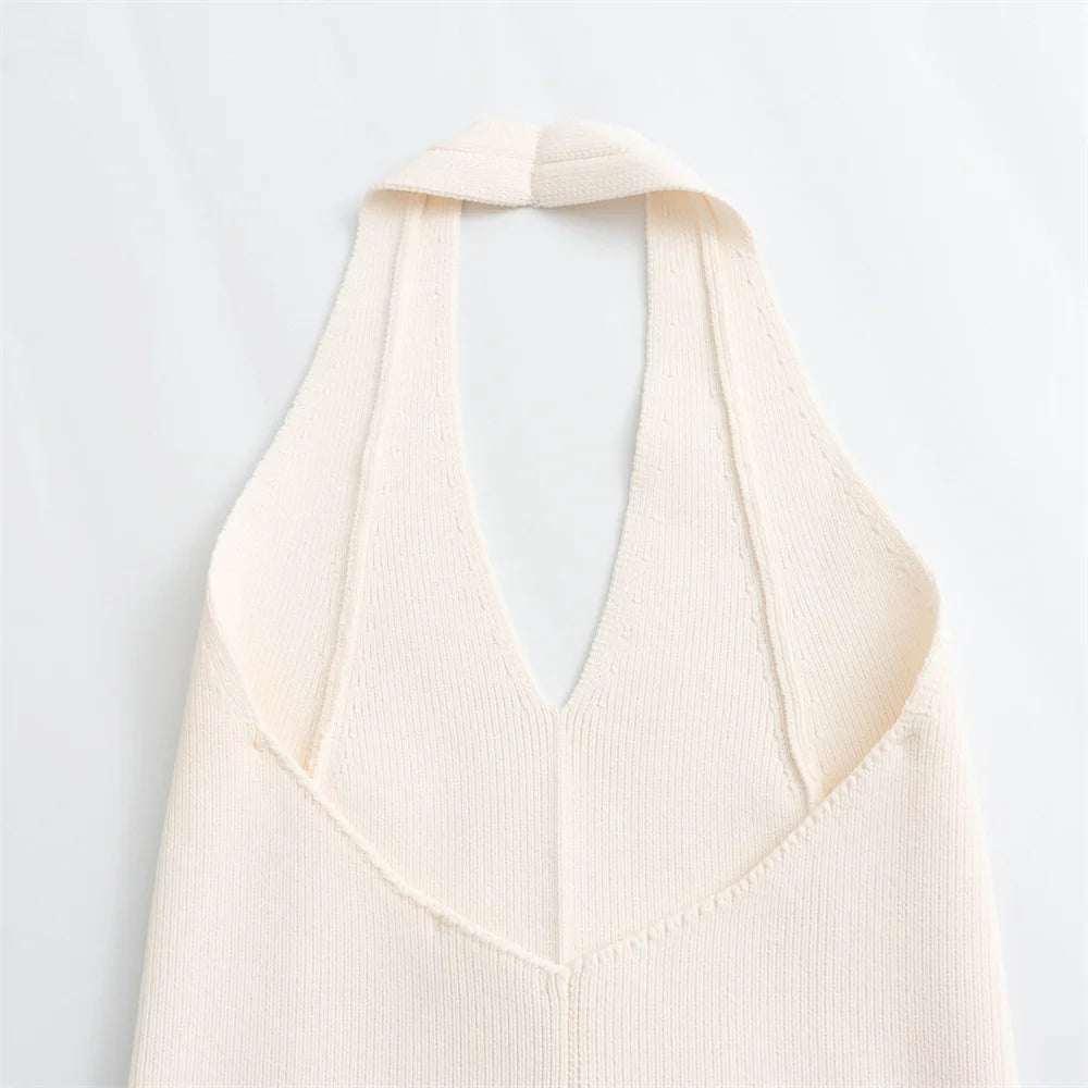 Women French Versatile Hanging Neck Knitted Short Top Backless Vest