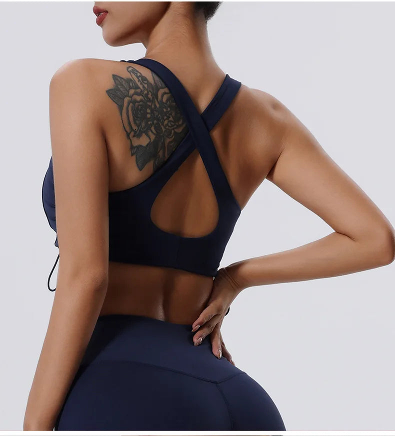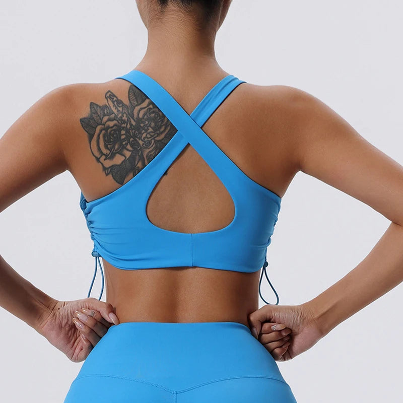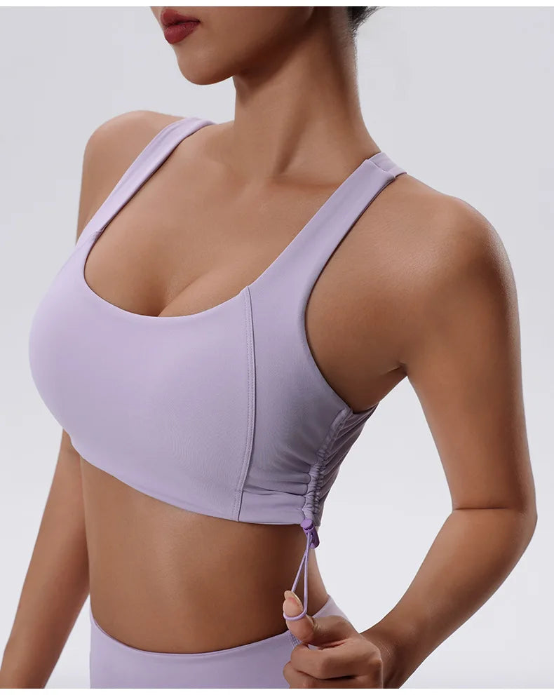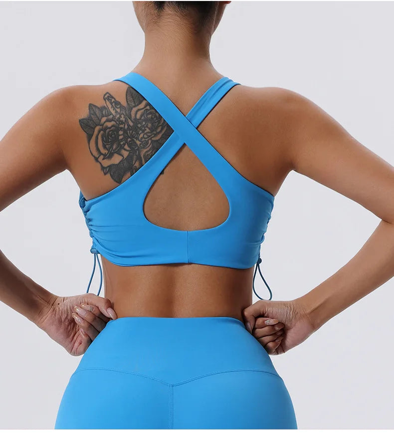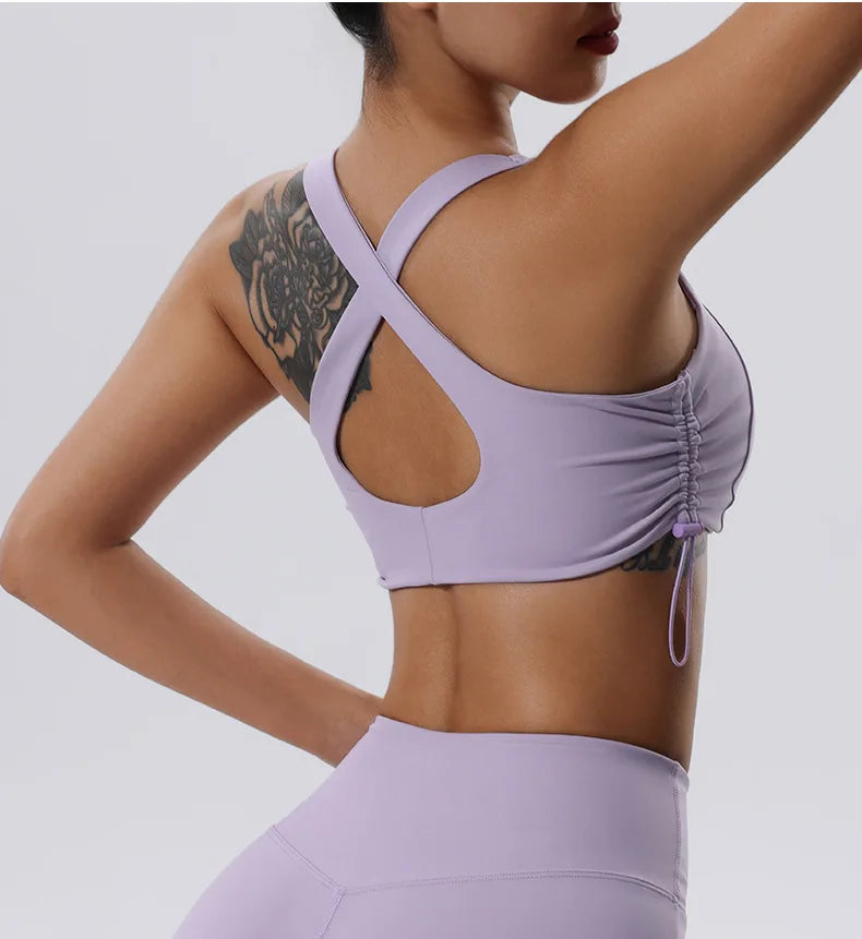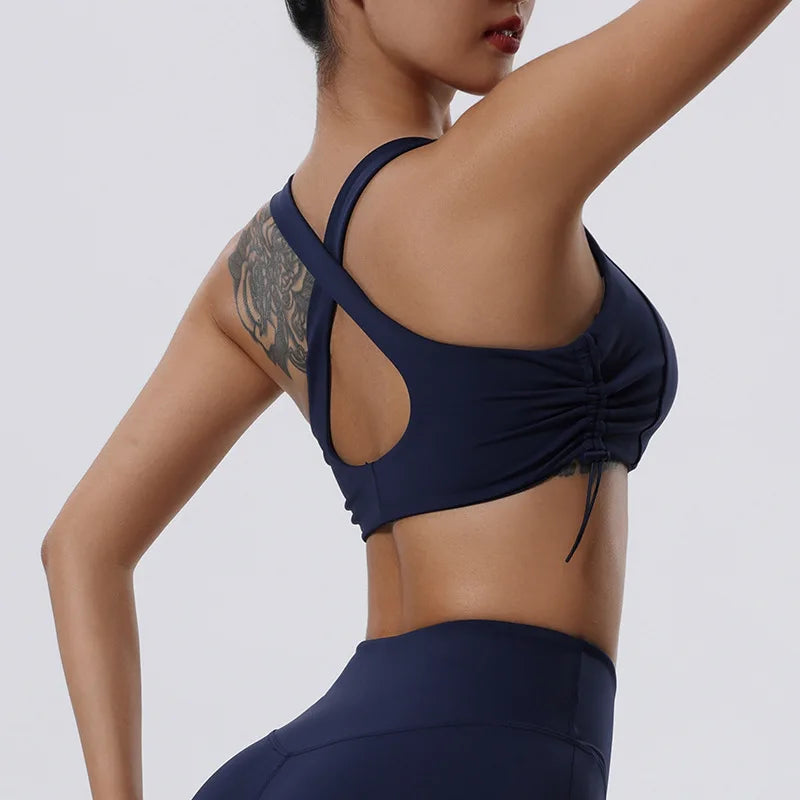 Women's High Impact Fitness Yoga Bra Gathered Push Up Sports Back Gym Crop Top Breathable Workout Vest