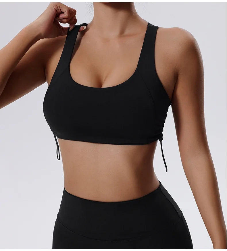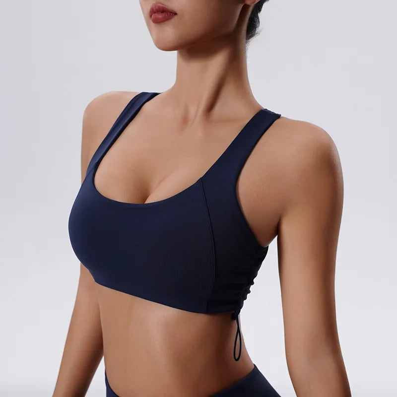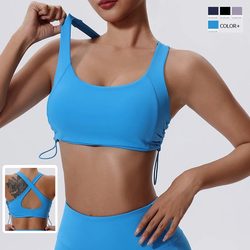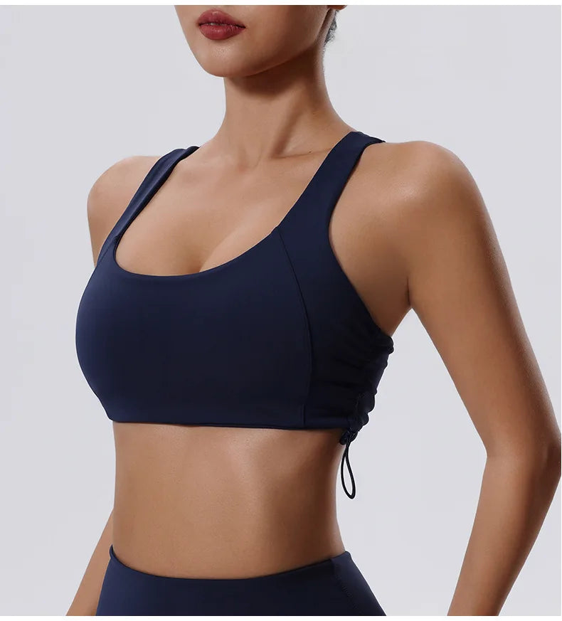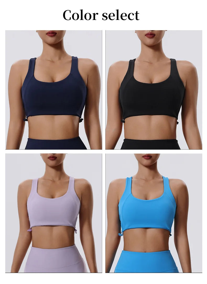 Women's High Impact Fitness Yoga Bra Gathered Push Up Sports Back Gym Crop Top Breathable Workout Vest