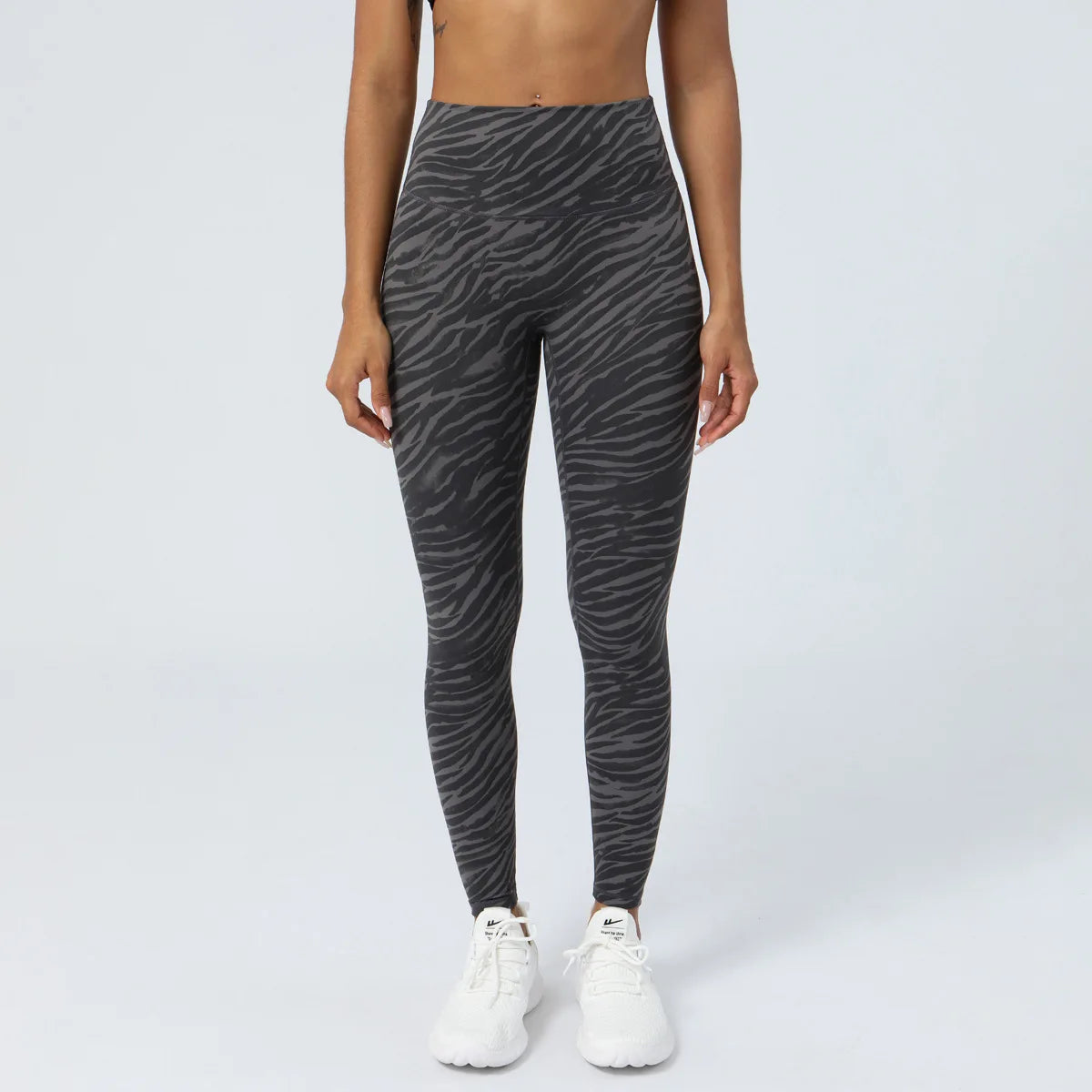 Women's High Waist Yoga Pants Buttery Soft Zebra Stripe Printed Sports Leggings Breathable Workout Running Tights Sportswear