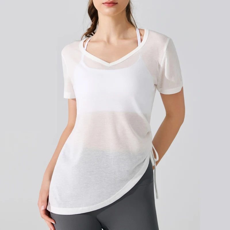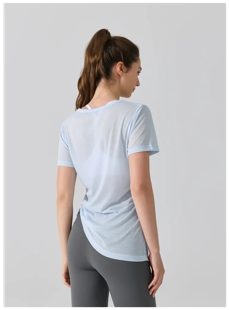 Whether you're flowing through yoga poses, hitting the gym, or going for a morning run, this versatile top delivers the performance you need. The lightweight fabric and comfortable fit make it ideal for any fitness activity or casual wear.