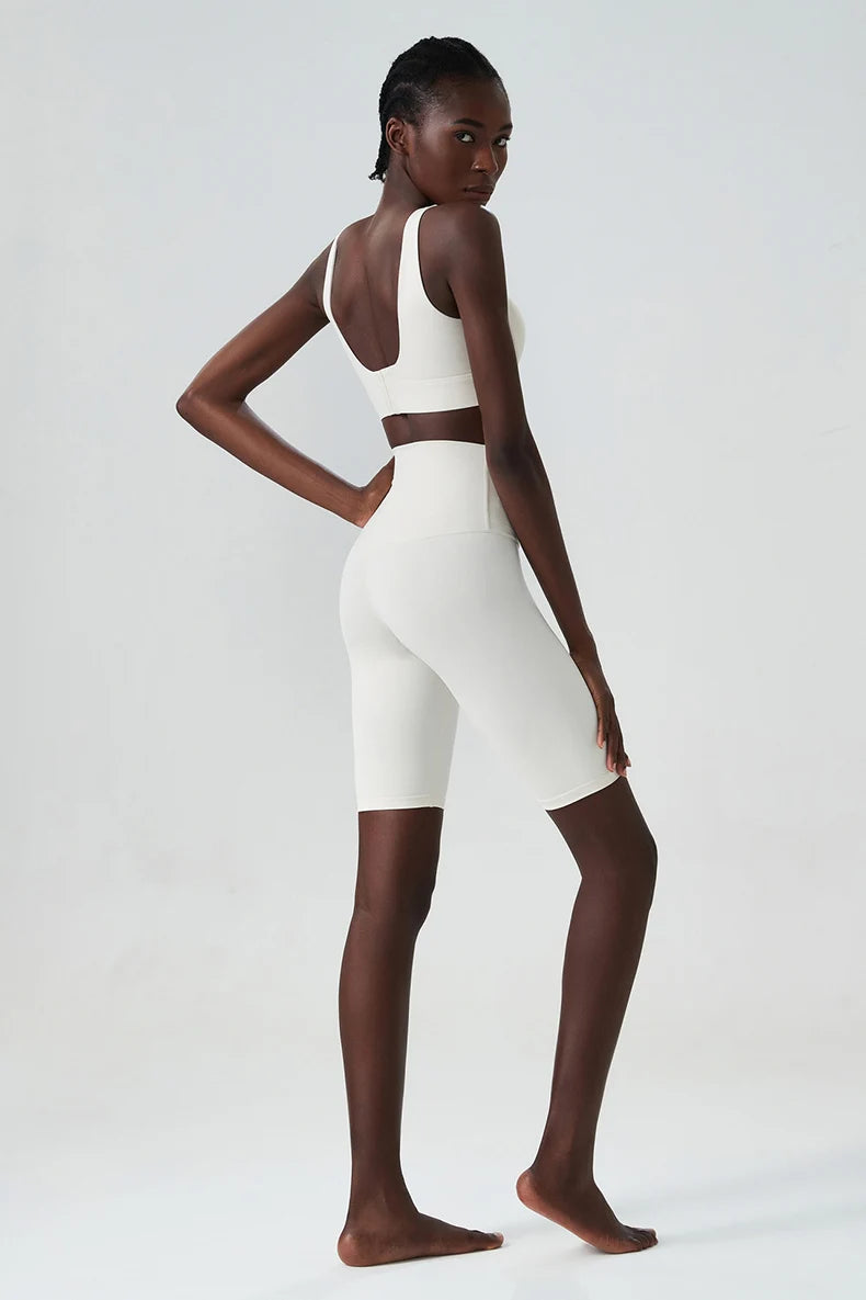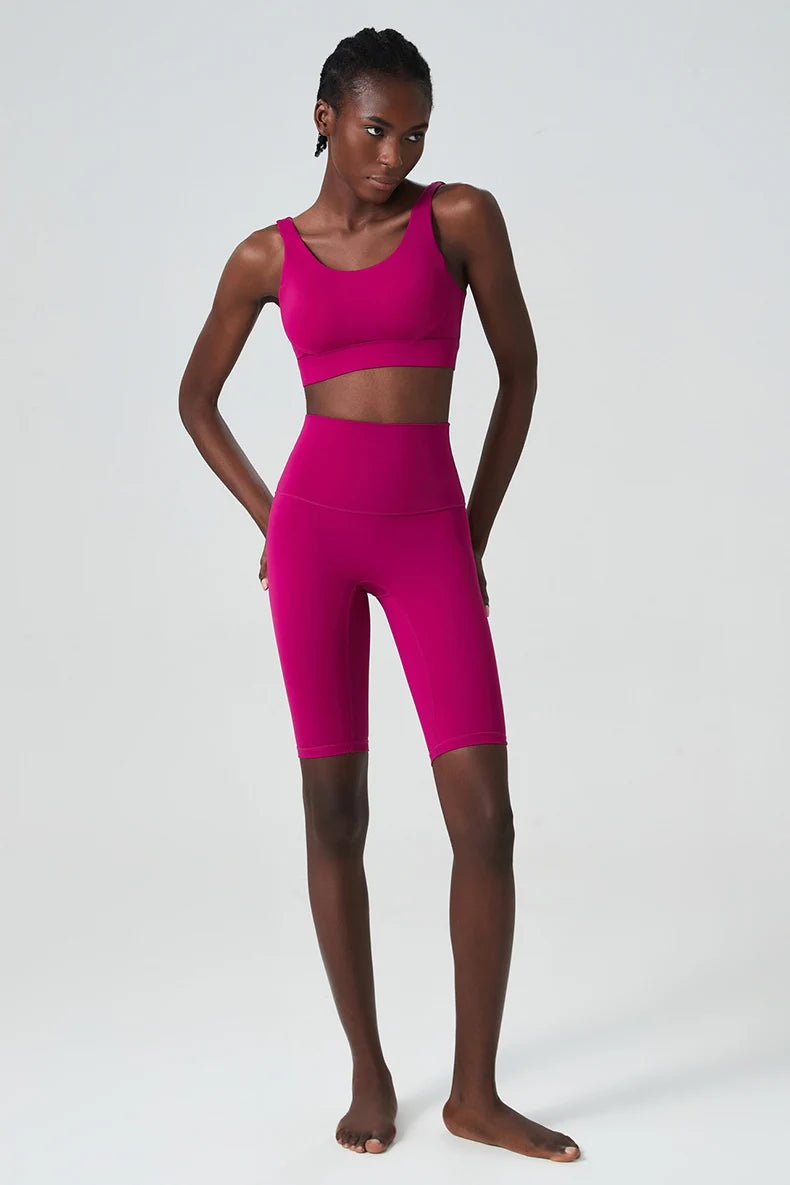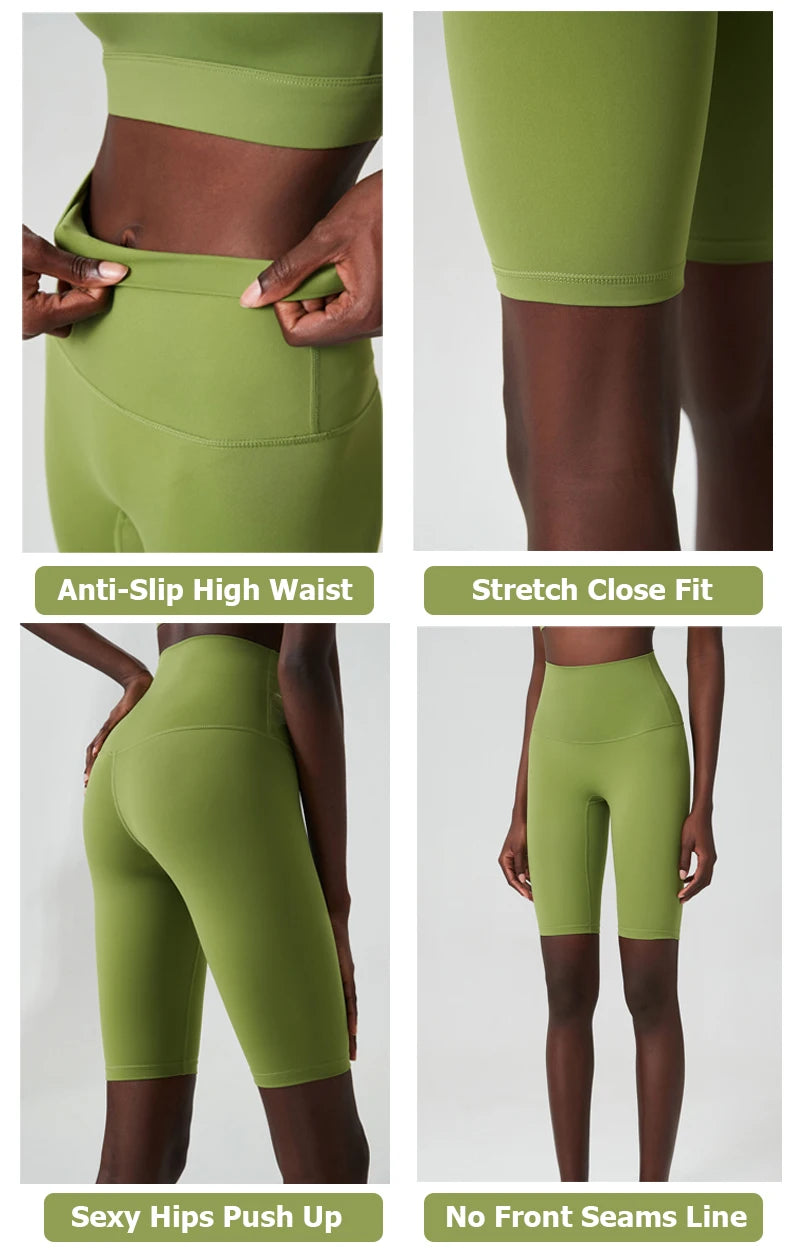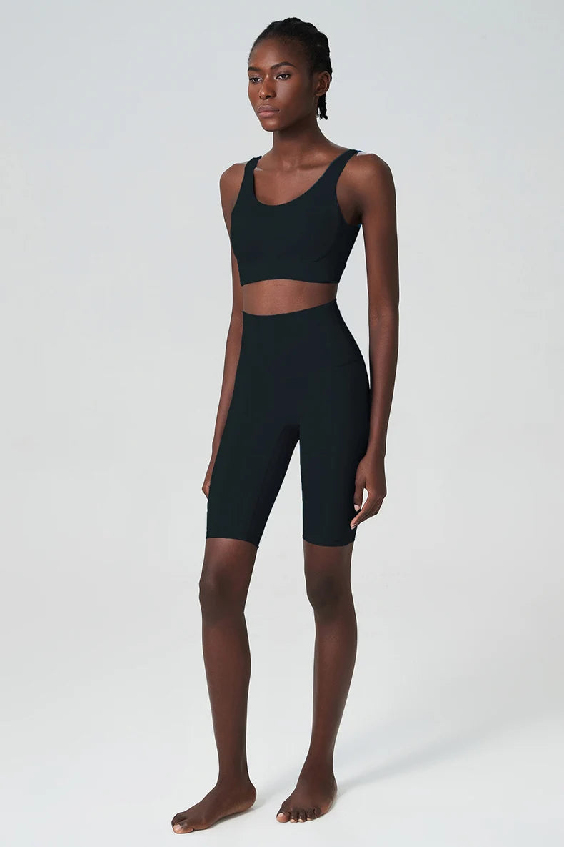 - High-Waist Shorts: Comfortable compression fit with stretch