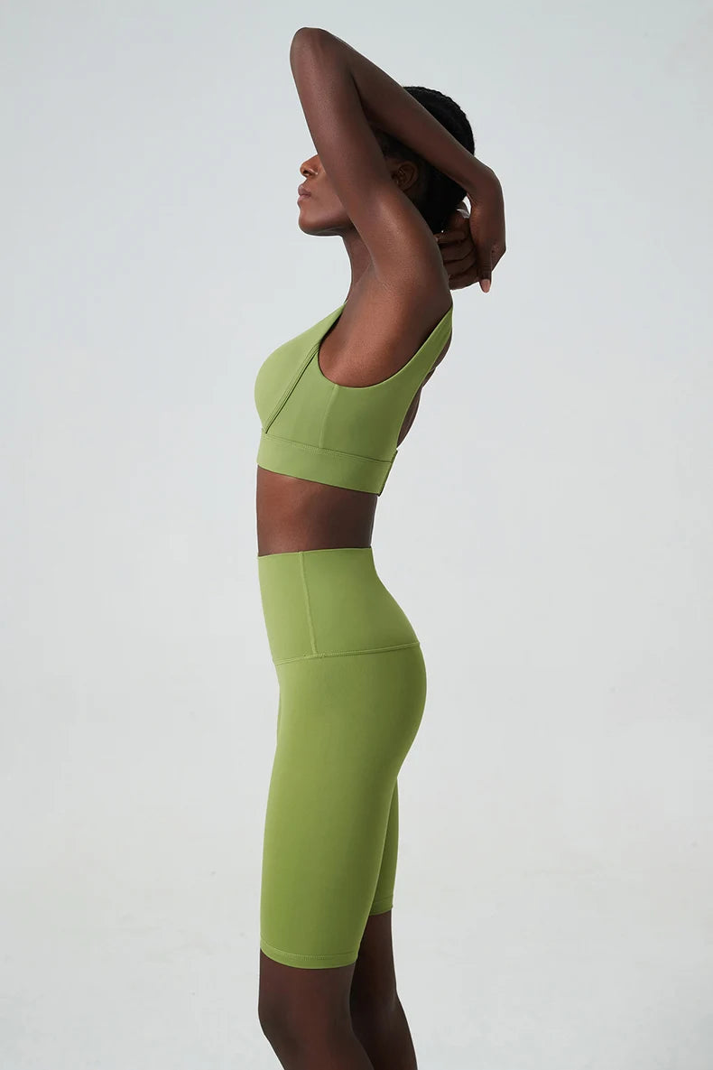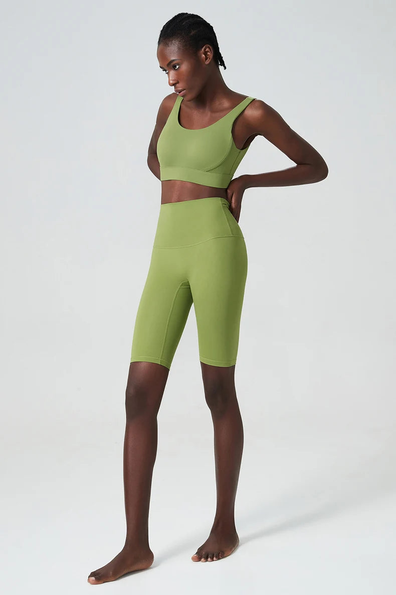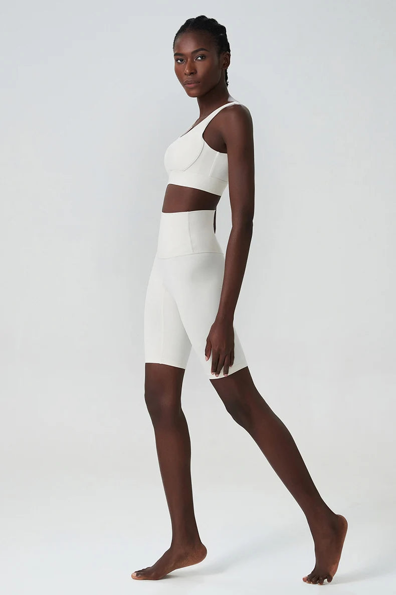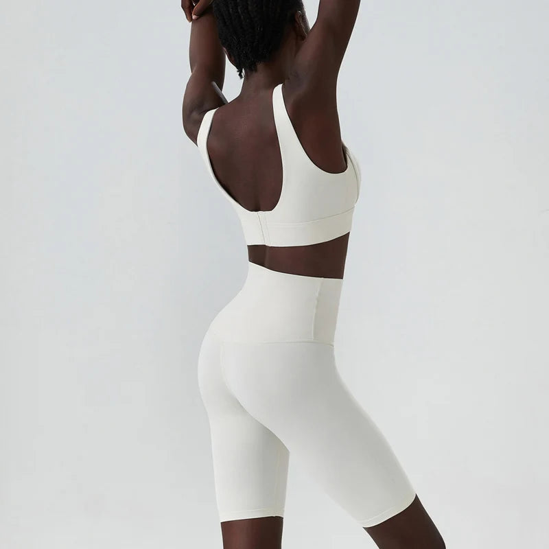 - High-Waist Shorts: Comfortable compression fit with stretch