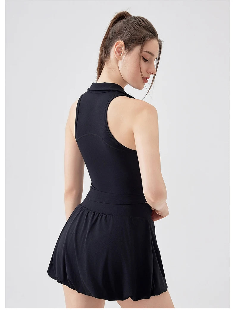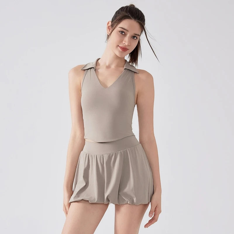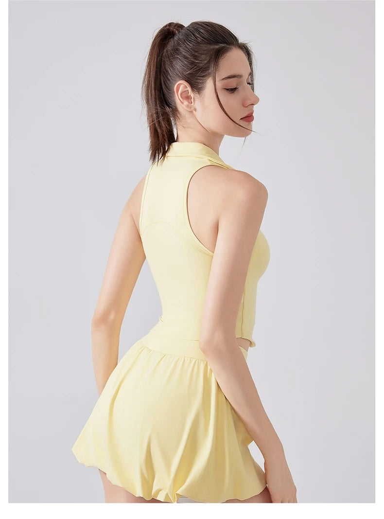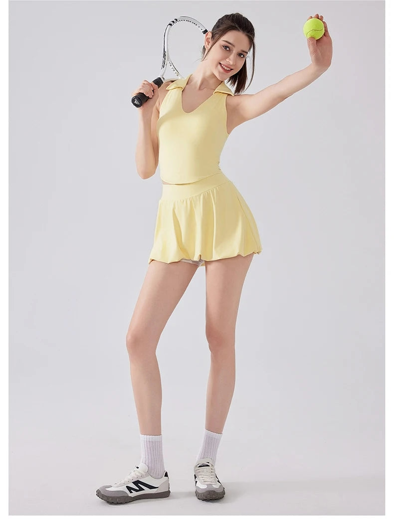 Women's Two Pieces Fitness Yoga Set - Breathable Tennis Skirt and Top Combo