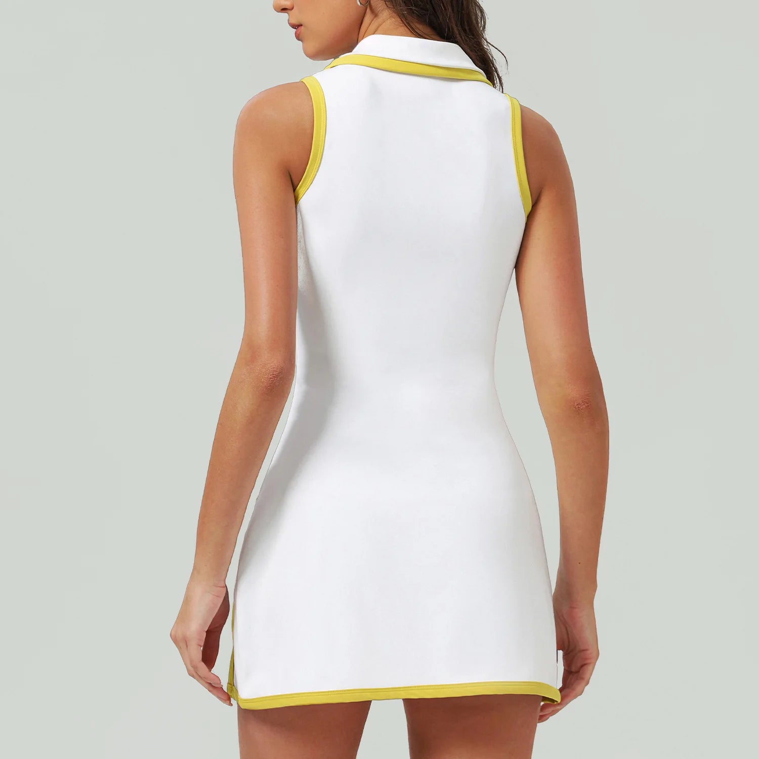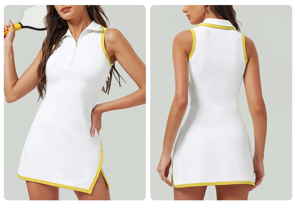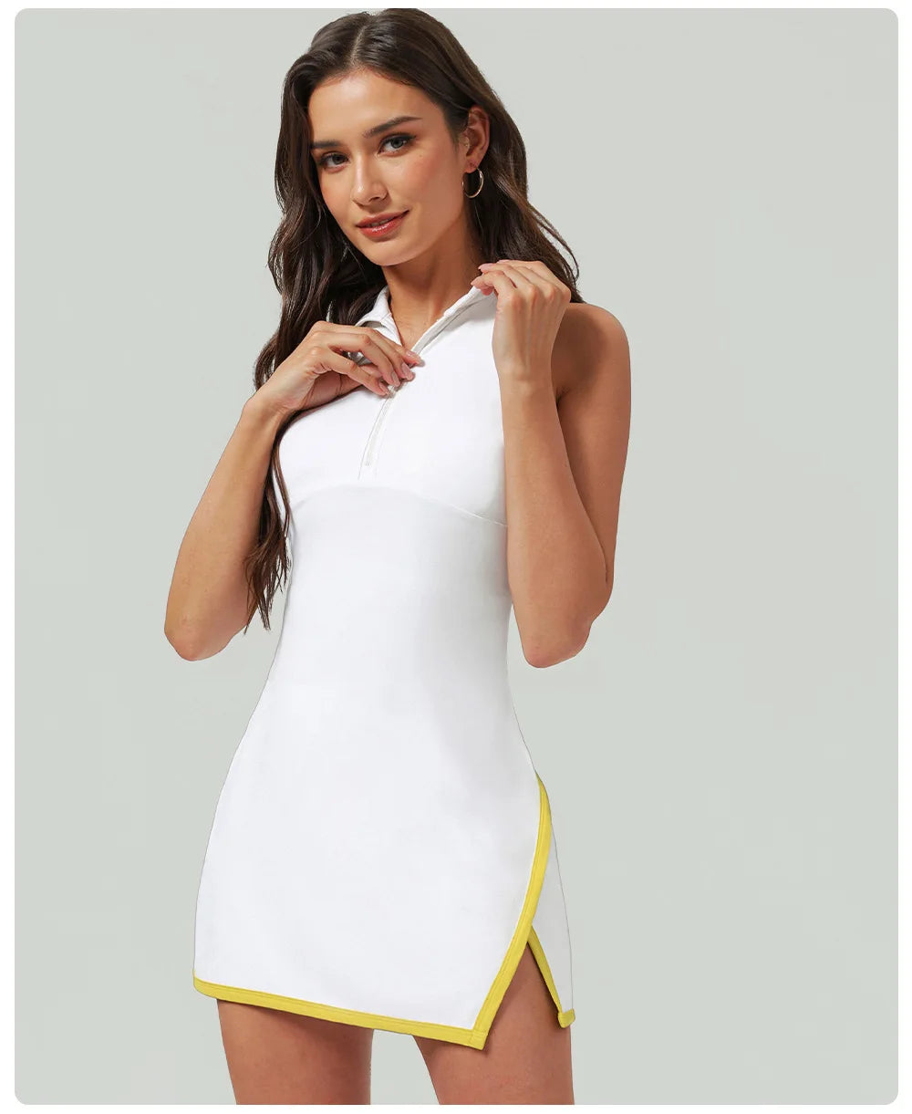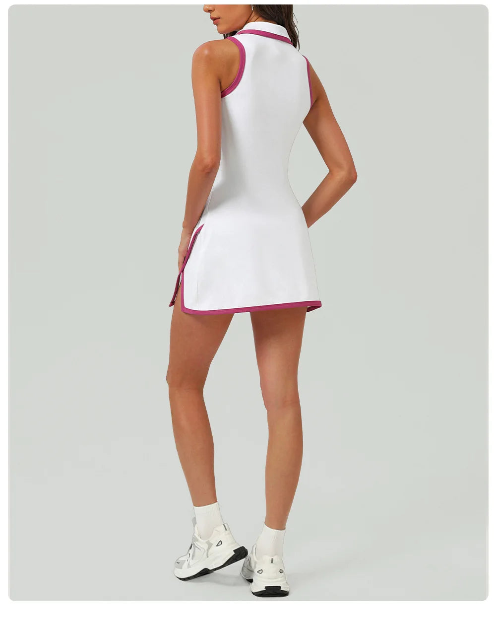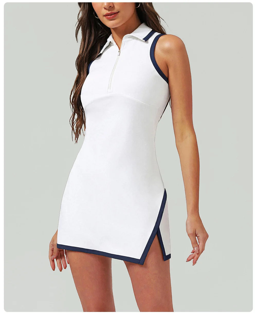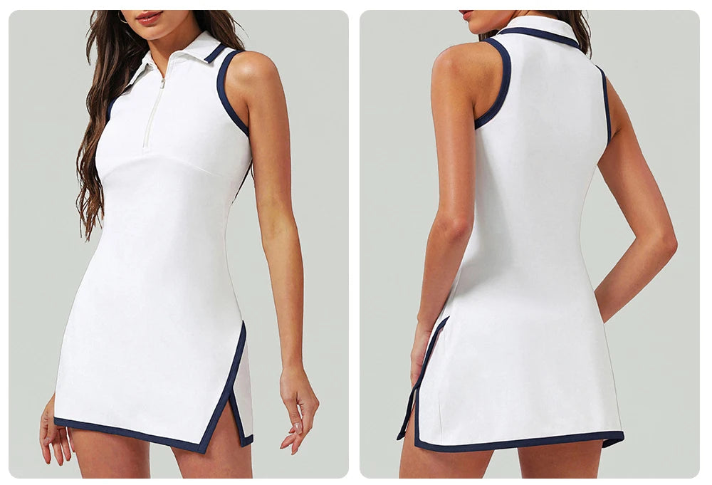 Step onto the court with confidence in this elegant half-zip tennis dress featuring a classic lapel collar. Combining timeless polo styling with modern athletic performance for the discerning active woman.