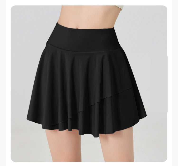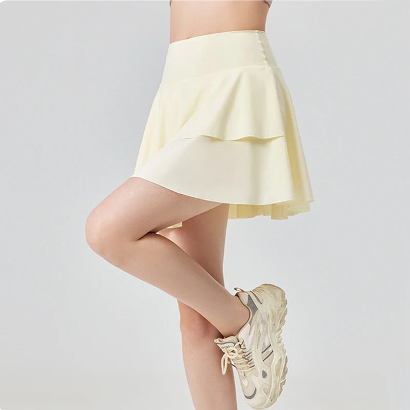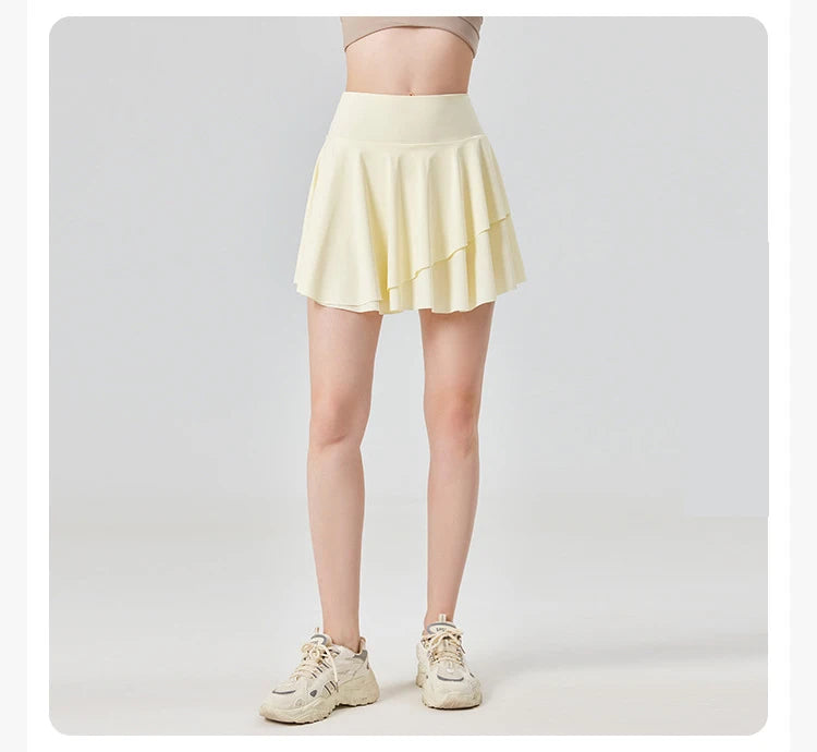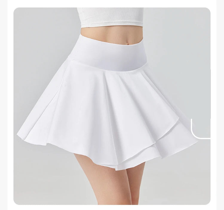 Experience ultimate comfort and performance with our high-waist tennis skirt featuring integrated compression shorts. Perfect for tennis, running, yoga, and all your active pursuits.