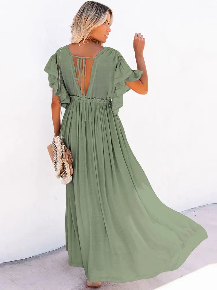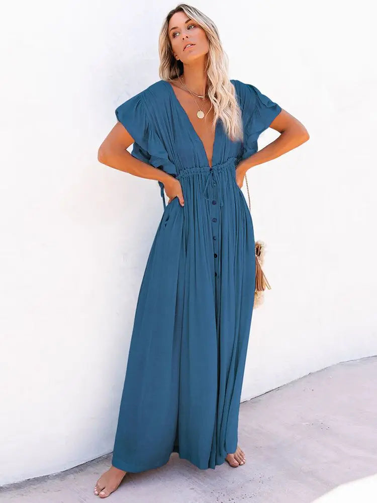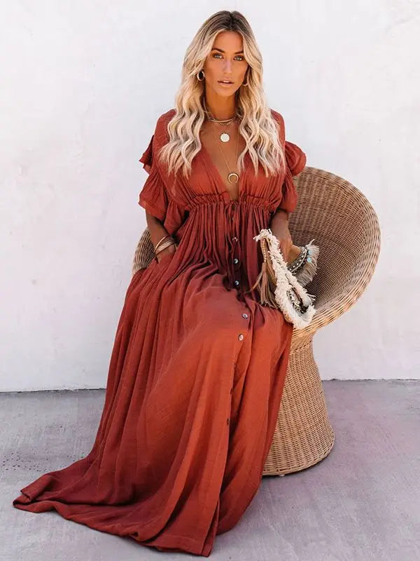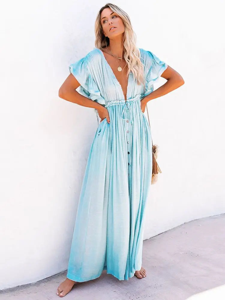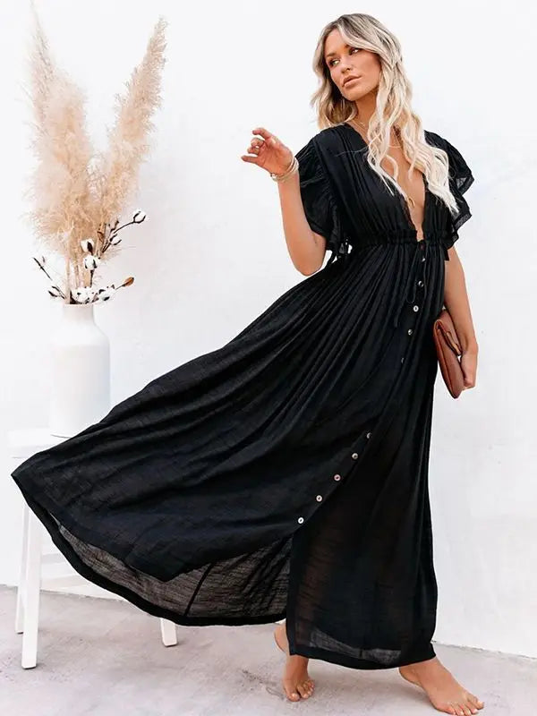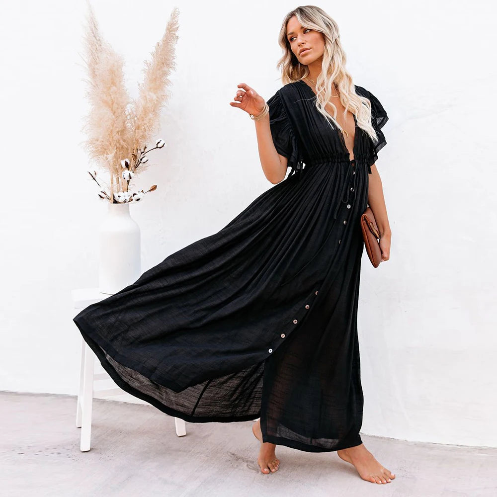 Women's Swimsuit Cover Ups Mandarin Sleeve Kaftan Beach Tunic Beach Dress