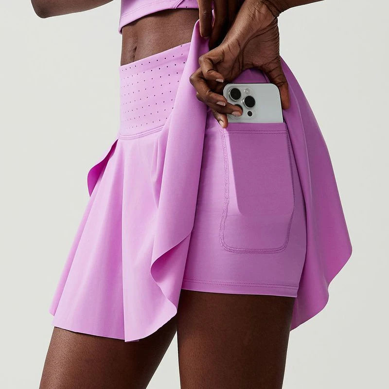 Embrace versatility and style with this soft, stretchy two-piece tennis skirt set, designed to take you from the court to the track with effortless grace.