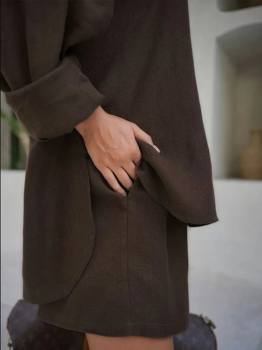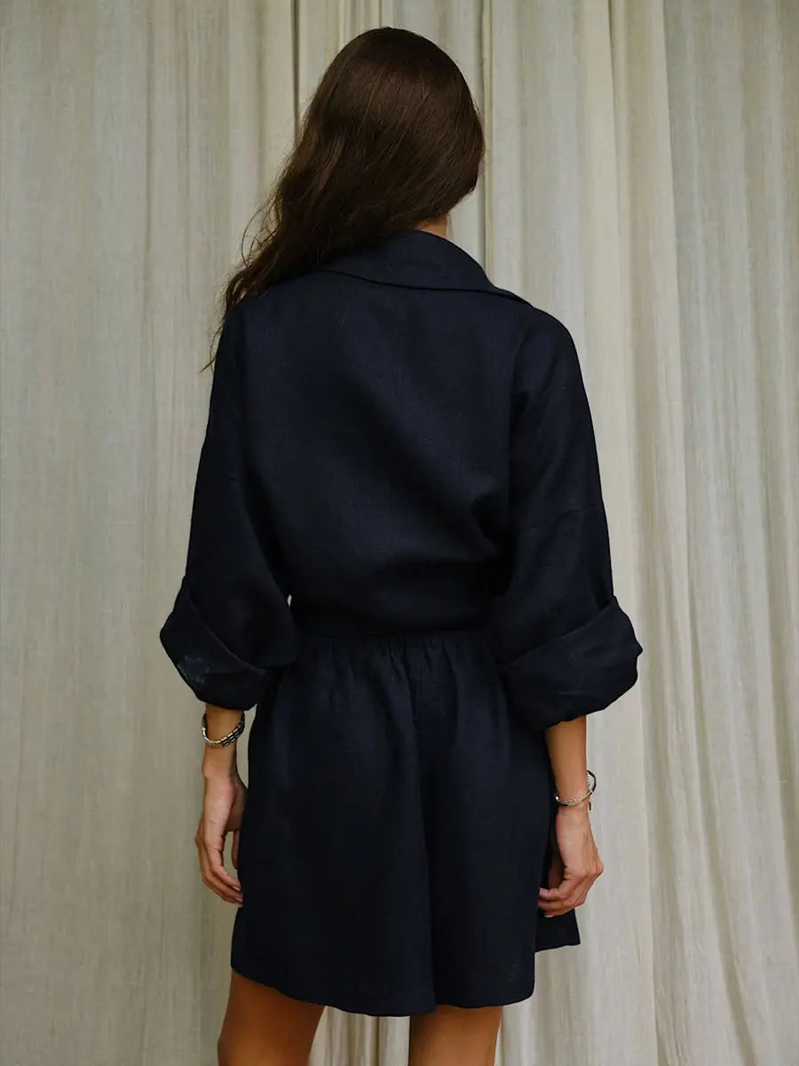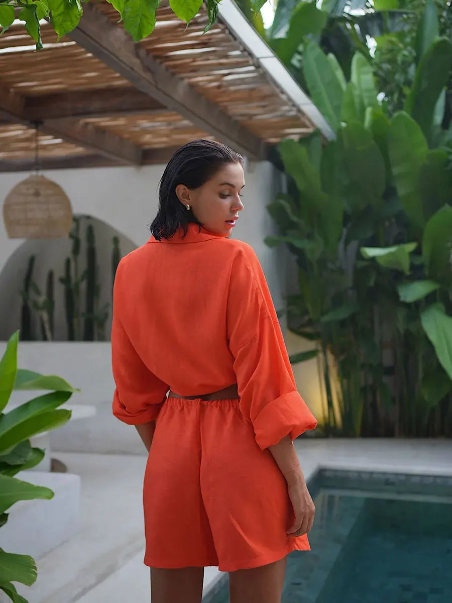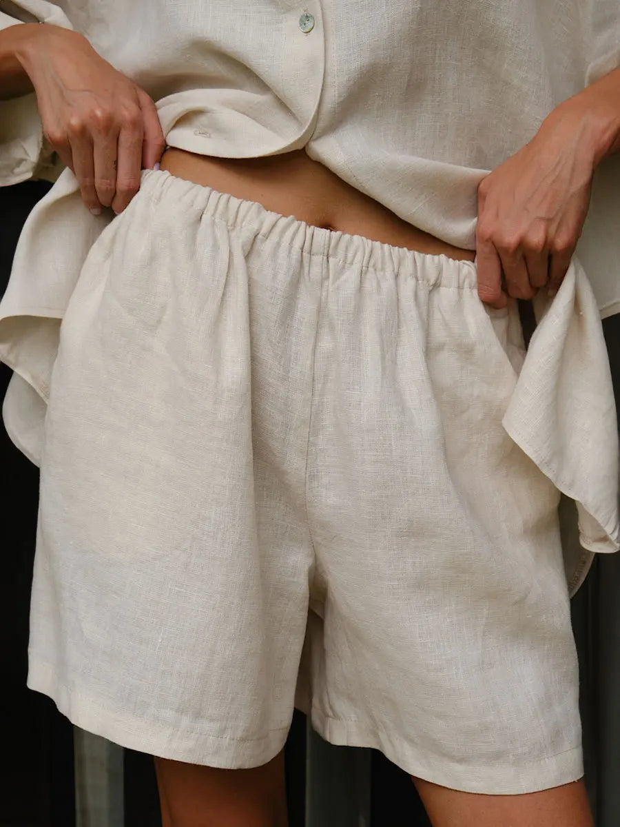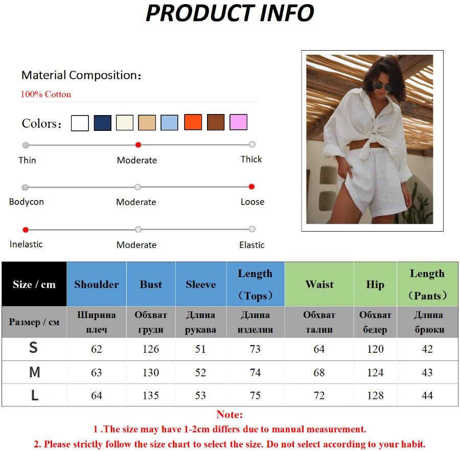 Women's 100% Cotton 2 Pieces Cosy Lapel Lantern Sleeve Shirt Summer Outfit Elastic Waist Shorts Set