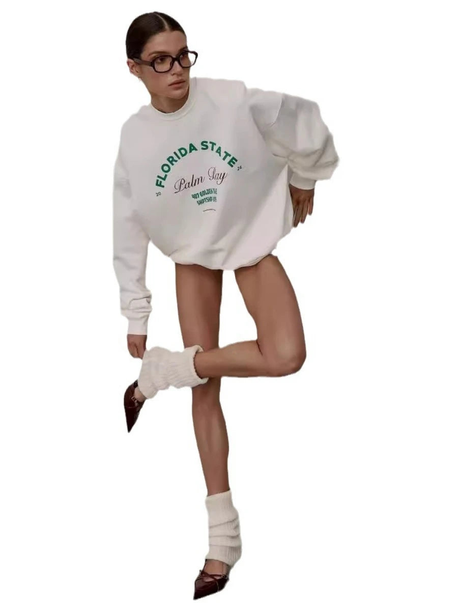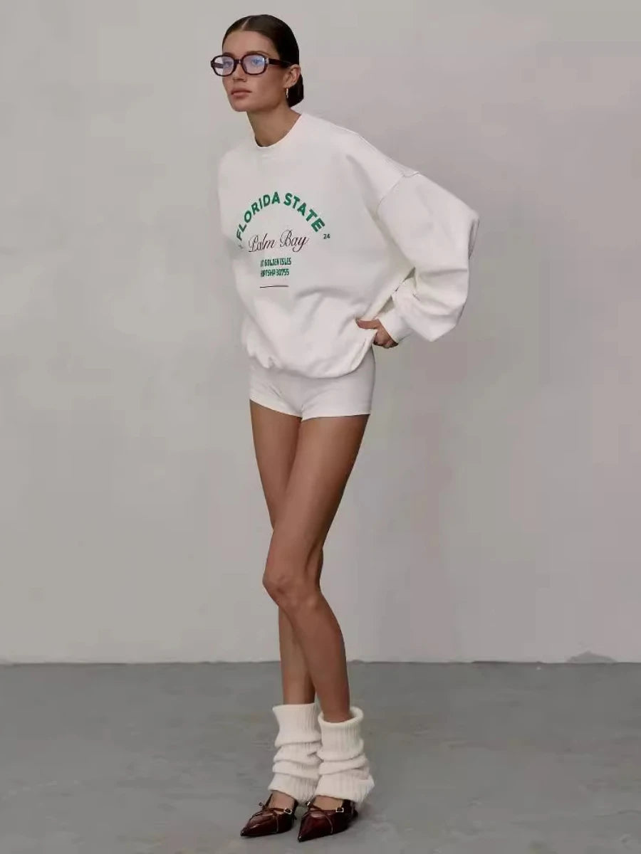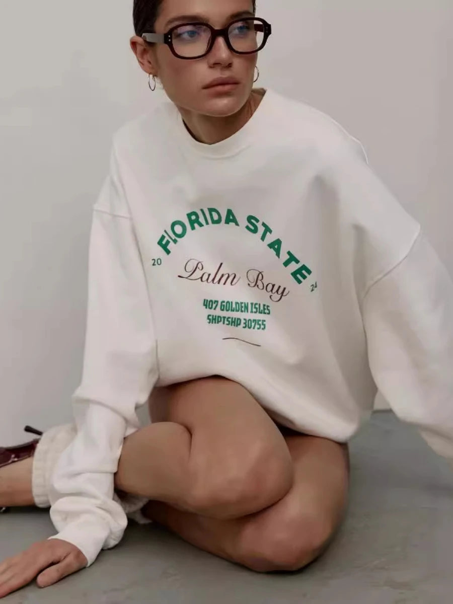 Women's 100% Cotton Basic Letter Printed Casual Versatile Loose Oversized Long Sleeve Sweatshirt