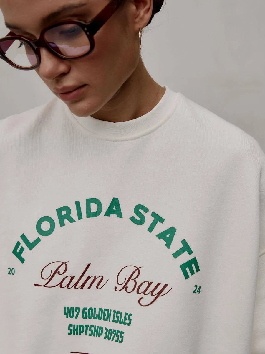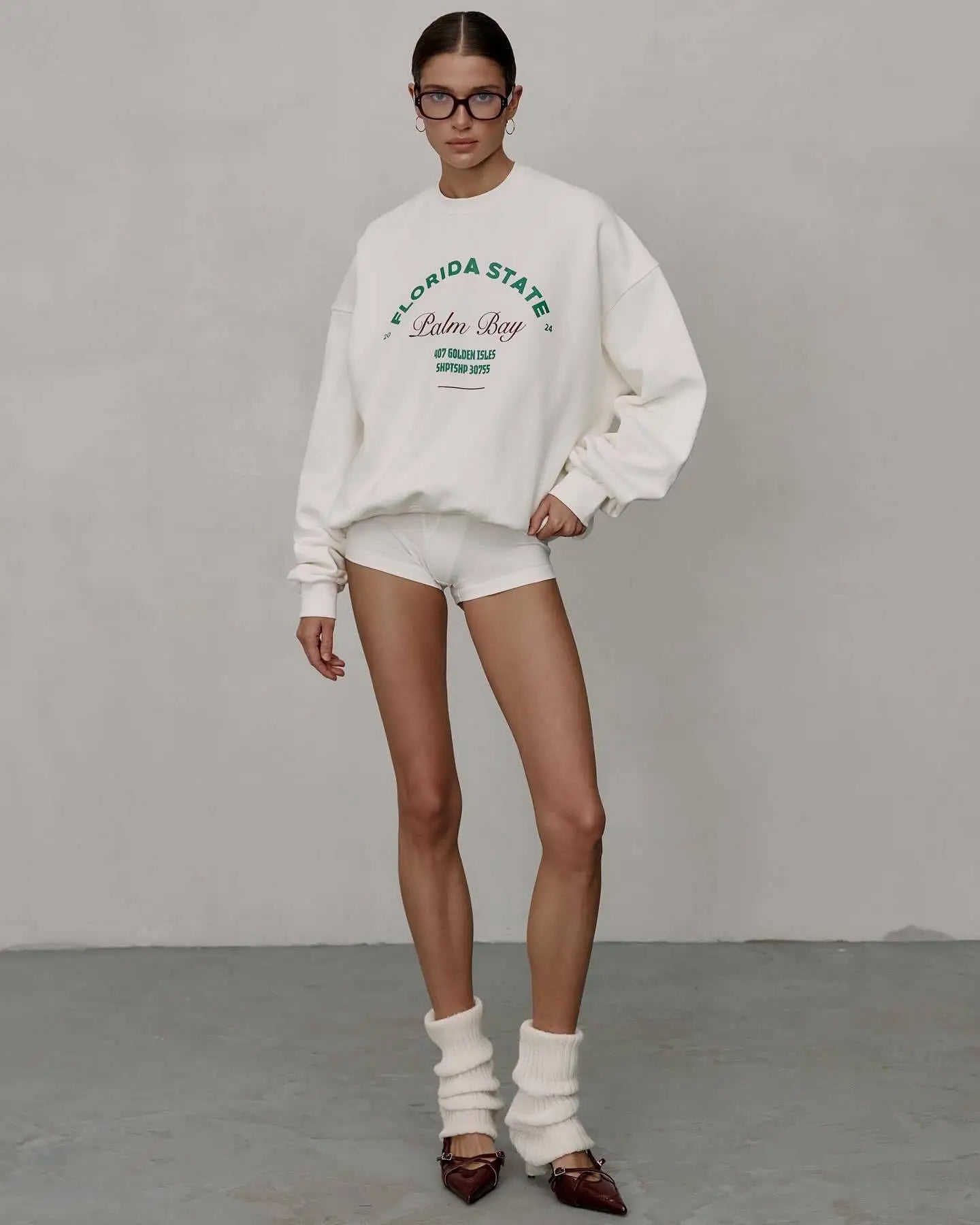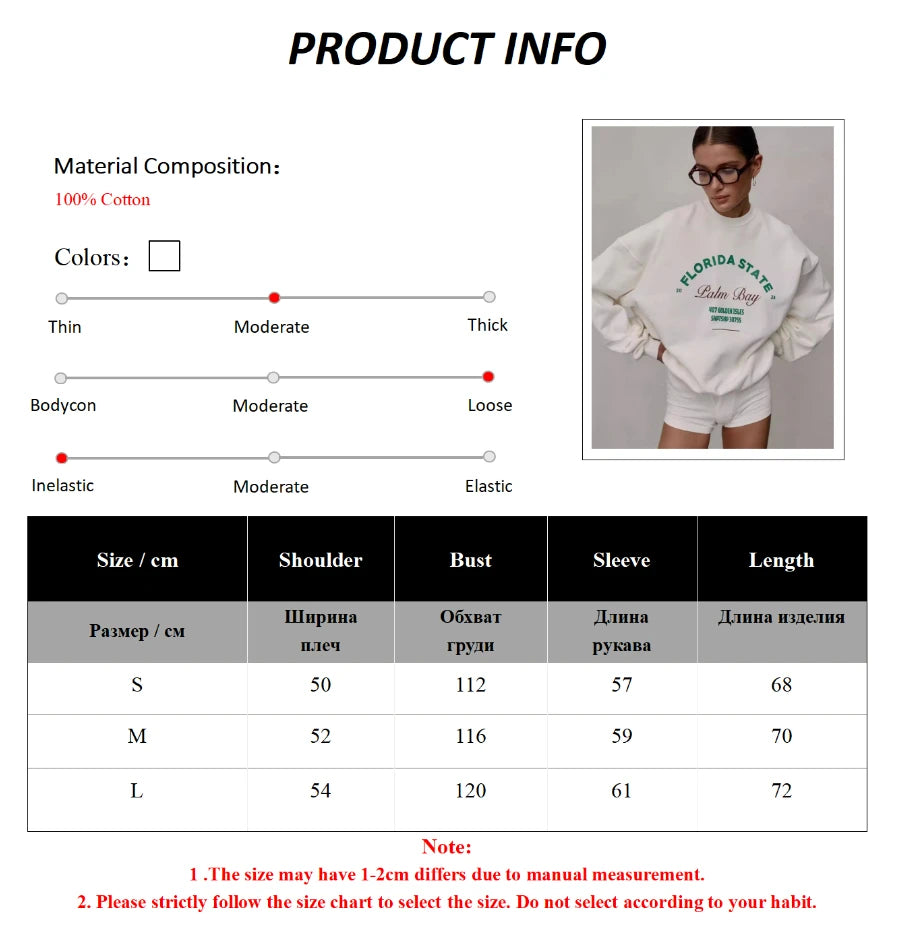 Women's 100% Cotton Basic Letter Printed Casual Versatile Loose Oversized Long Sleeve Sweatshirt