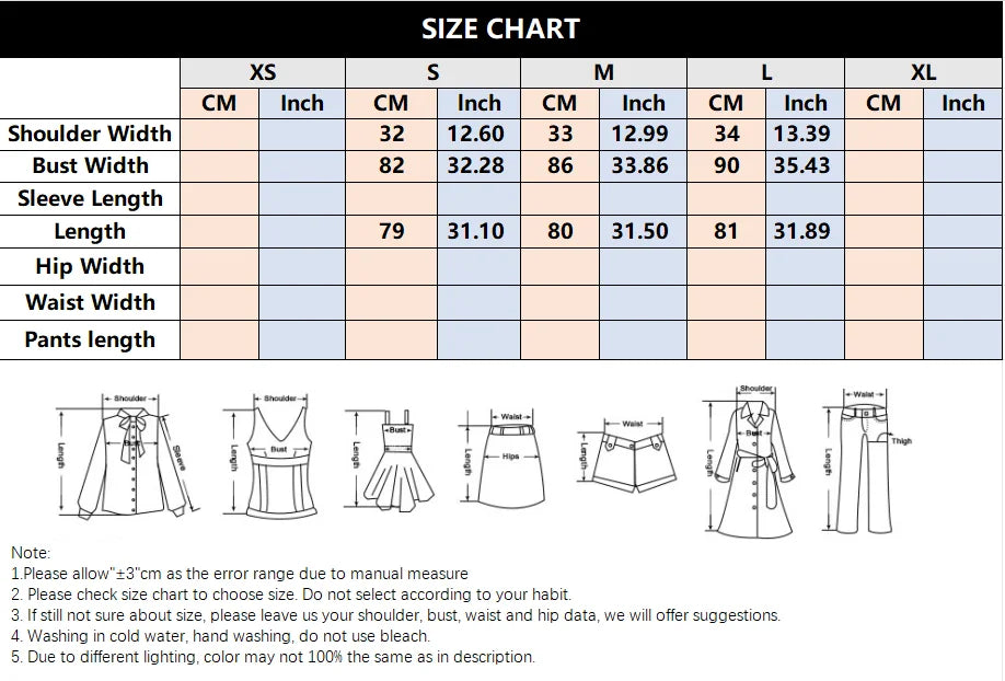 | Size | UK | US | Euro | Bust (cm) | Waist (cm) | Length (cm) |