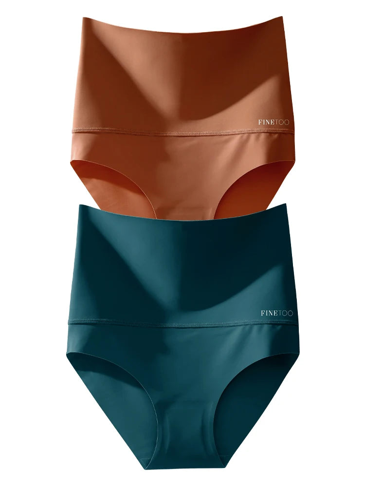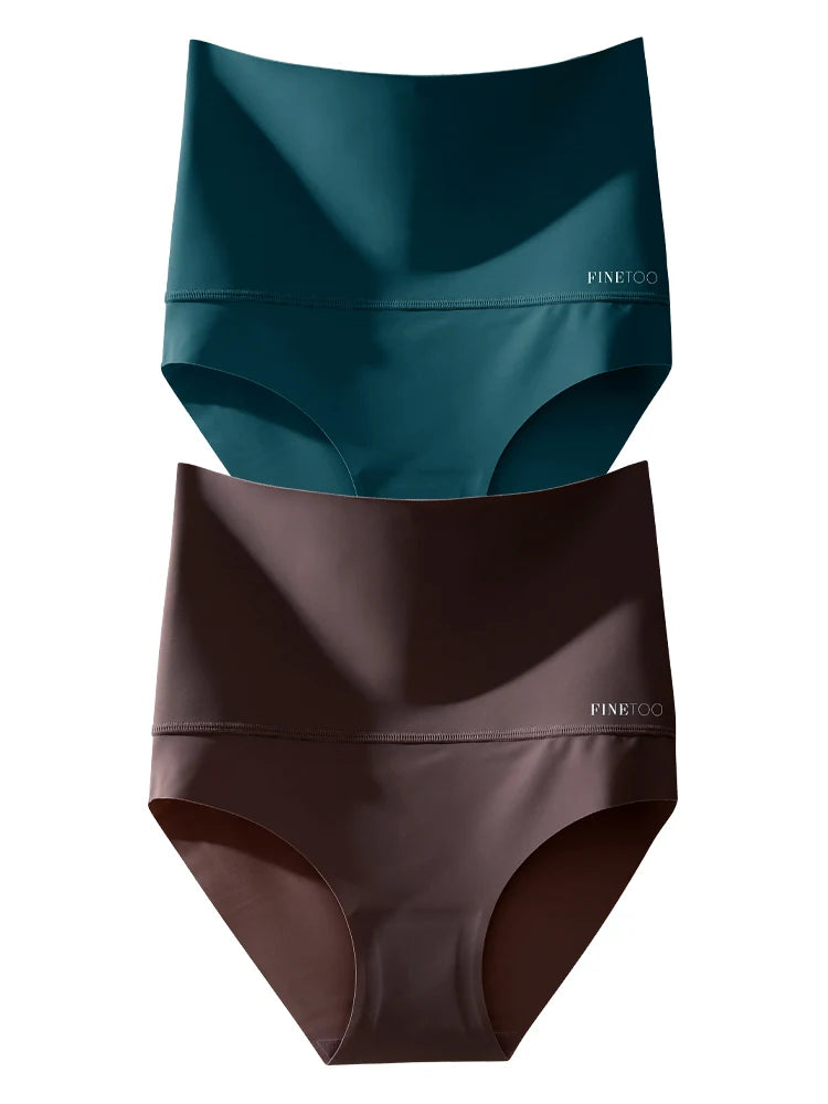 Women's 2Pcs High Waist Underwear Seamless Tummy Control Comfortable Solid Briefs Sports Soft Bodysuit Shapewear