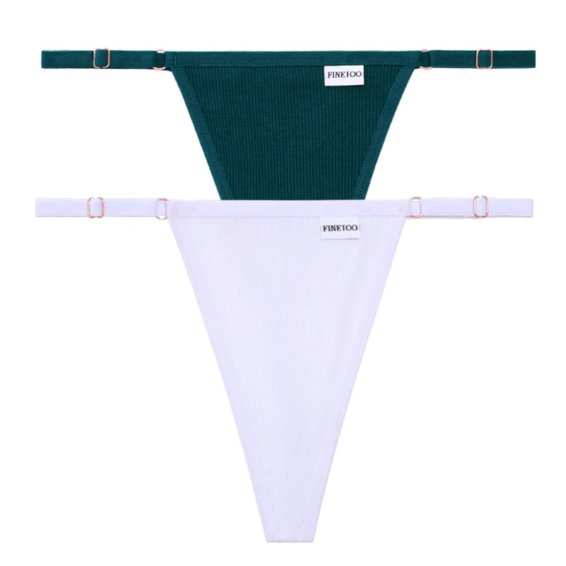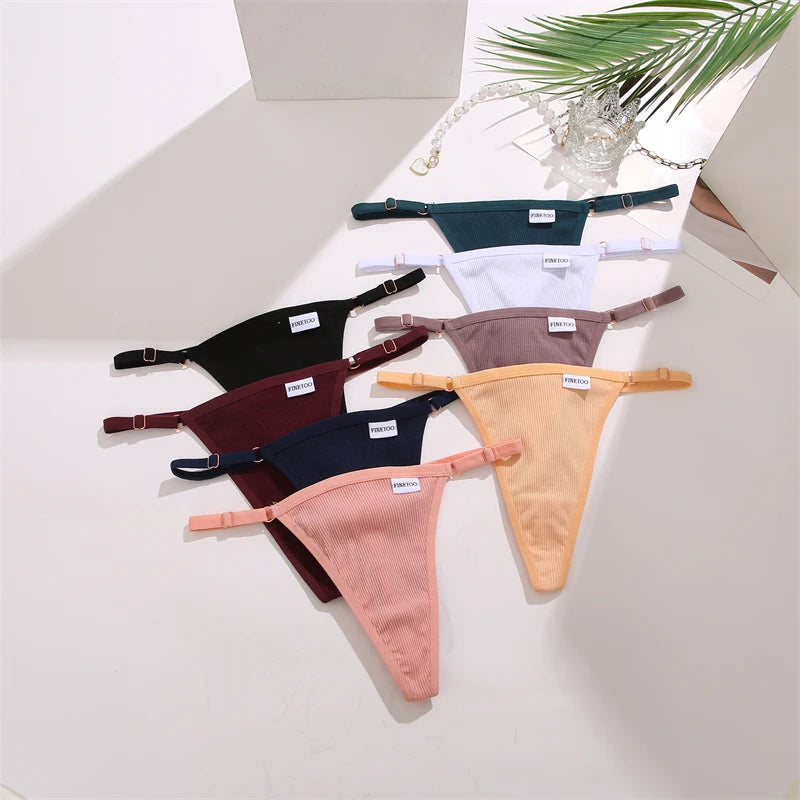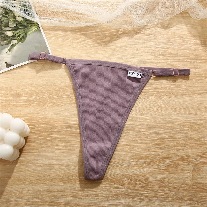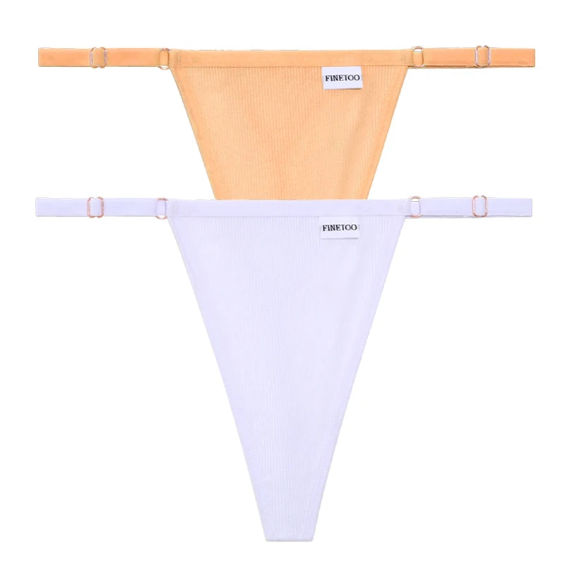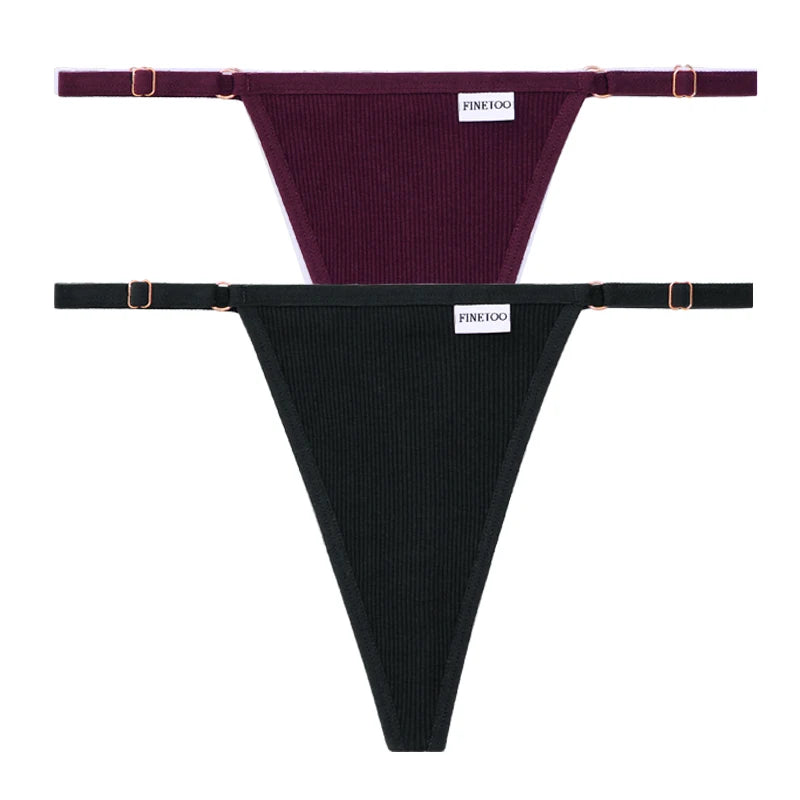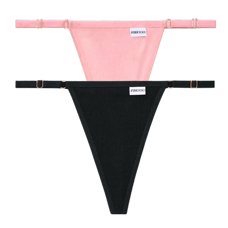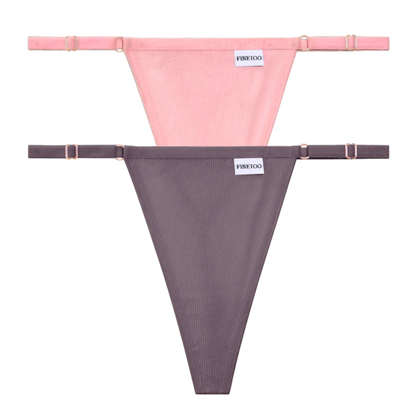 Women's 2PCS/SET Cotton Low Waist Panties Adjustable Waist Thongs Seamless G-String Underwear Lingerie