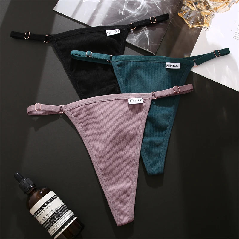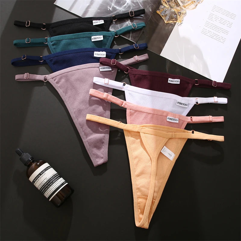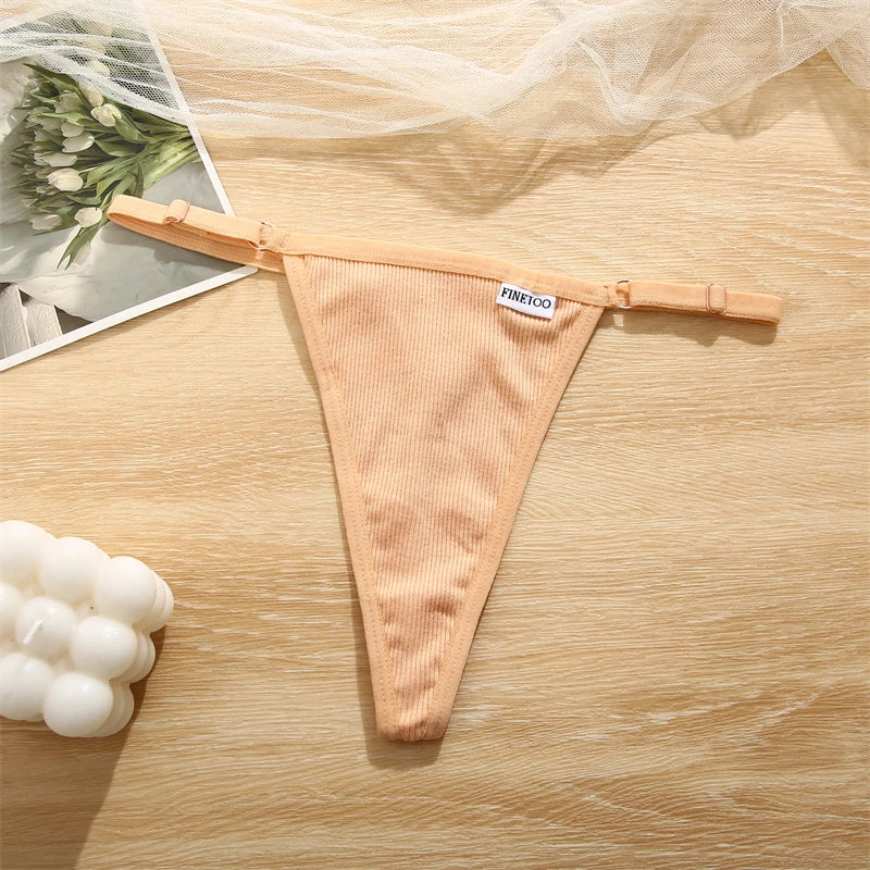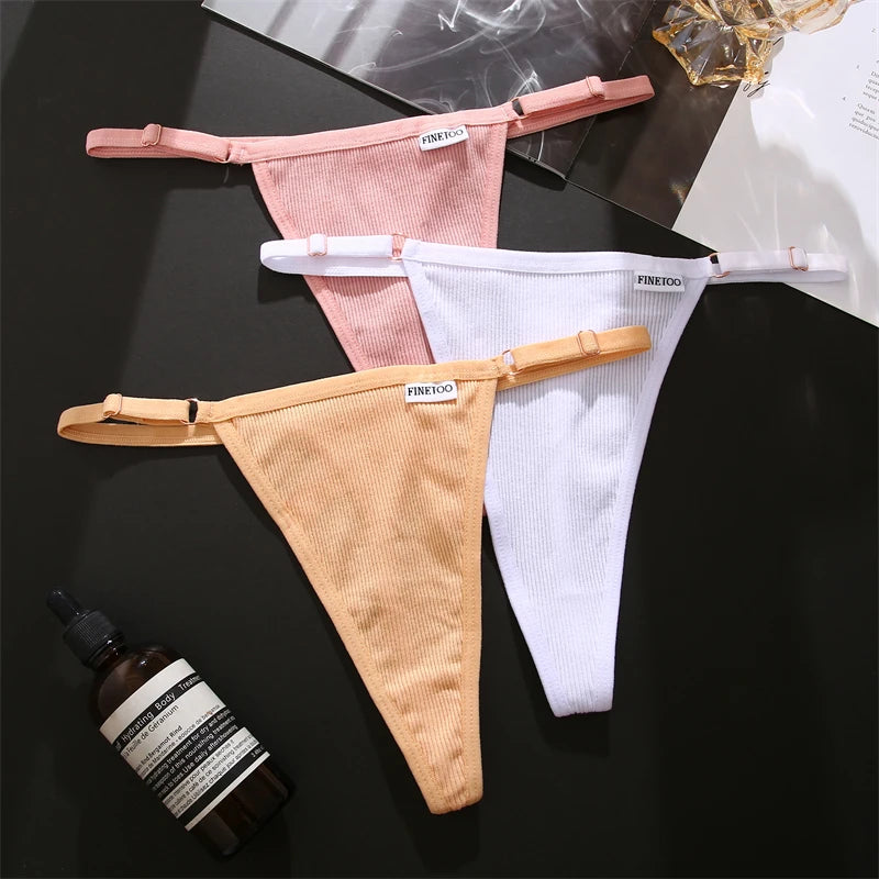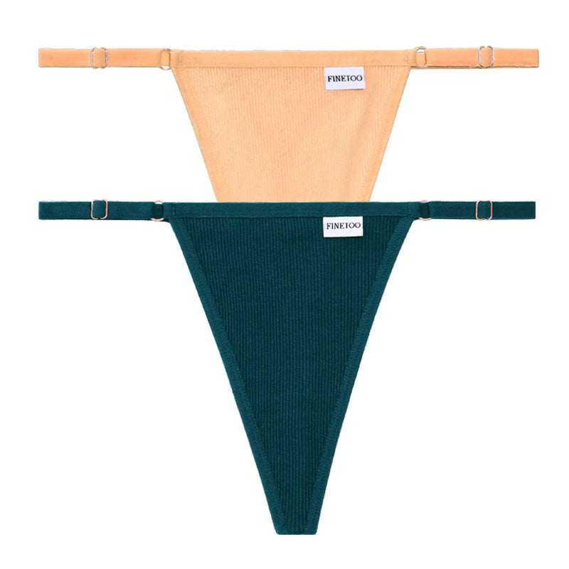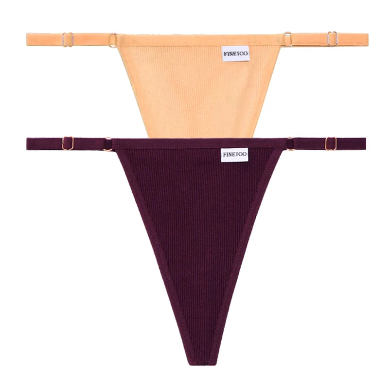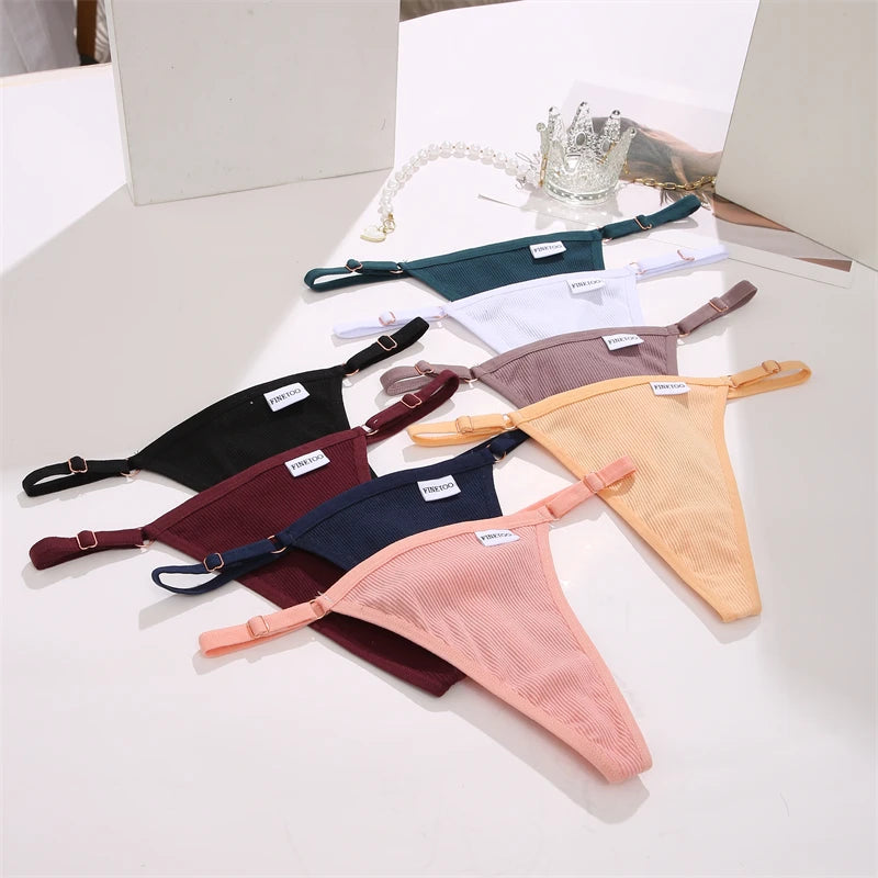Women's 2PCS/SET Cotton Low Waist Panties Adjustable Waist Thongs Seamless G-String Underwear Lingerie