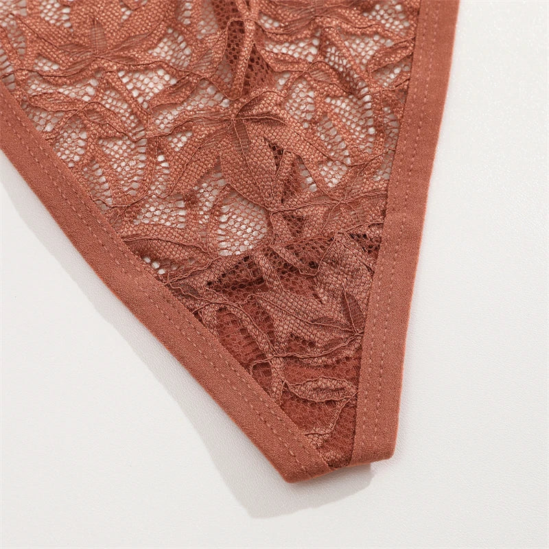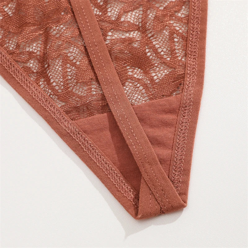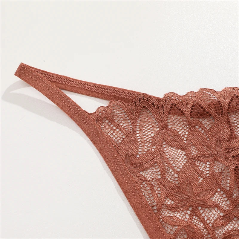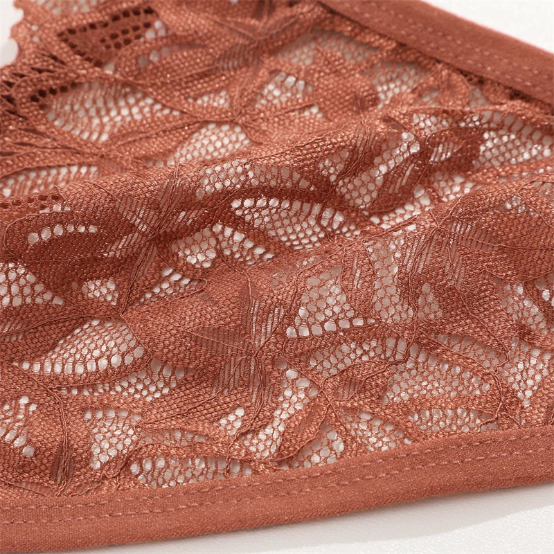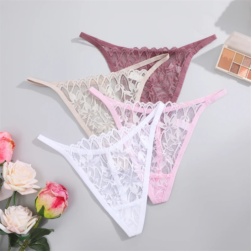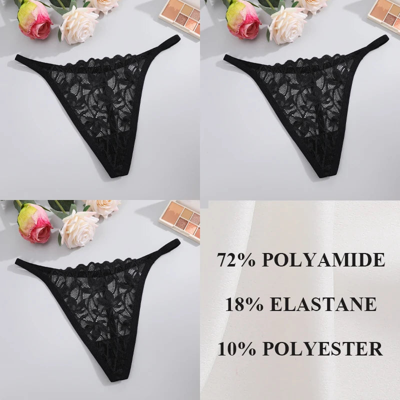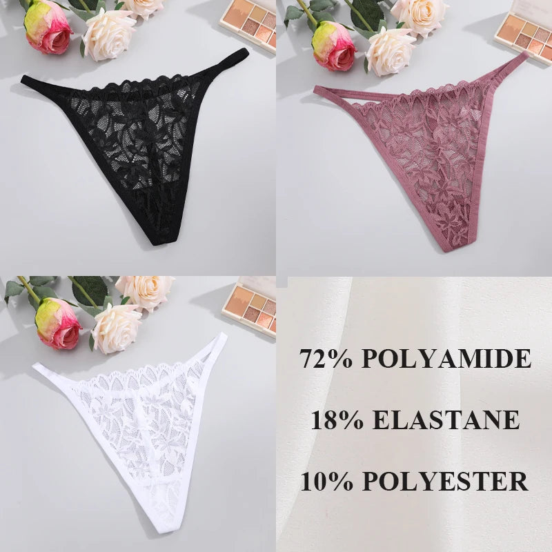 Women's 3Pcs/Set Lace Floral Thongs Hollow Out Underwear Low-Waist Perspective G-string Breathable Lingerie