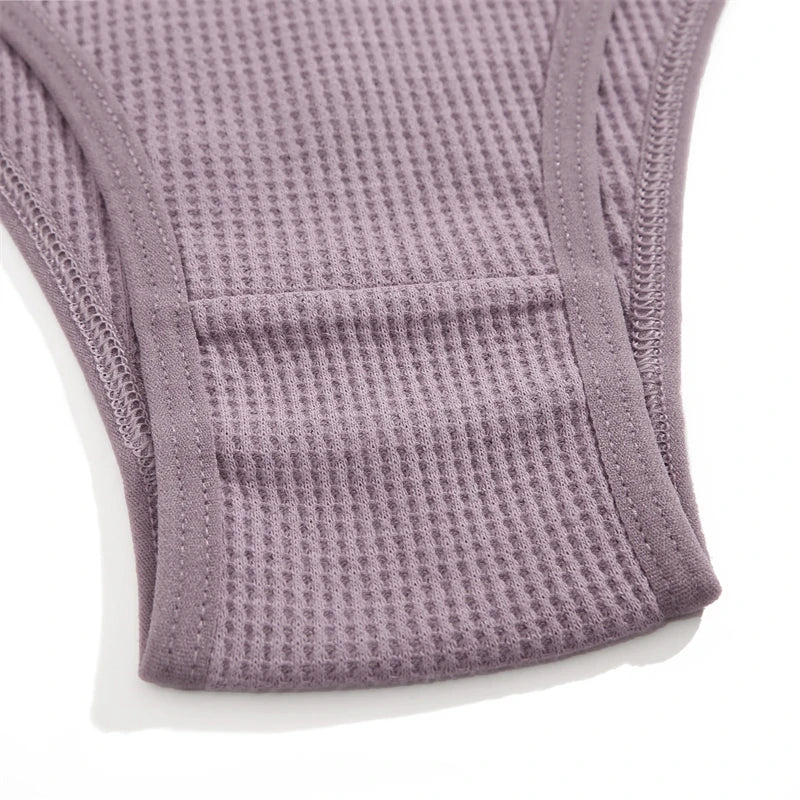 Women's 4Pcs Cotton Breathable Underwear Panties Low-Waist Waffle G-string Stretch Briefs Soft Lingerie