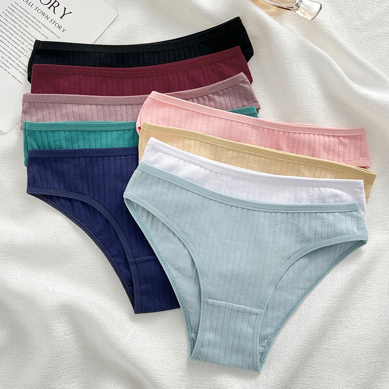 Women's 4Pcs Cotton Striped Breathable Briefs Low Waist Comfortable Stretch Lingerie