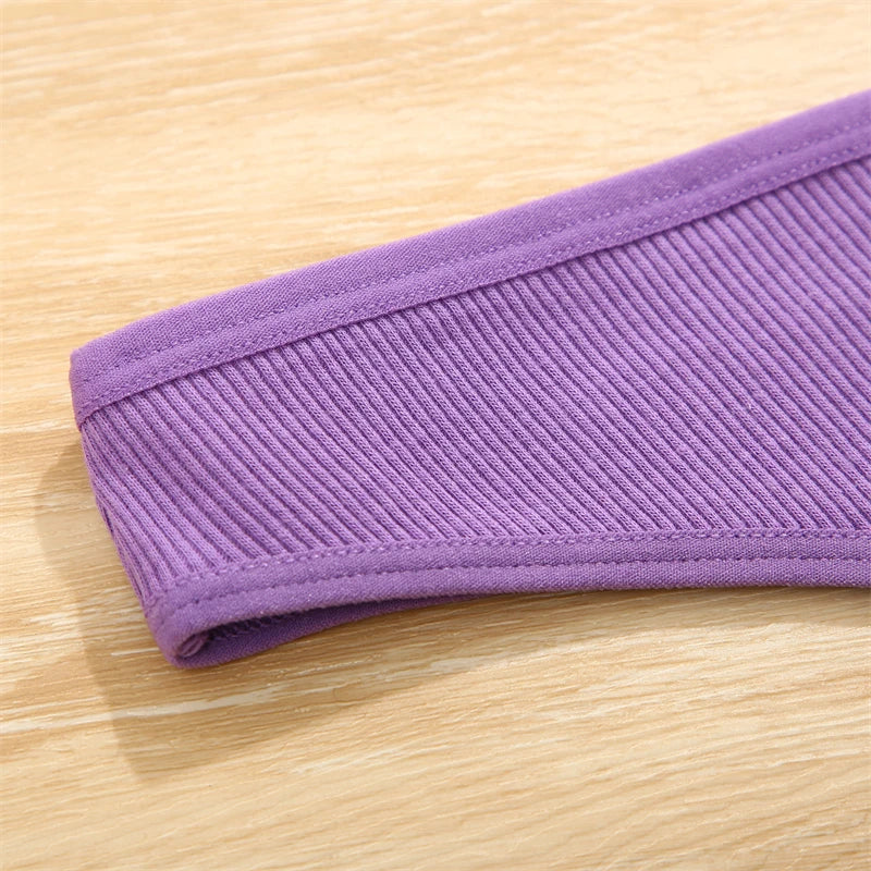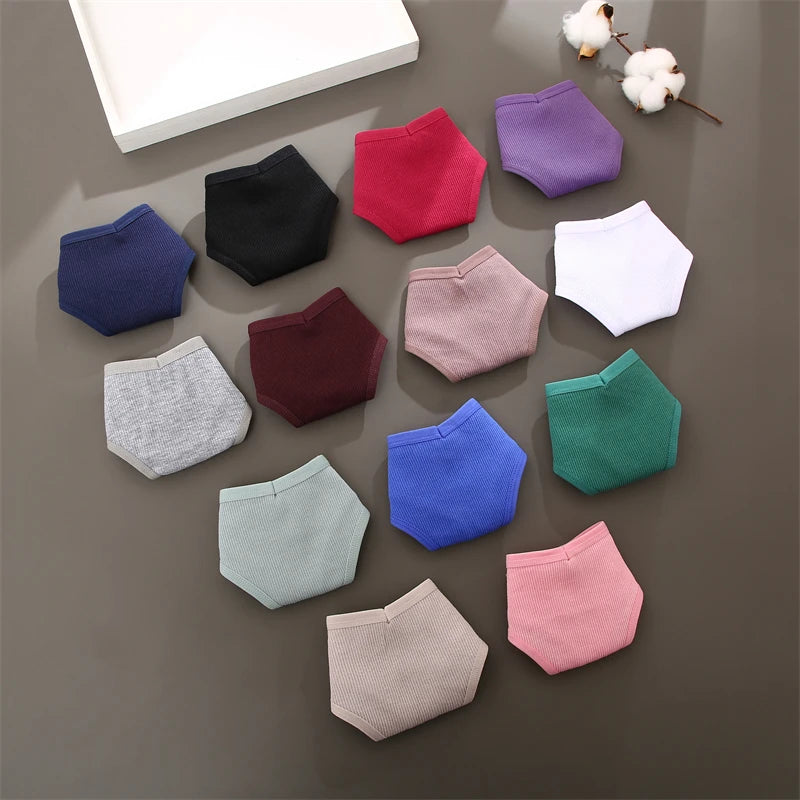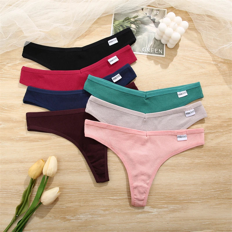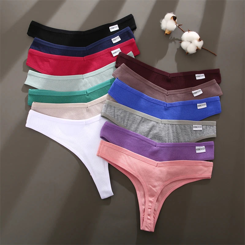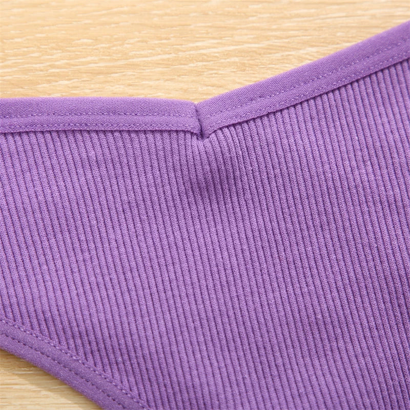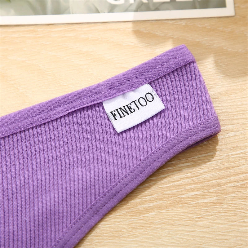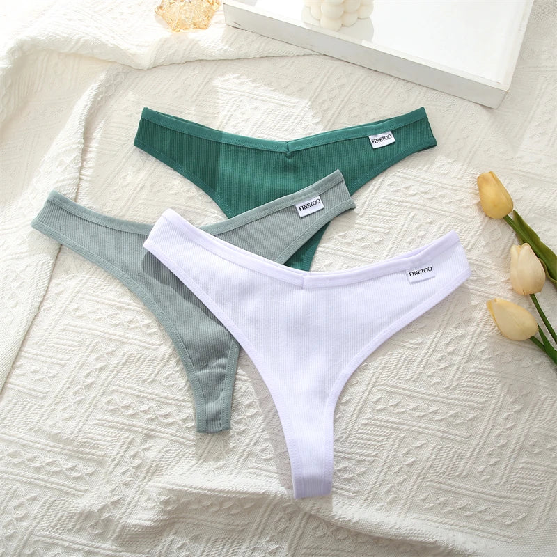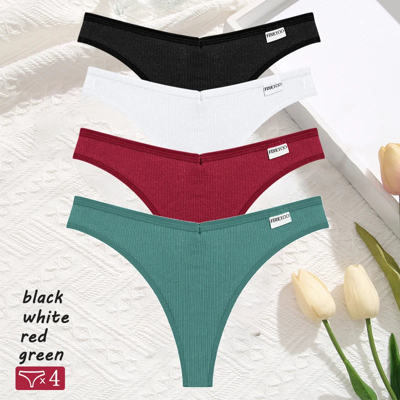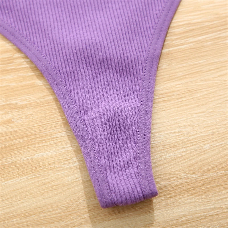 Women's 4Pcs Cotton Striped Solid Underwear V Waist G-string Panties Comfortable Soft T-back Bikini