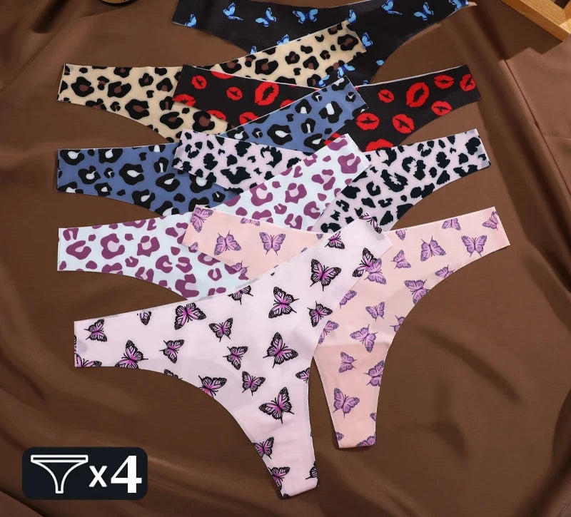 Women's 4Pcs Ultra Soft Underwear Graphic Print Seamless Thongs Stretch Leopard G Strings Comfort Lingerie