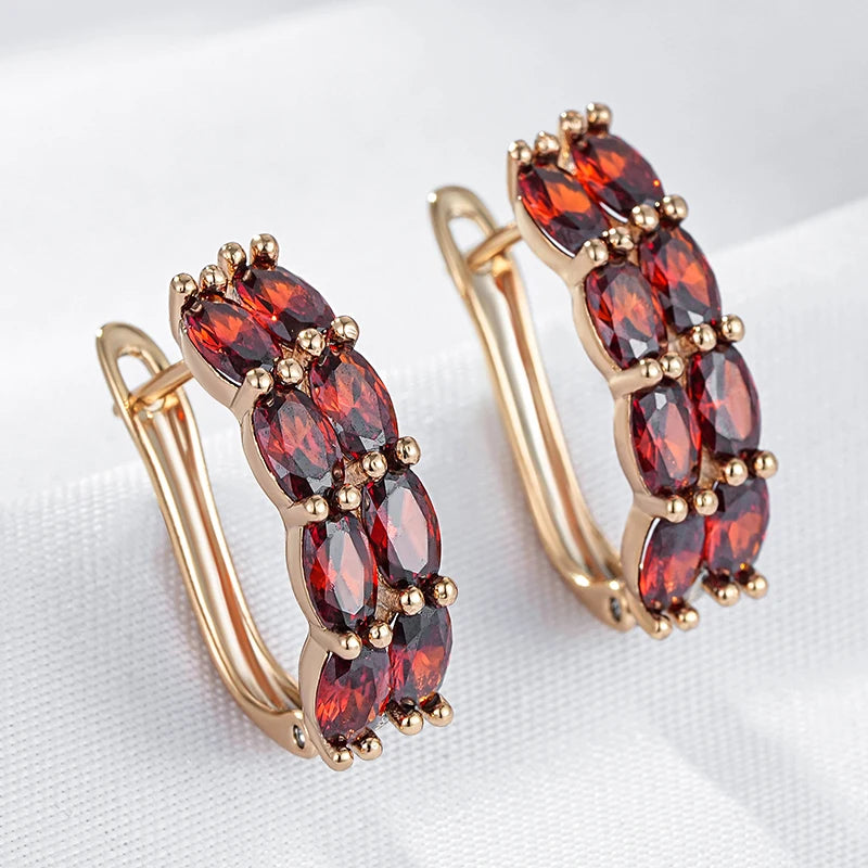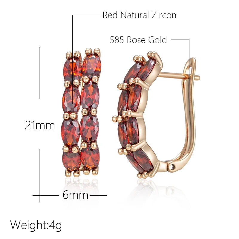 Women's 585 Rose Gold Colour Red Natural Zircon Drop Earrings