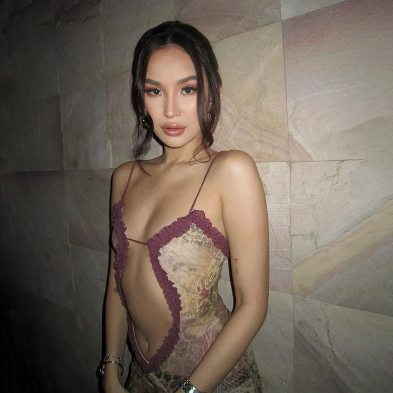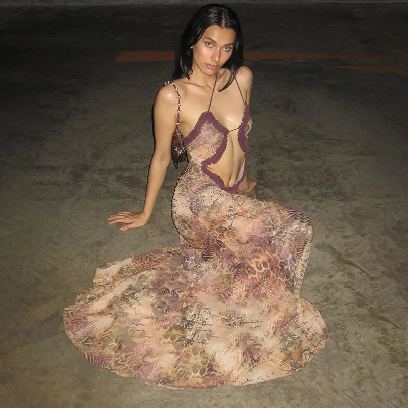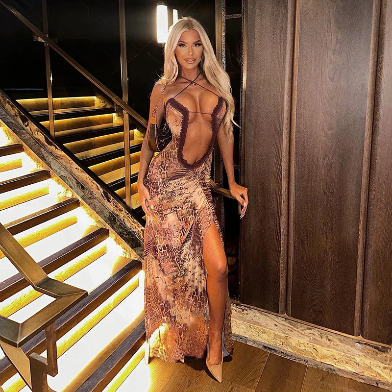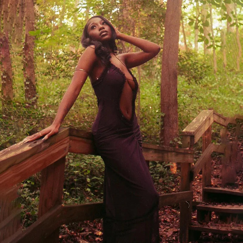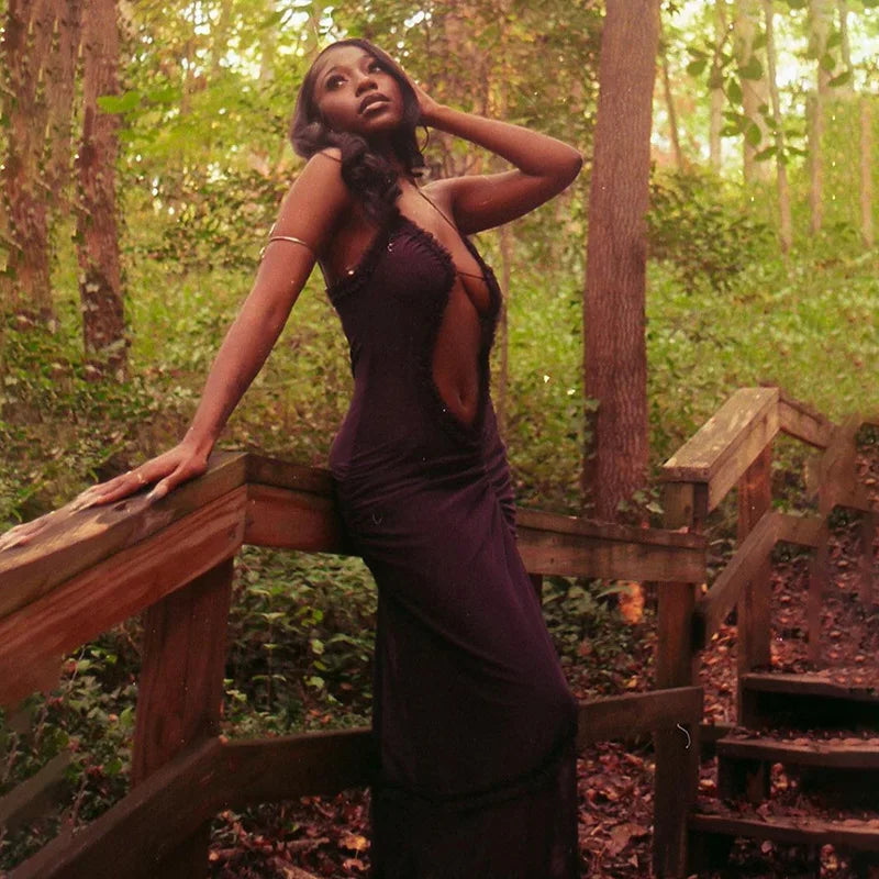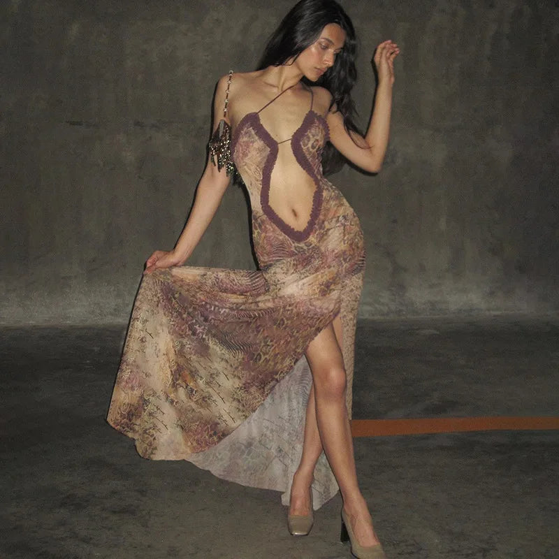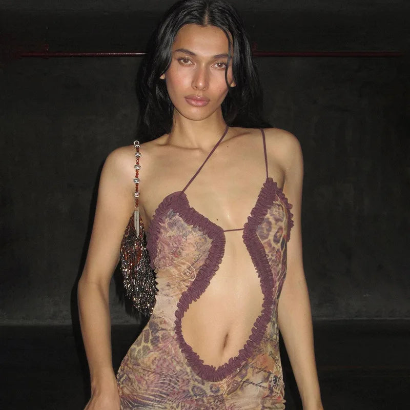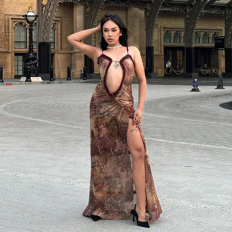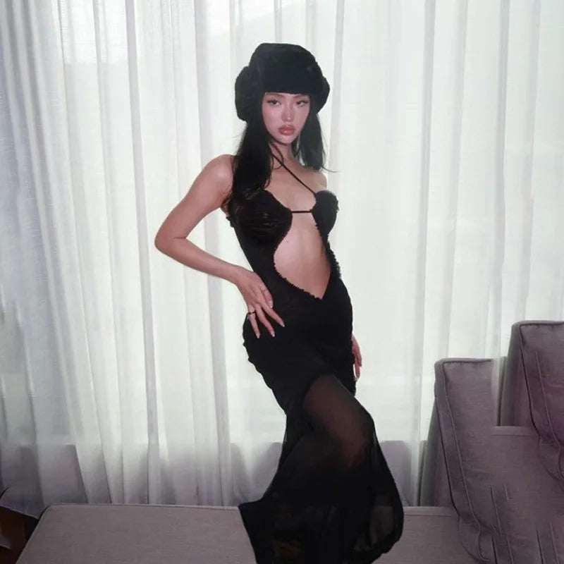 Women's Asymmetric Ruched Cut Out Sleeveless Maxi Party Slip Dress