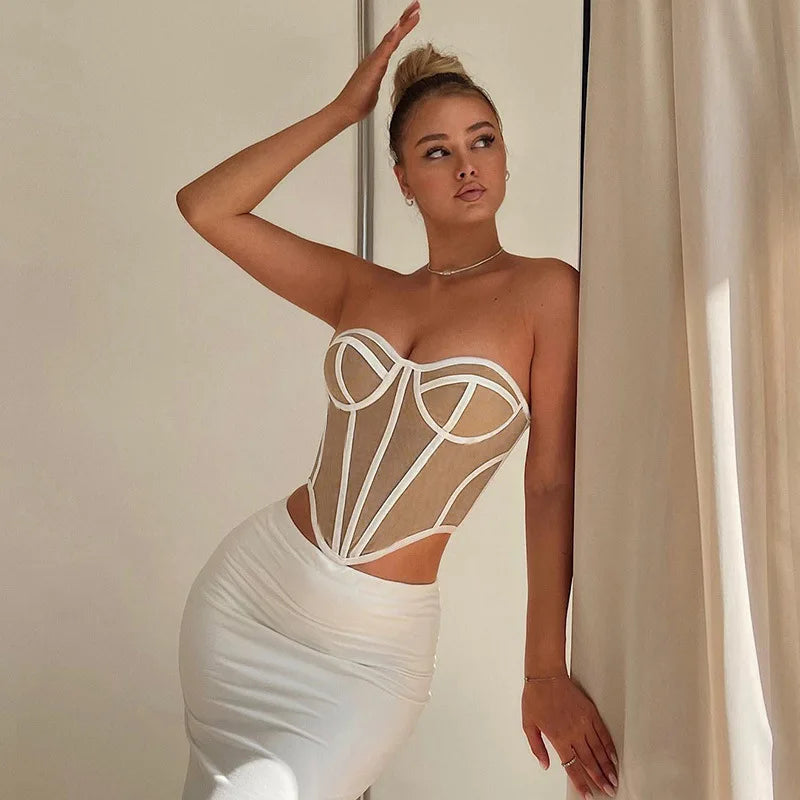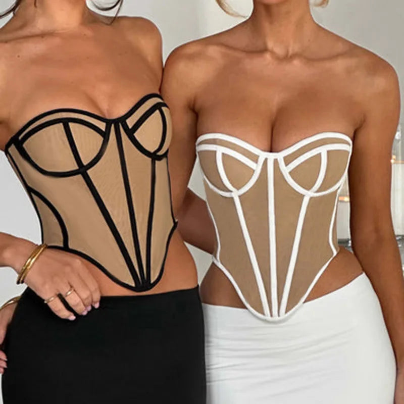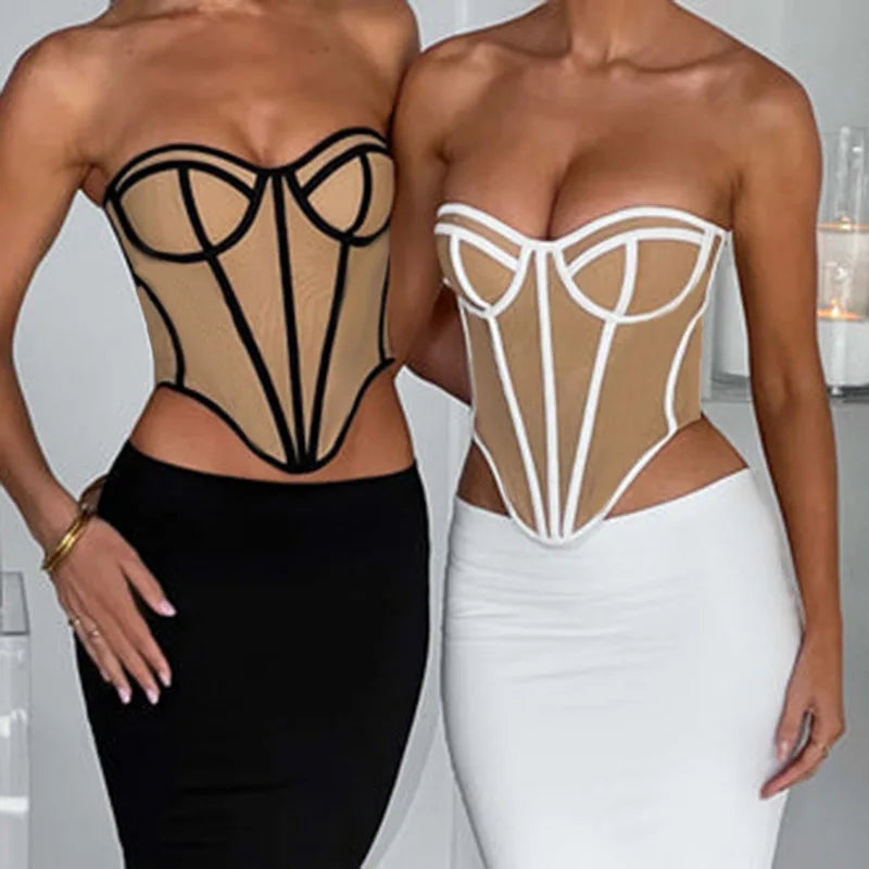 Women's Backless Corset Top - Sleeveless Bustier Crop Top