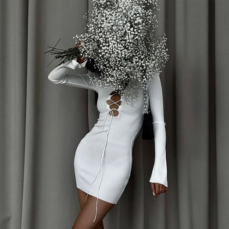 Women's Bandage Mini Dress - Long Sleeve Bodycon Dress