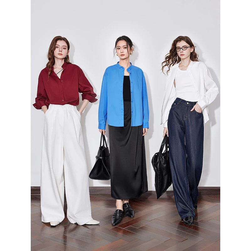 Women's Blouse Stand Collar Single Breasted Button Shirt