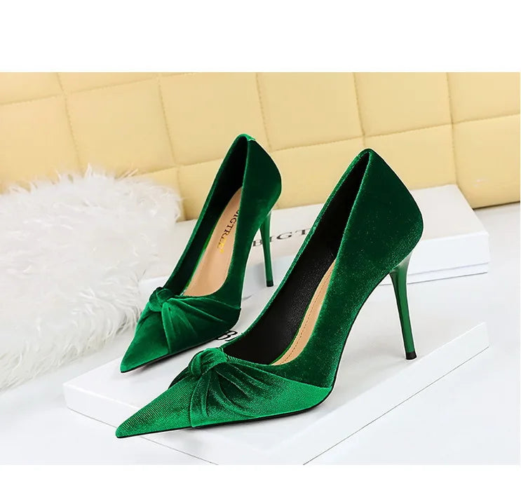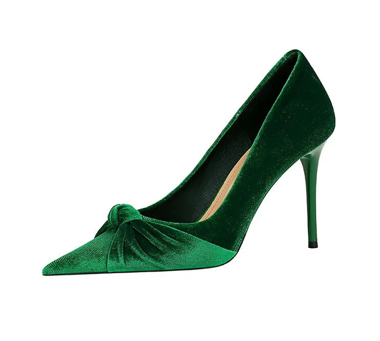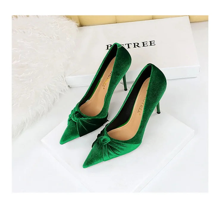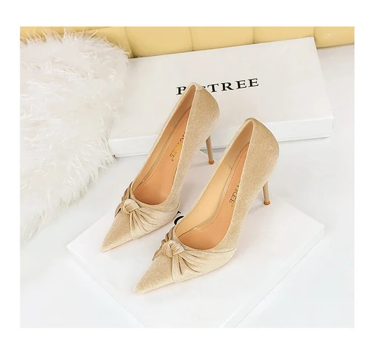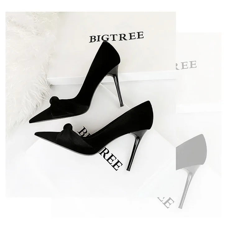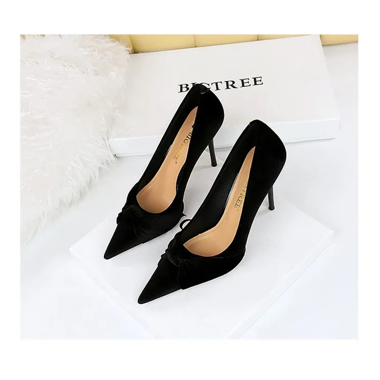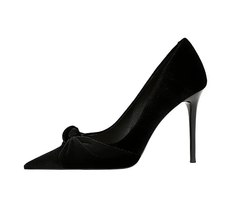 Women's Bowknot Suede High Heels Pointed Stilettos