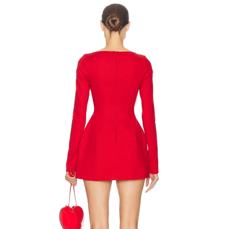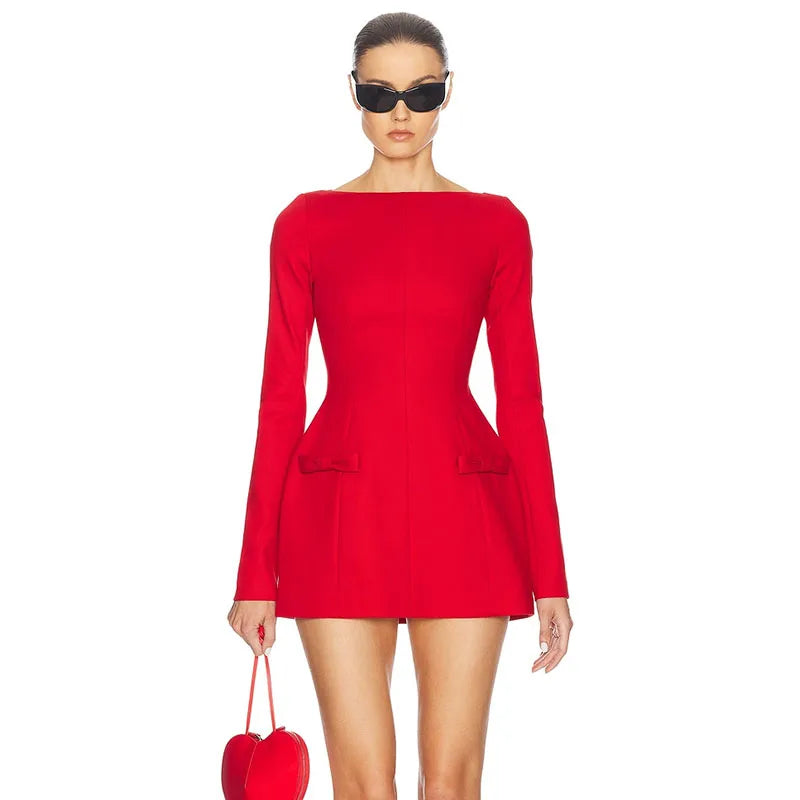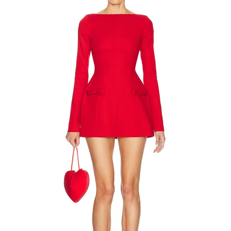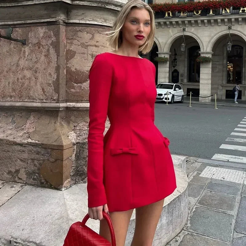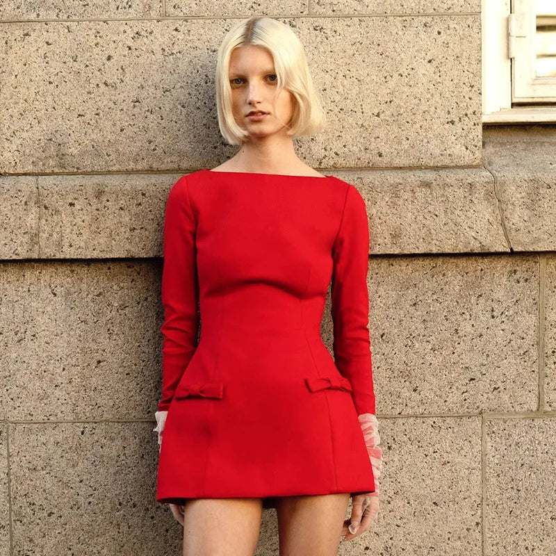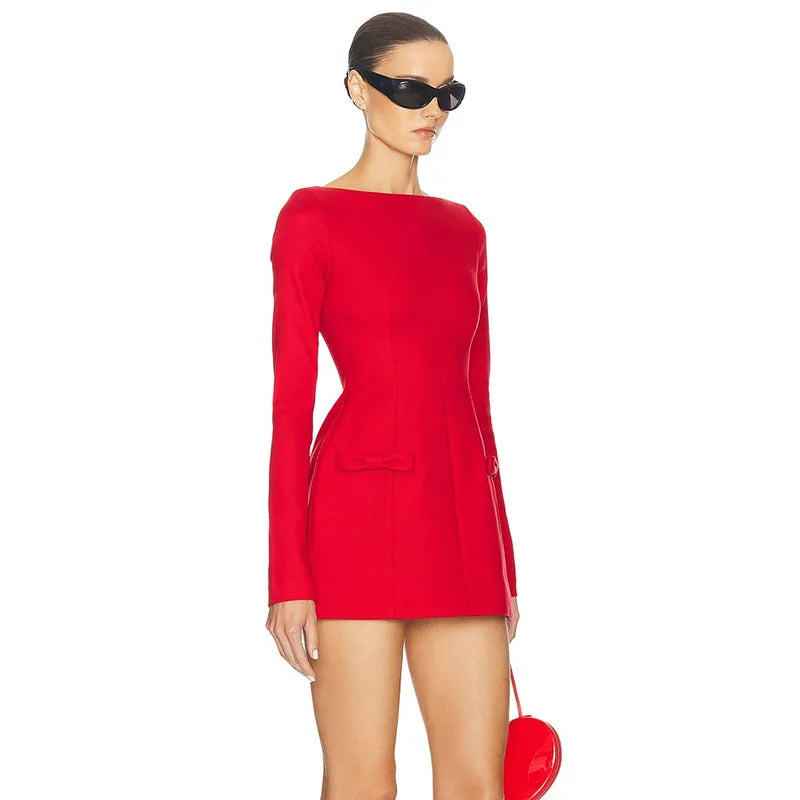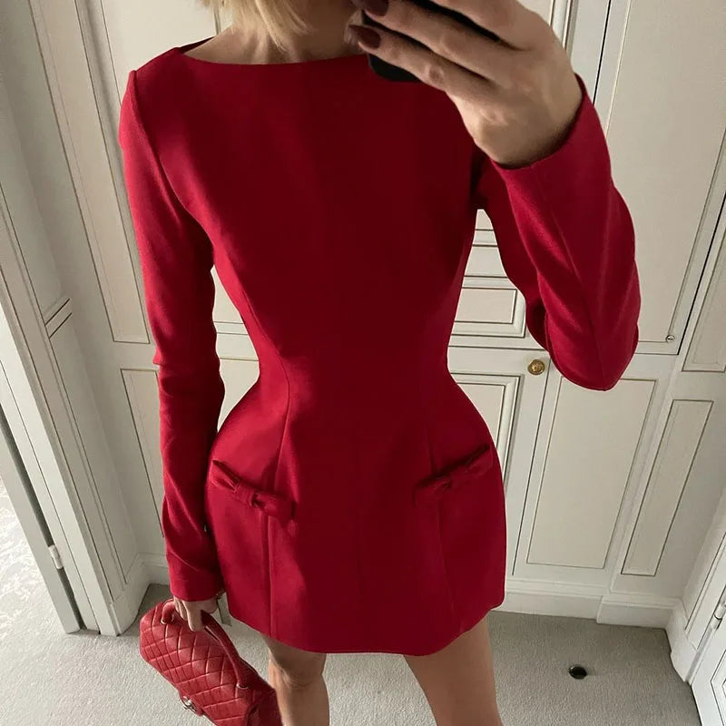 Women's Bows Splice Long Sleeve Mini Dress Elegant Office Woman Solid Bodycon Club Party Dresses 2024 Autumn High Waist Fashion