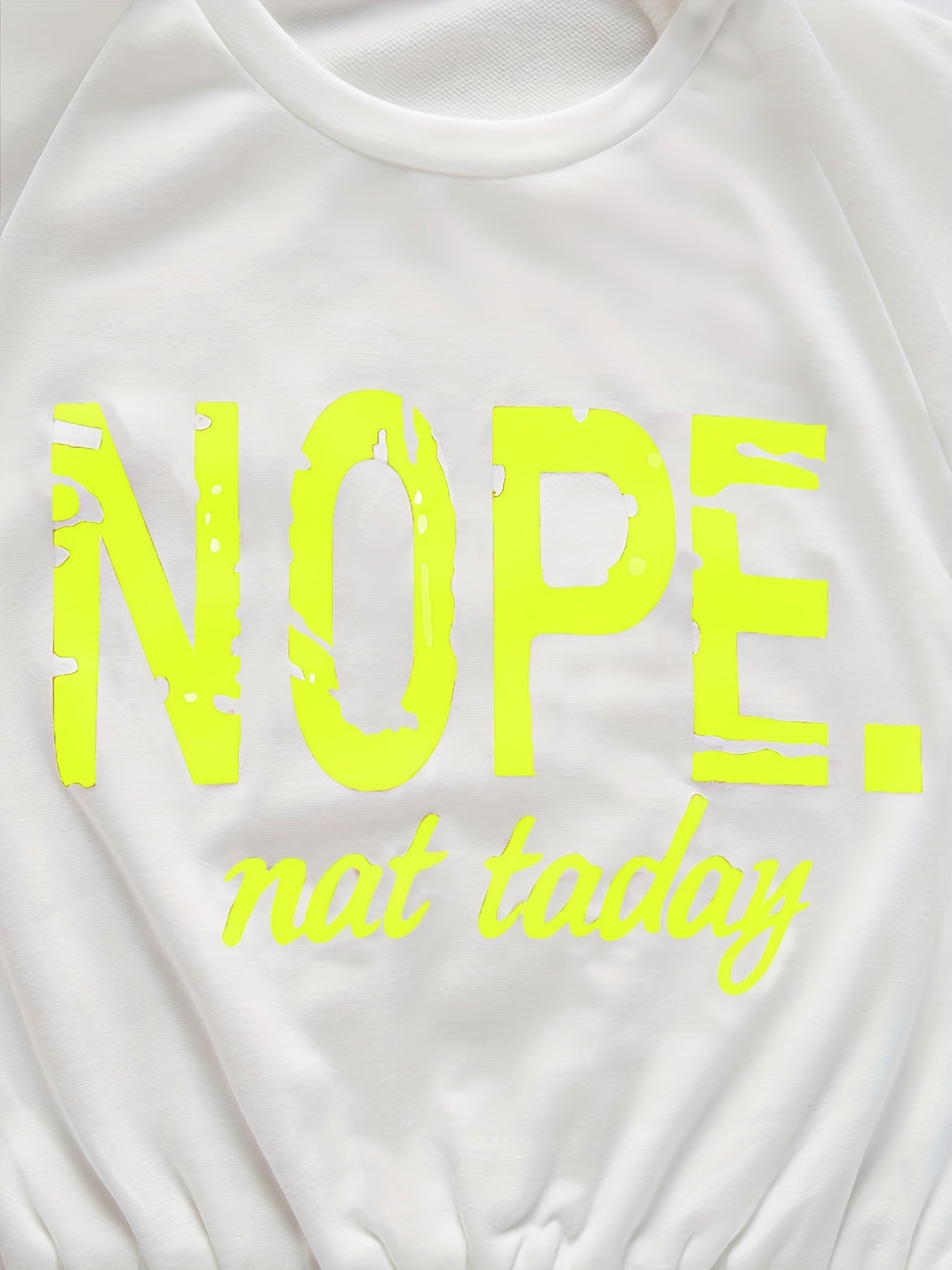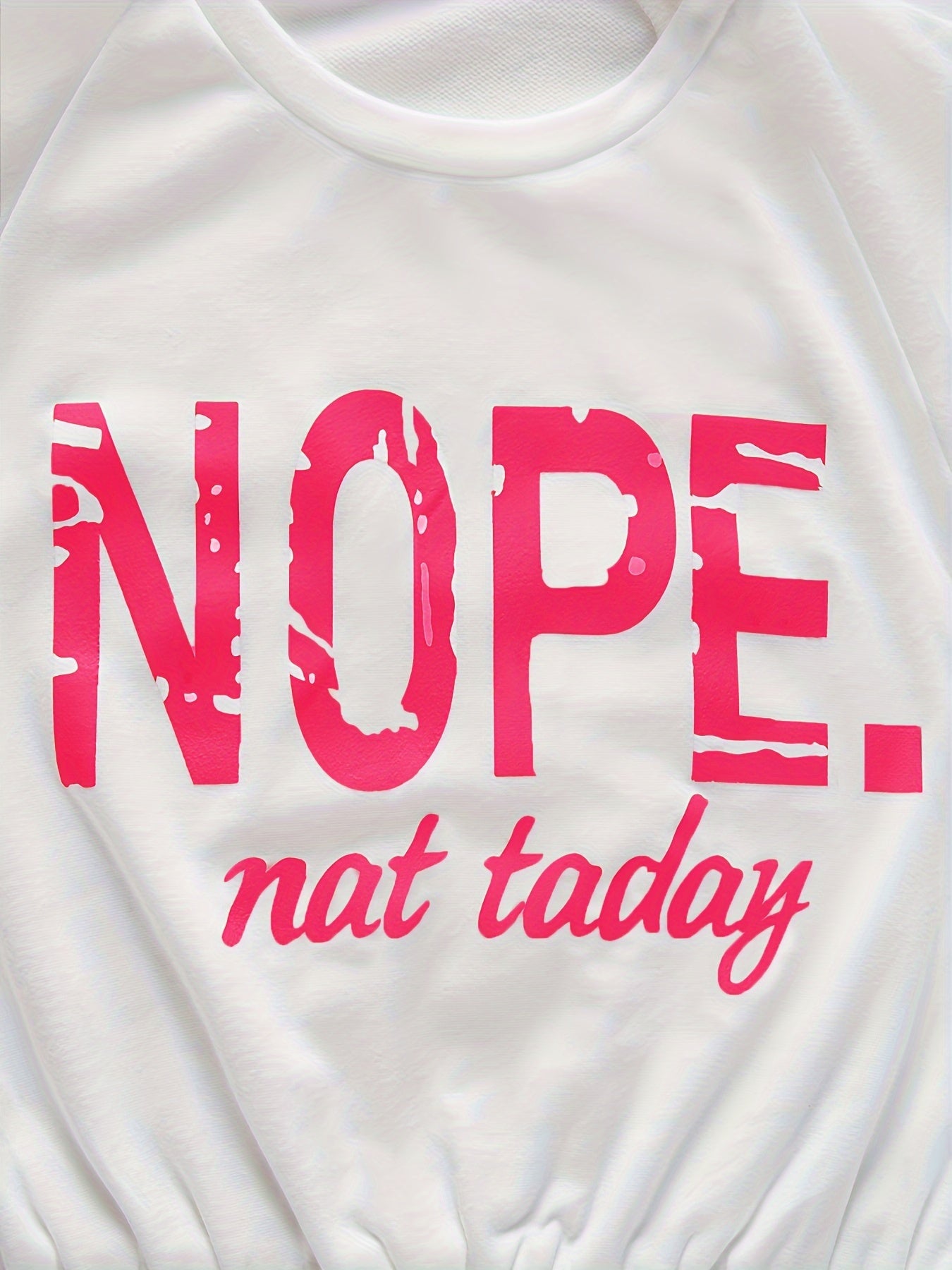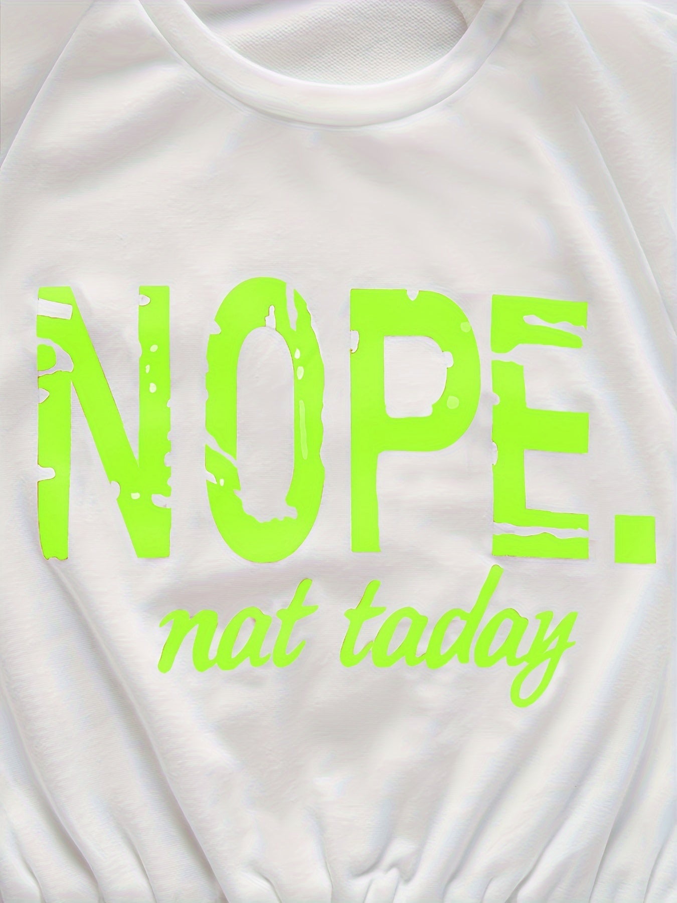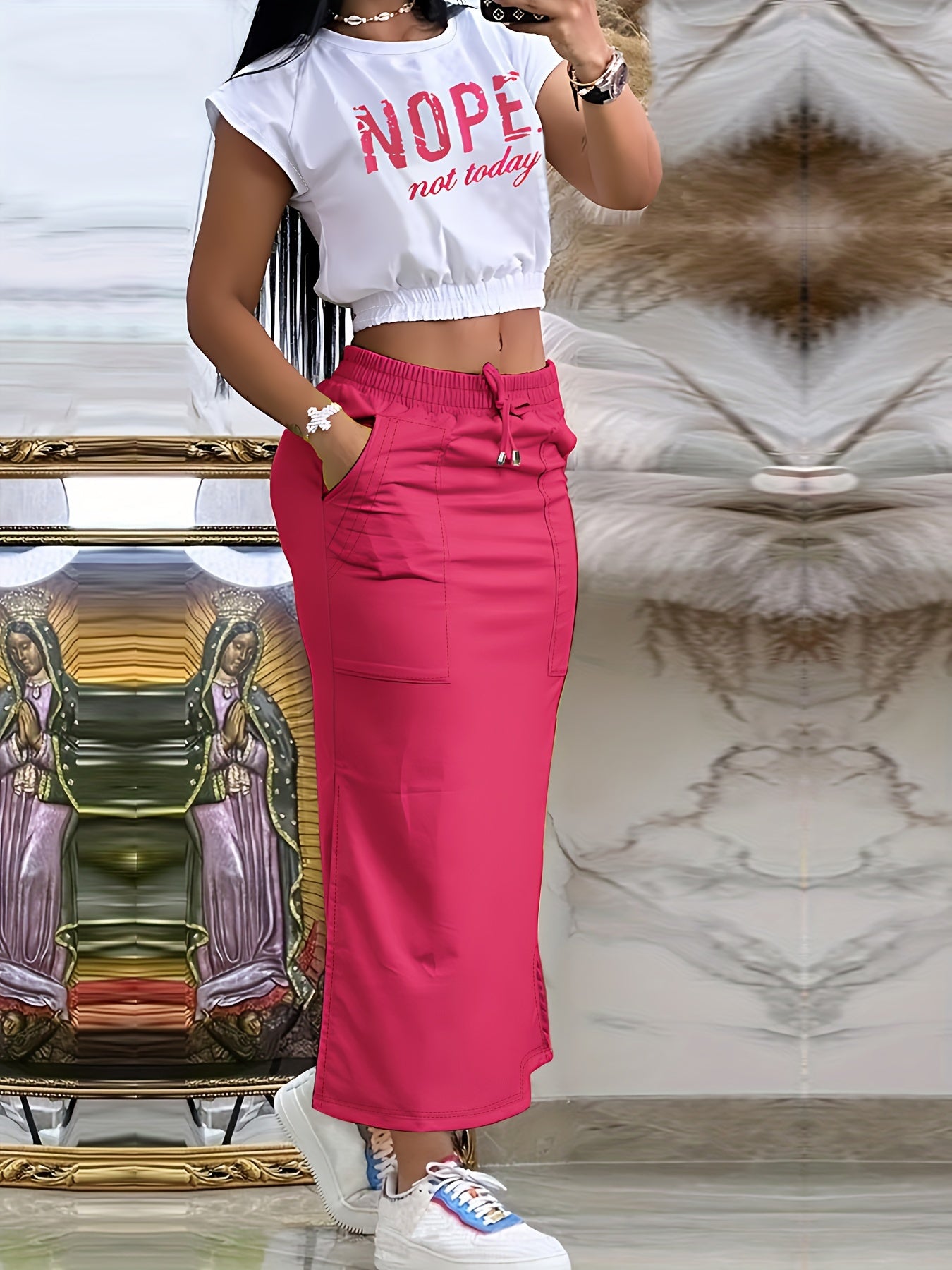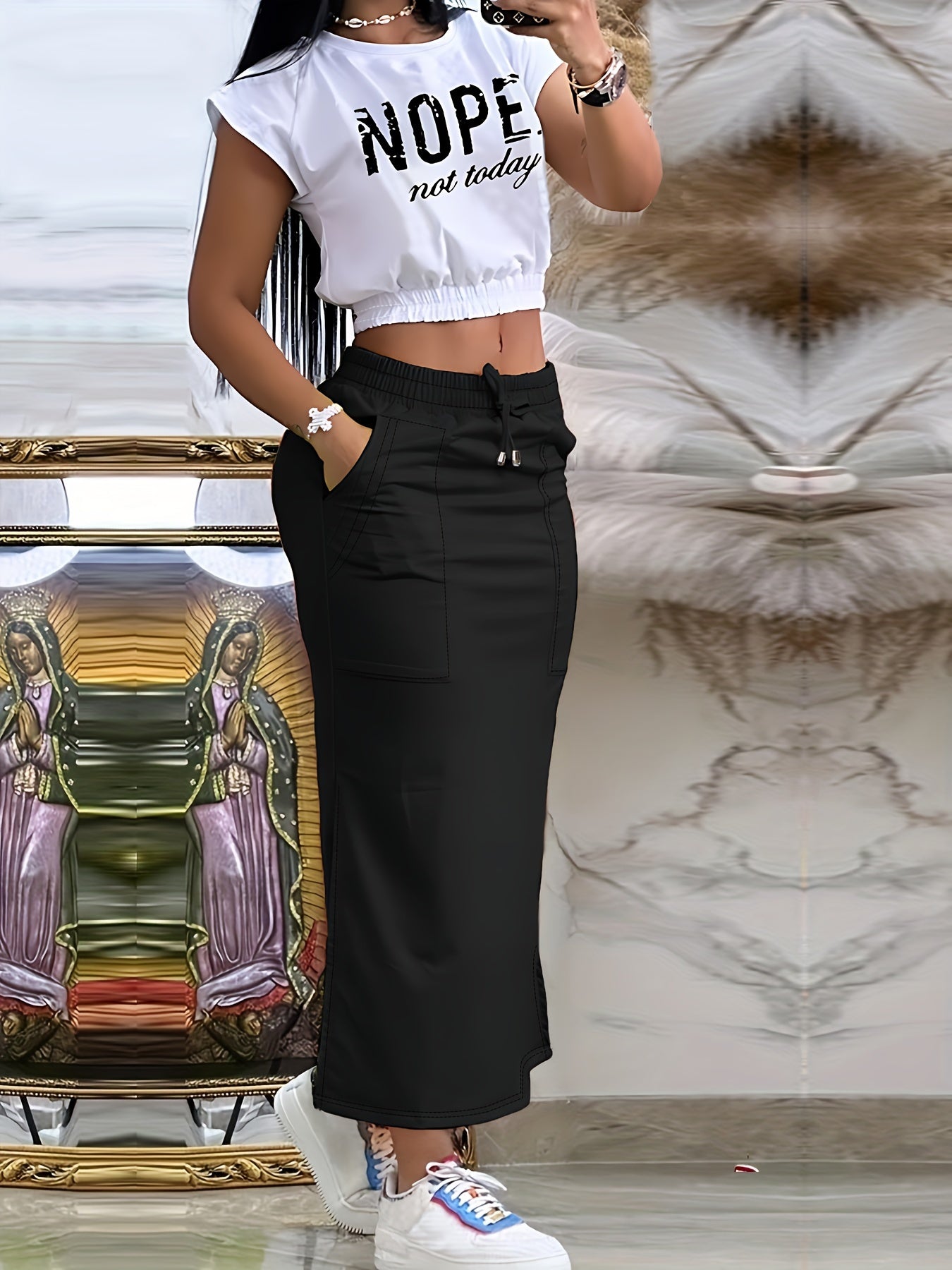 Women's Casual Slim Two-piece Skirt Set, "NOPE not today" Letter Print Short Sleeve Top & Drawstring Split Thigh Pockets Skirt Outfit
