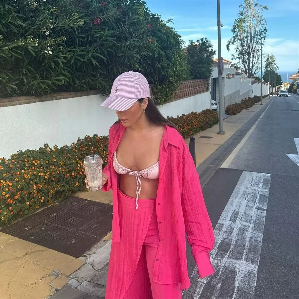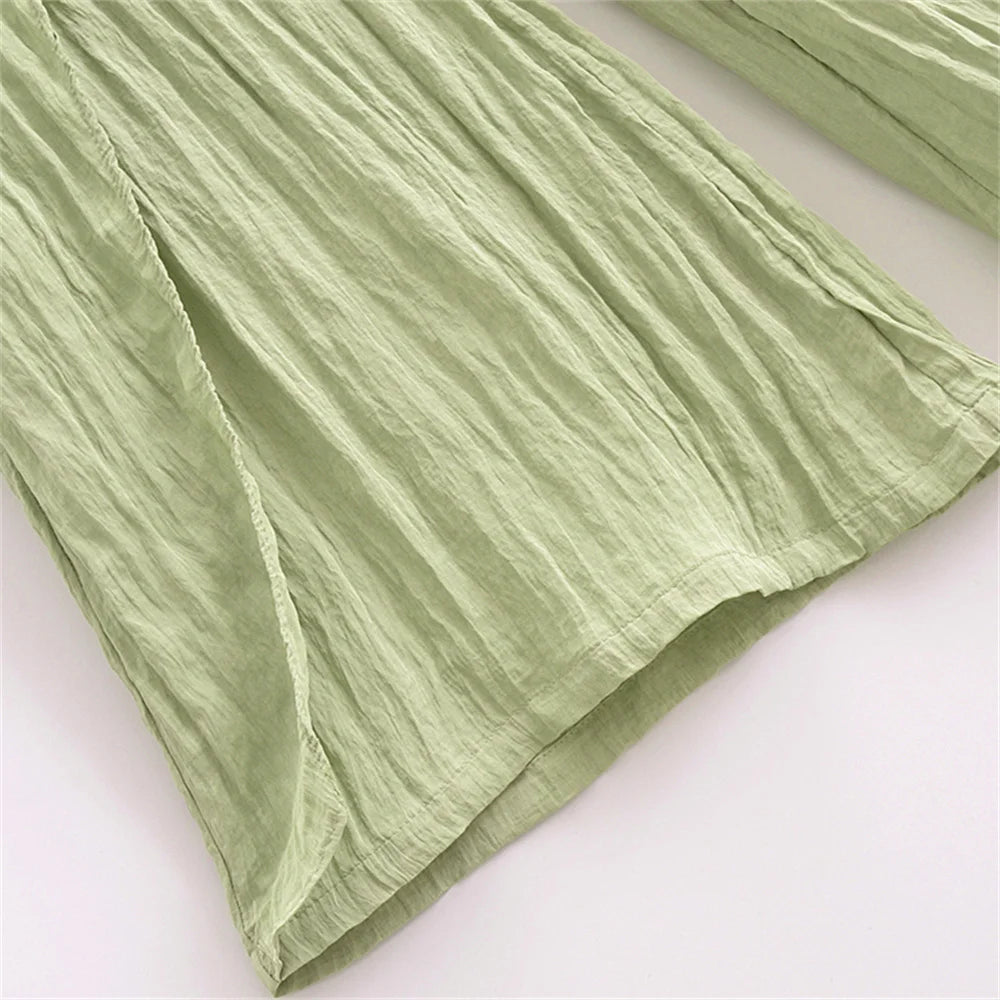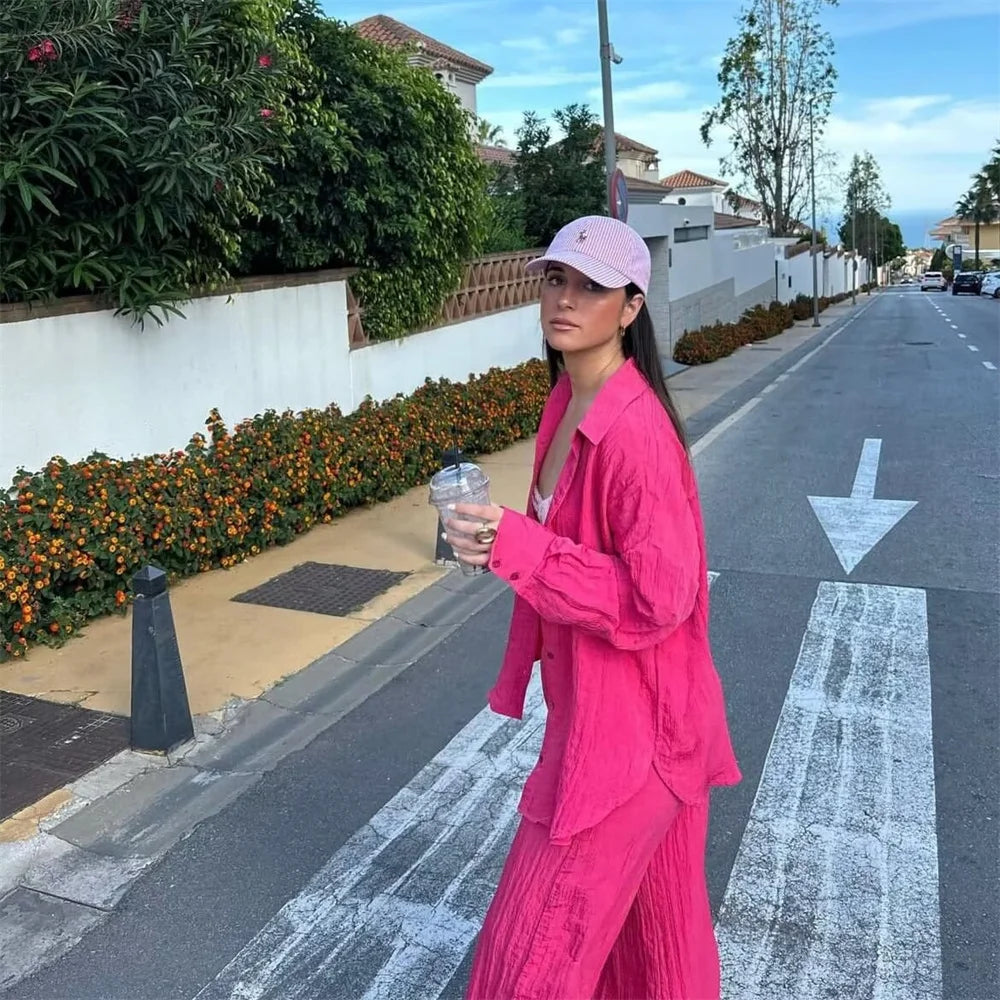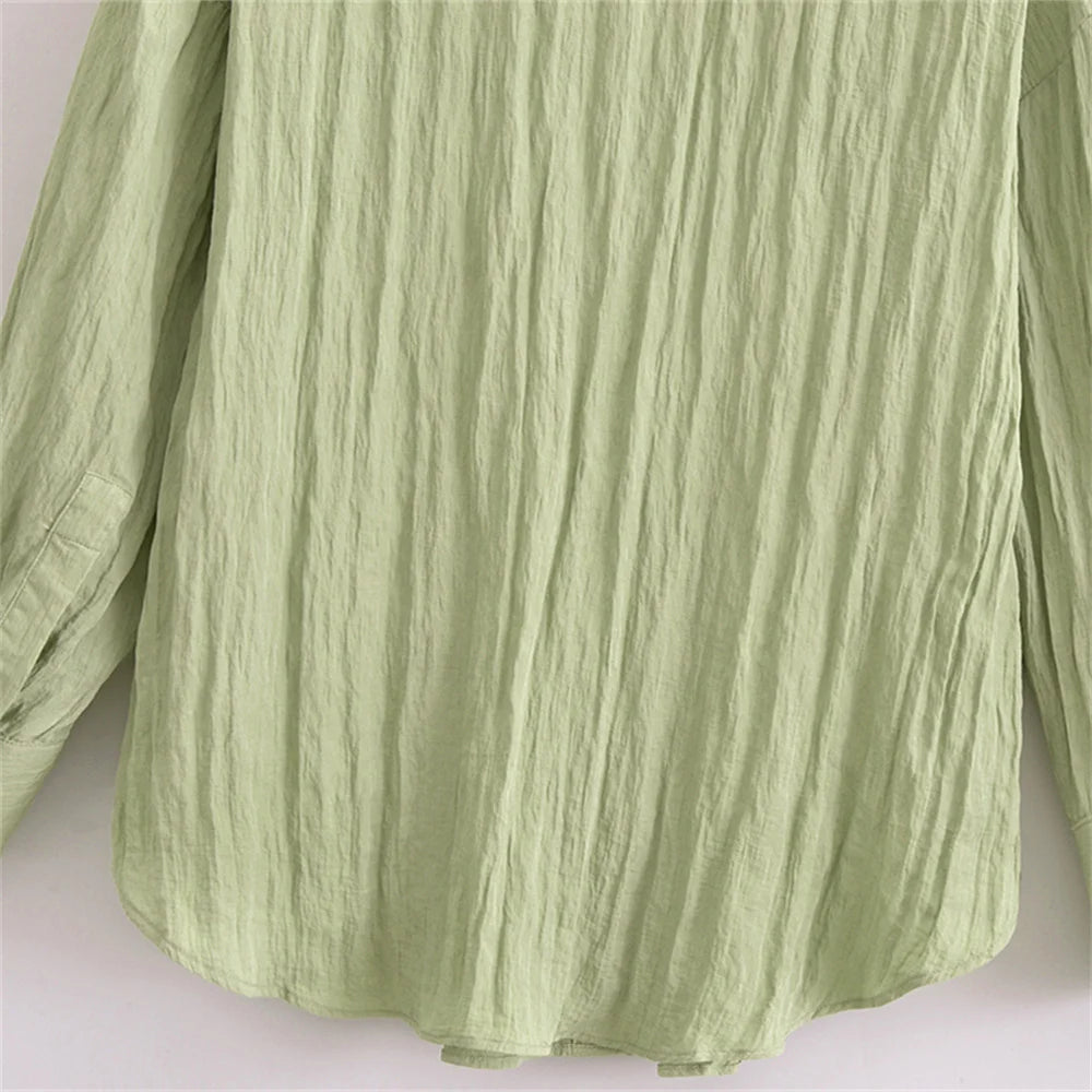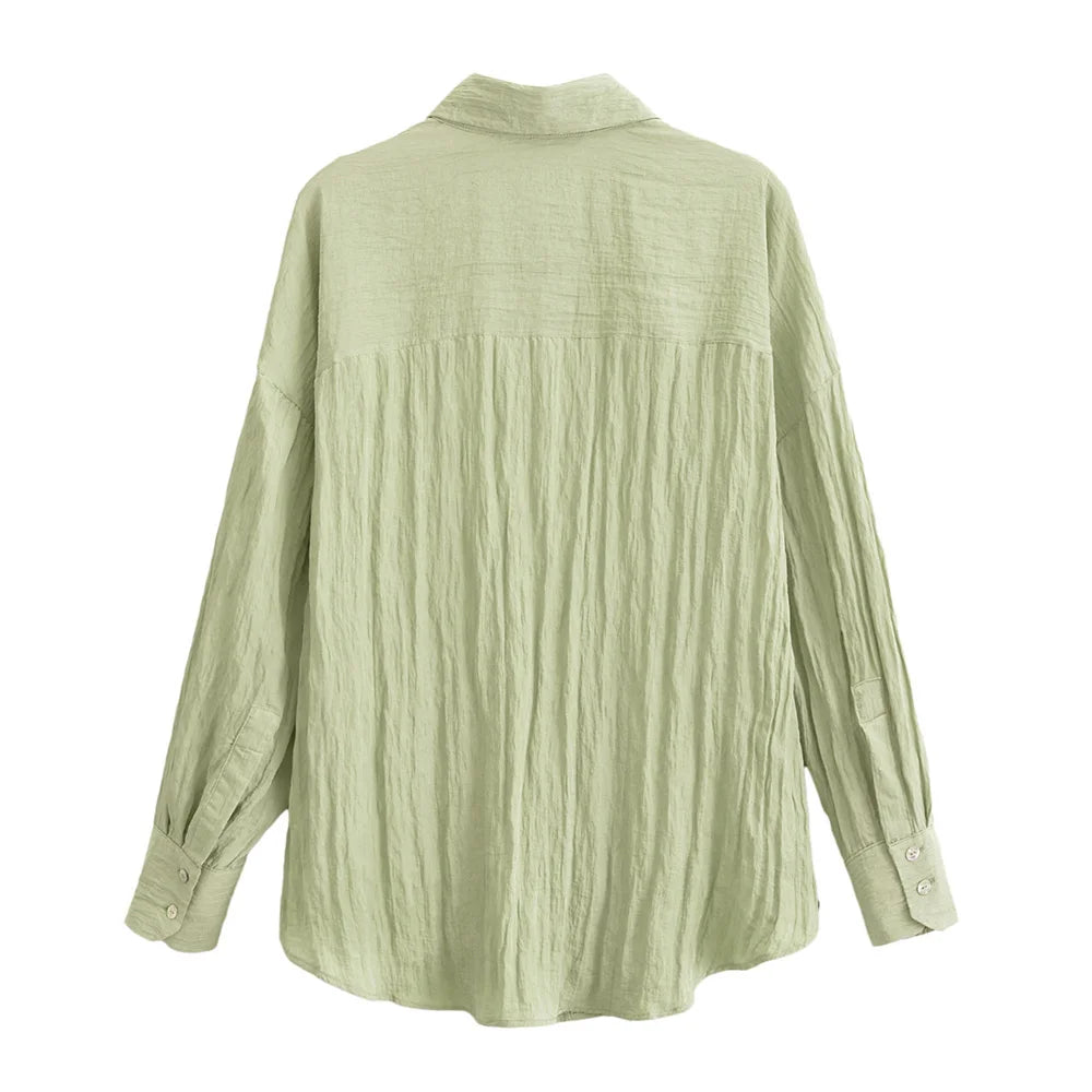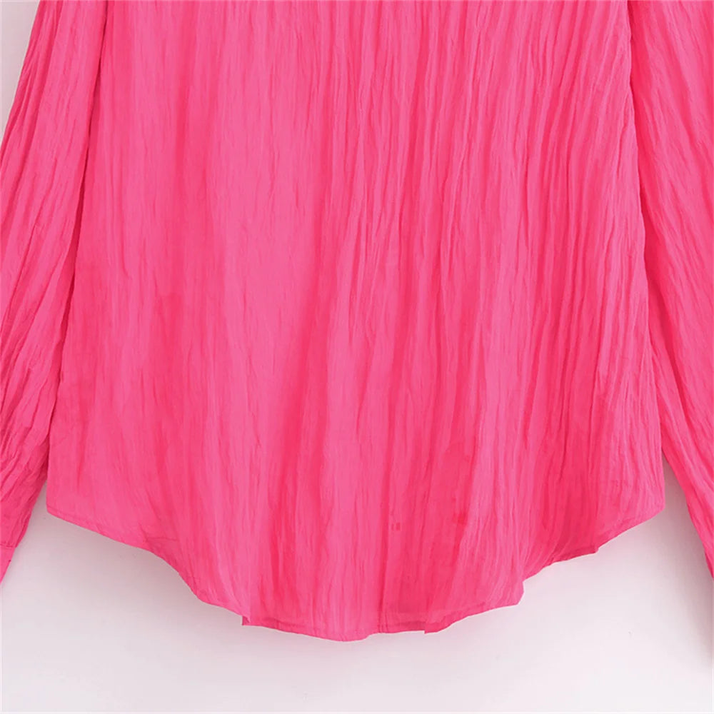 Women's Casual Solid Colour Lapel Wrinkle Effect Shirt And Trousers Set