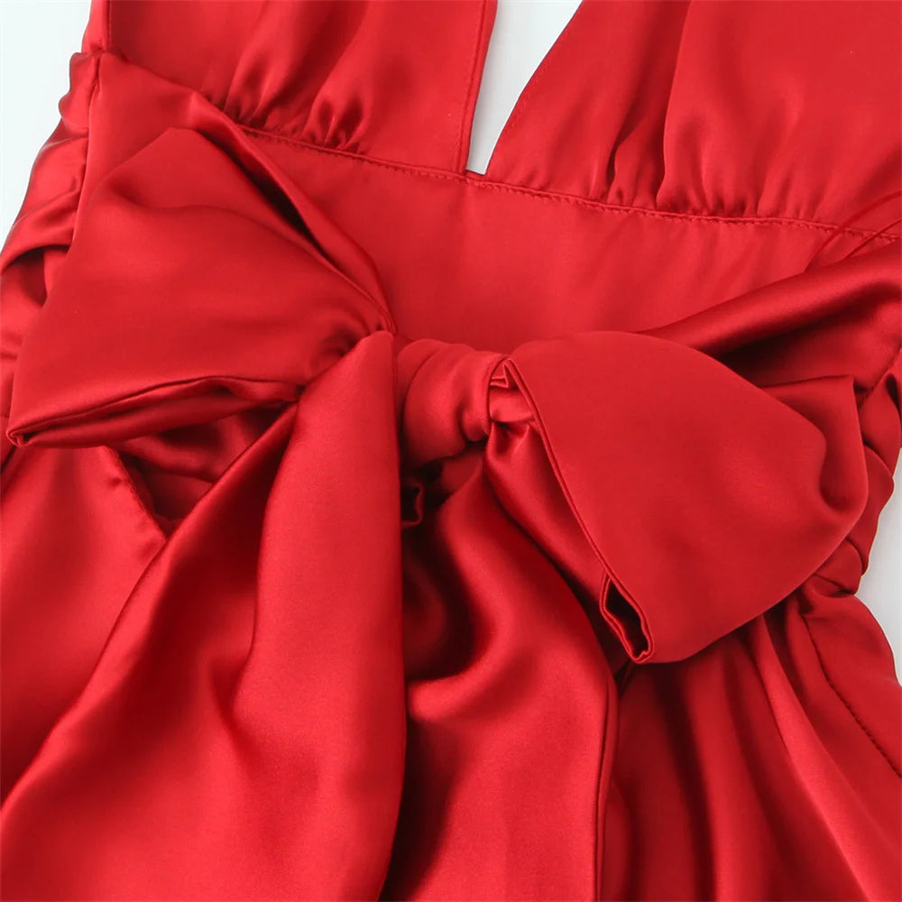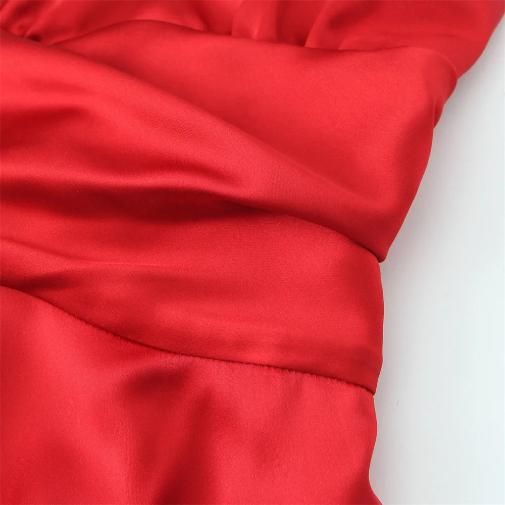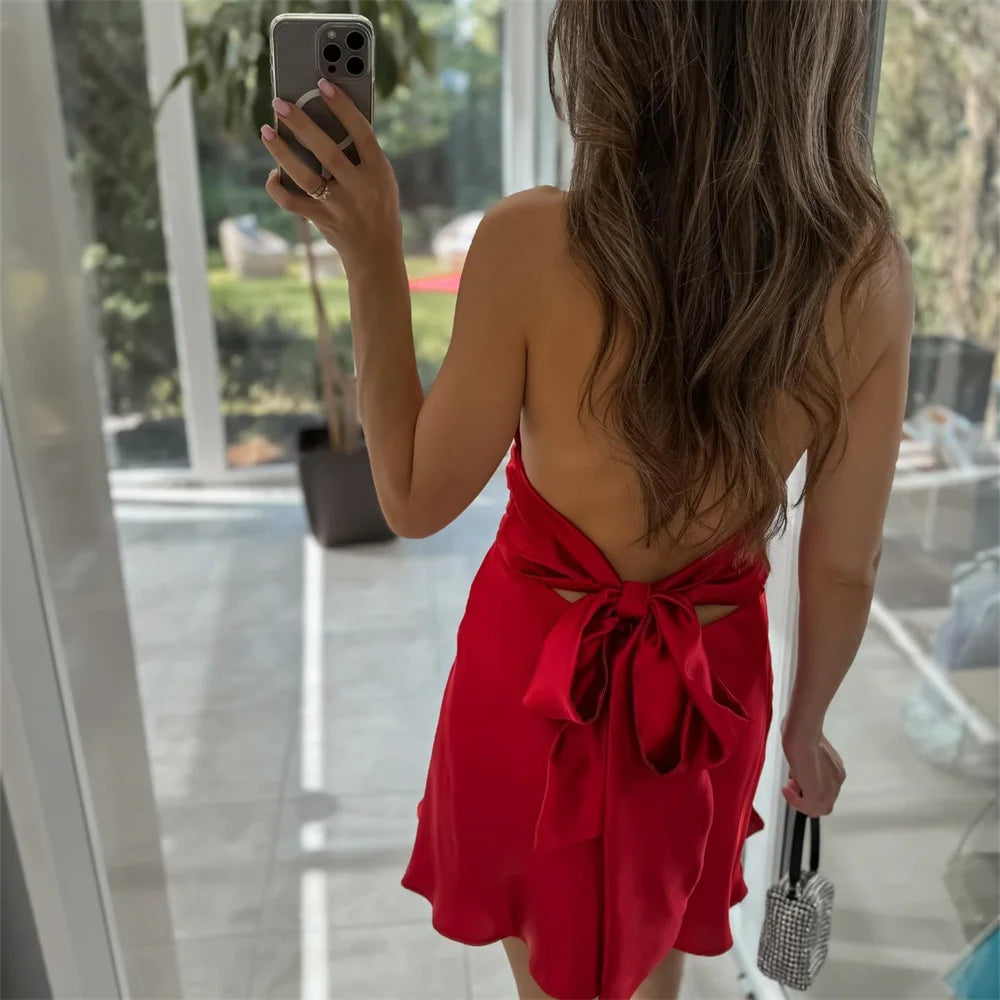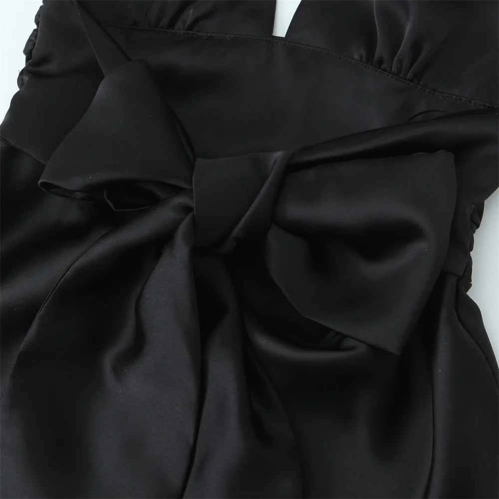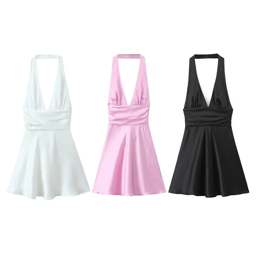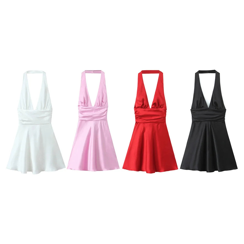 Women's Casual Temperament Solid Colour Satin Suspender Dress