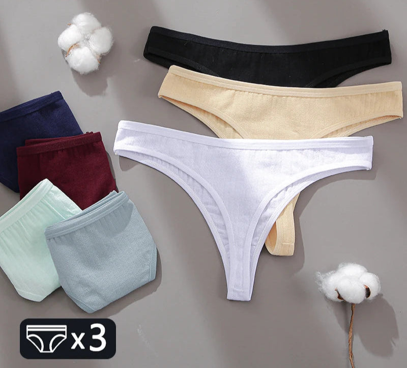 Women's Cotton Thongs 3Pcs/set Soft T-back Underpants S-XL G-string Underwear Low Waist Cotton Panty Lingerie