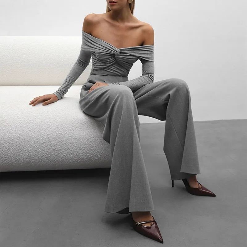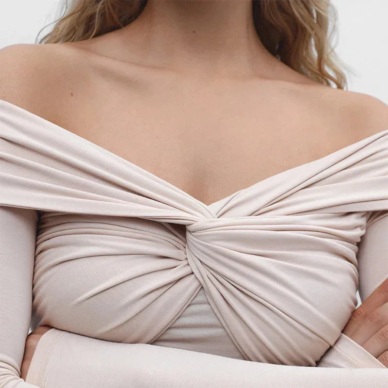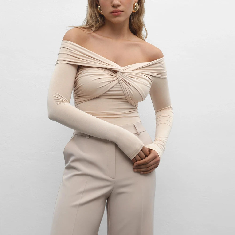 Women's Cross Neck Long Sleeve Off Shoulder Bodycon Top