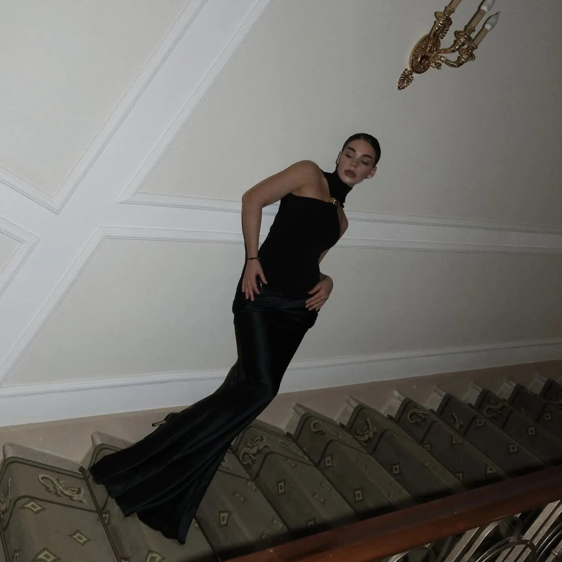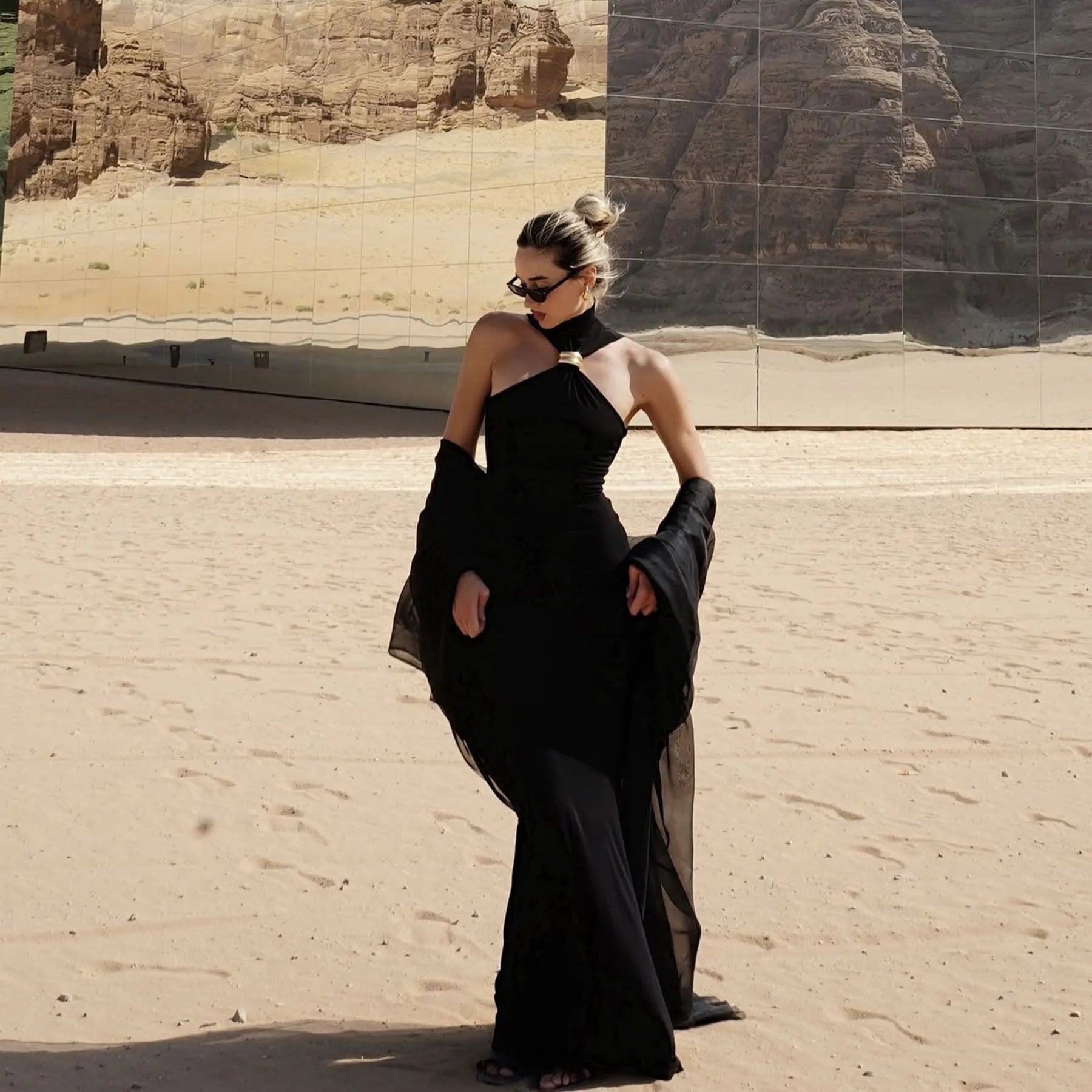 Women's Cut Out Sleeveless Turtleneck Tops Embellished Elegant Solid Top