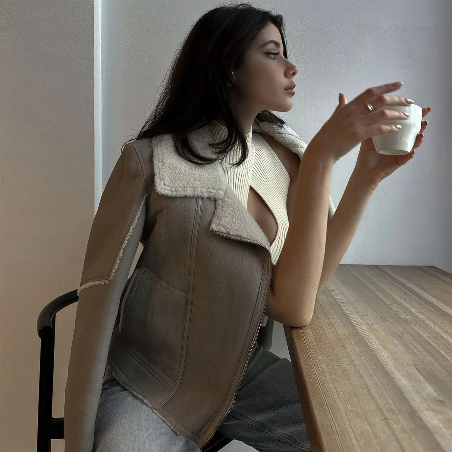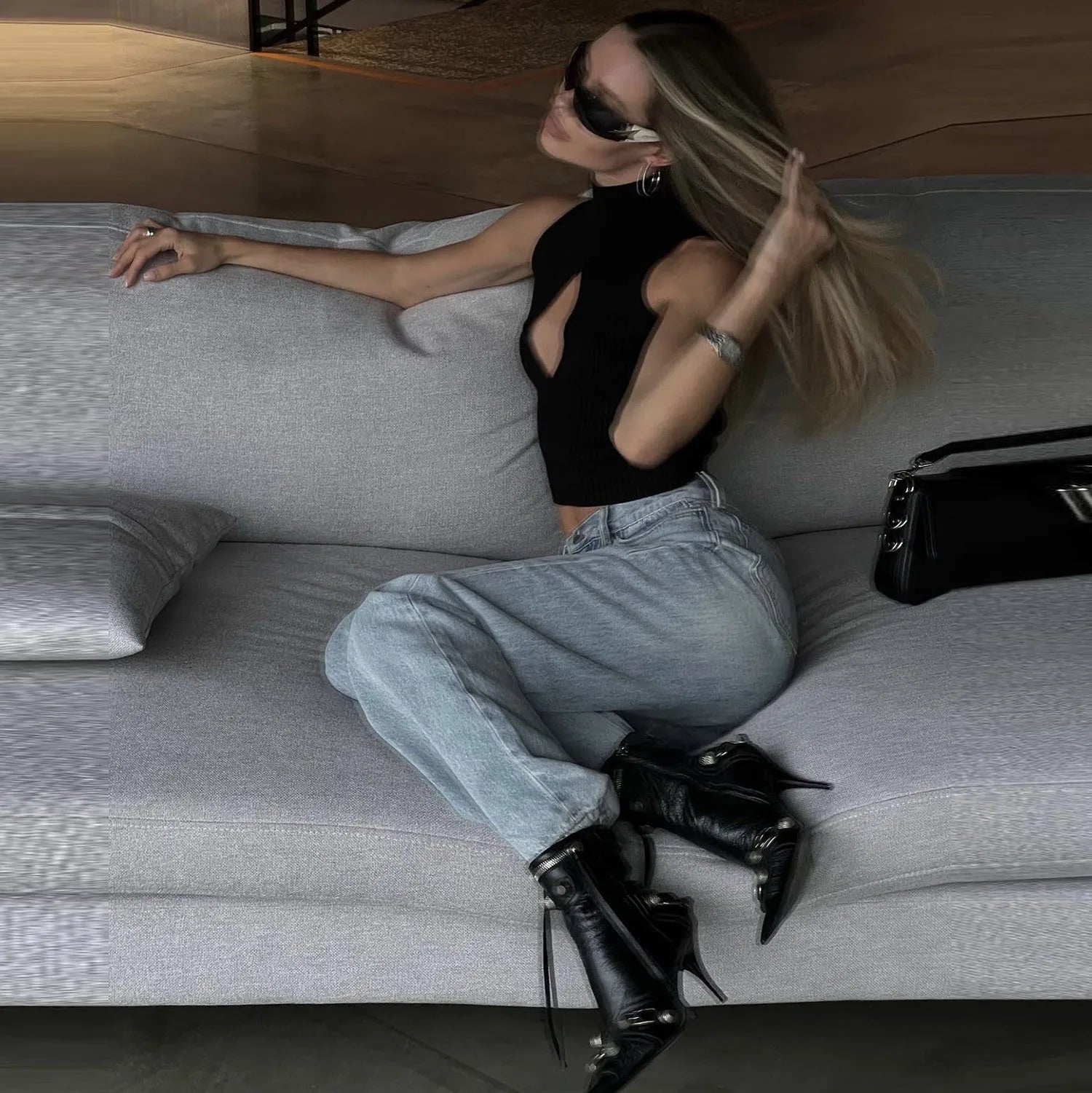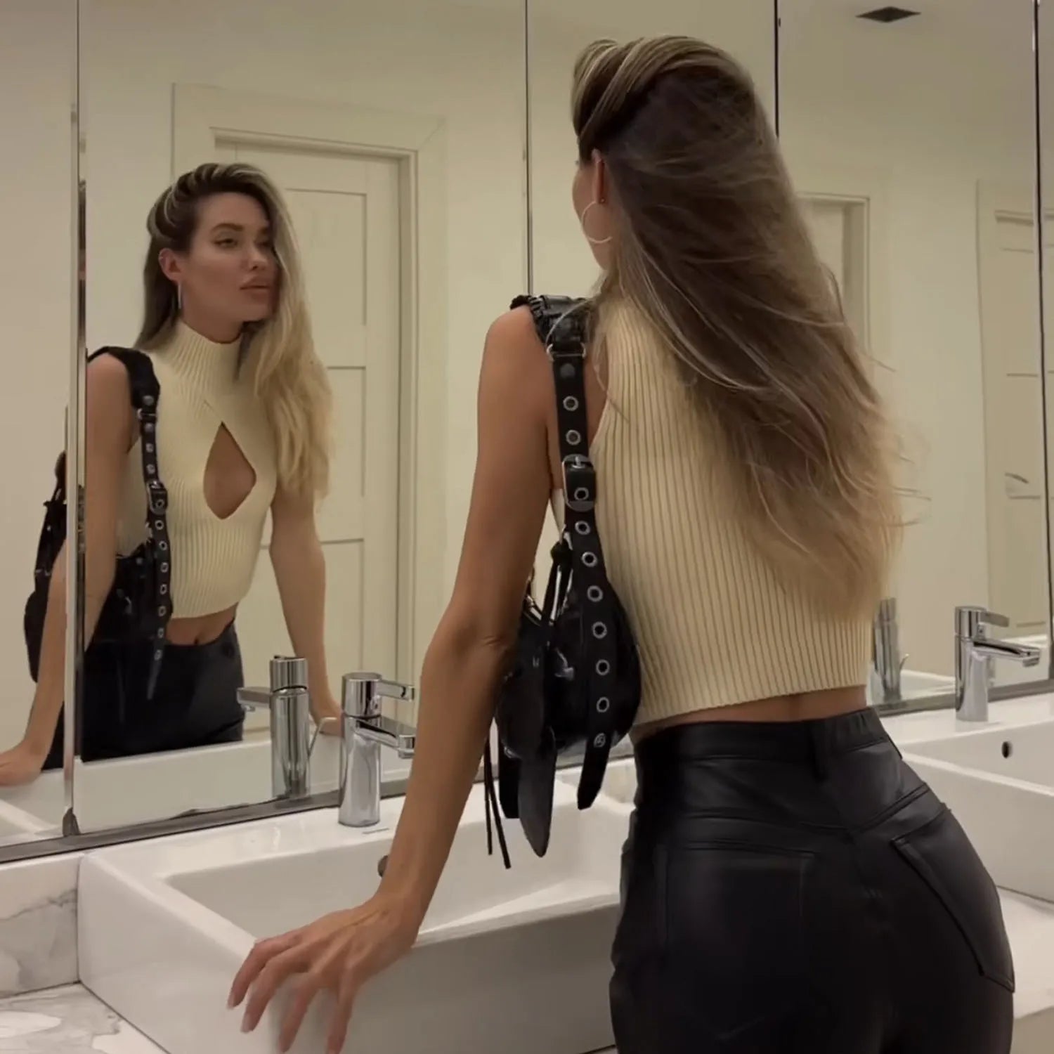 Women's Cut Out Top - Sleeveless Knitted Short Tank Top Turtleneck