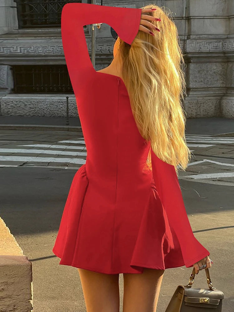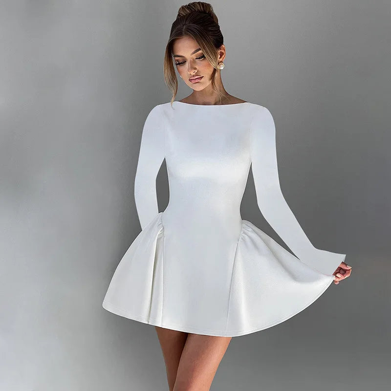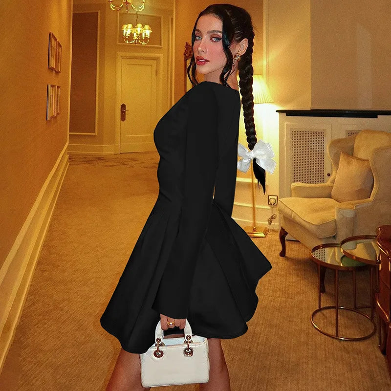 Women's Elegant Bodycon Mini A-line Hem Splice Round Neck Long Sleeve Dress