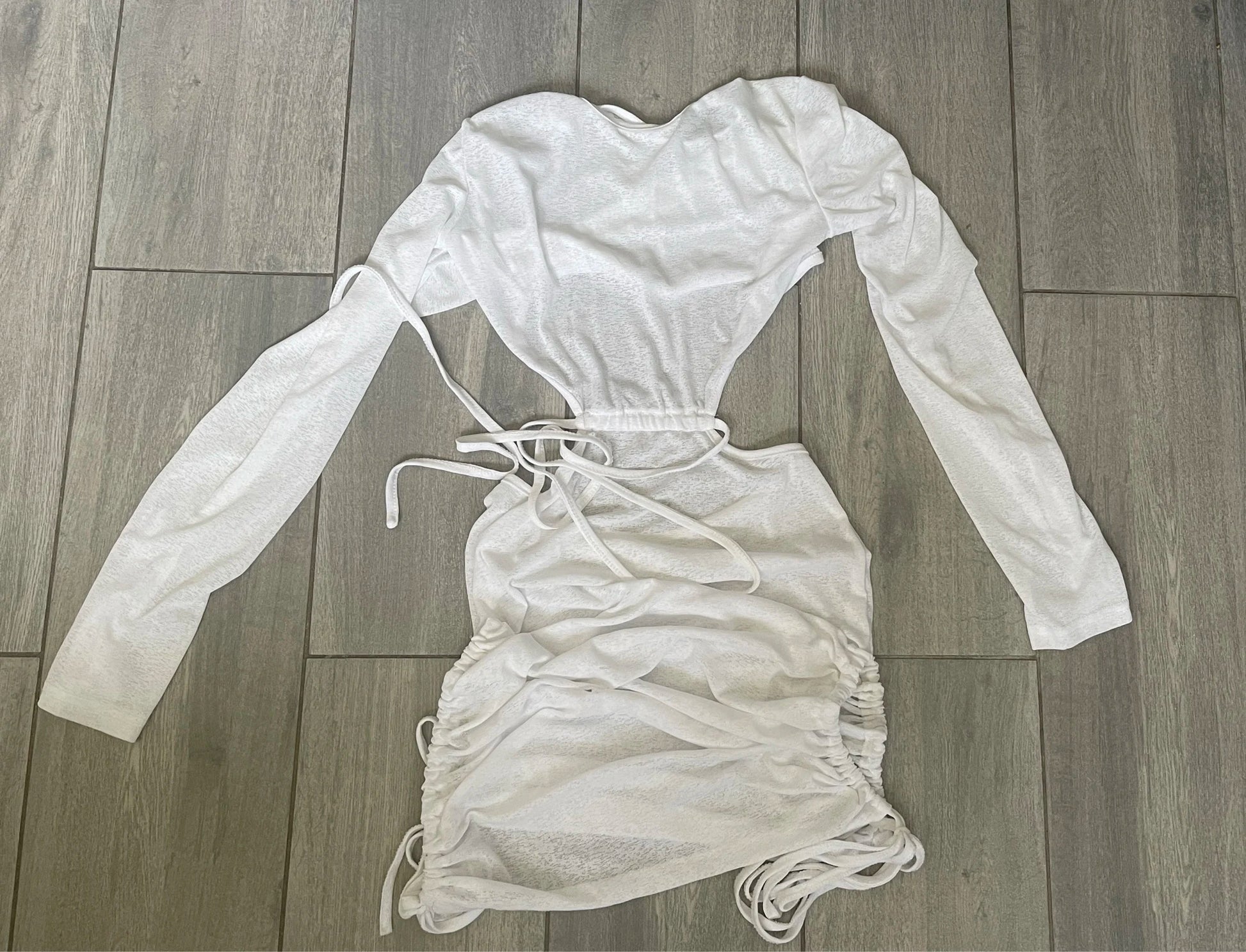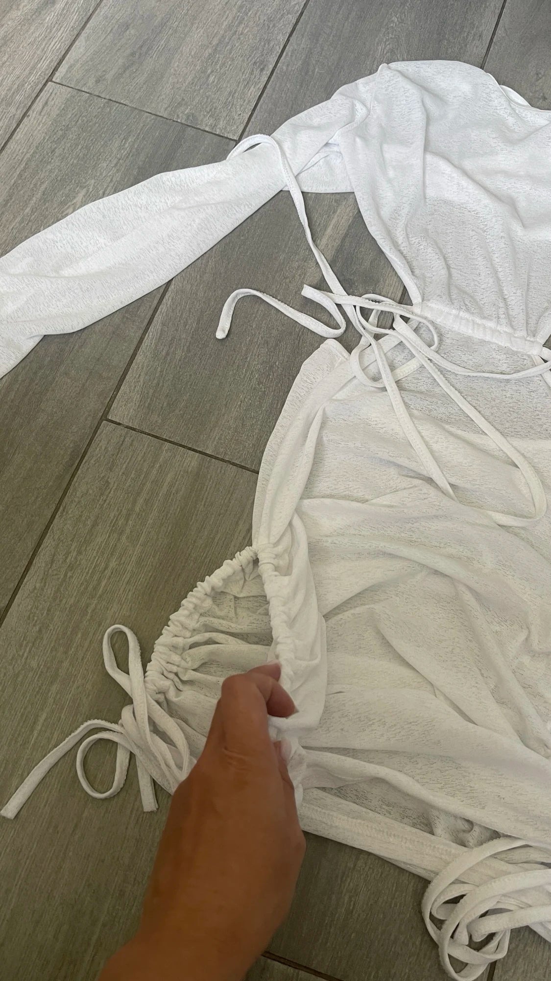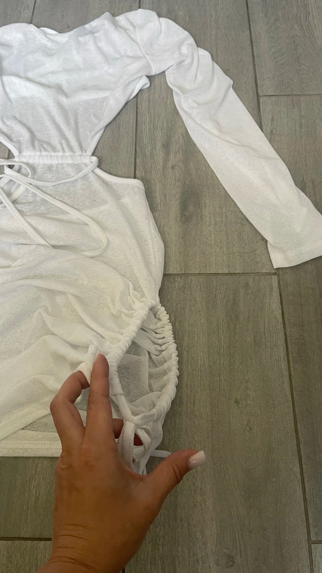 Women's Elegant Drawstring Ruched Cut Out Bandage Mini Party Long Sleeve Dress