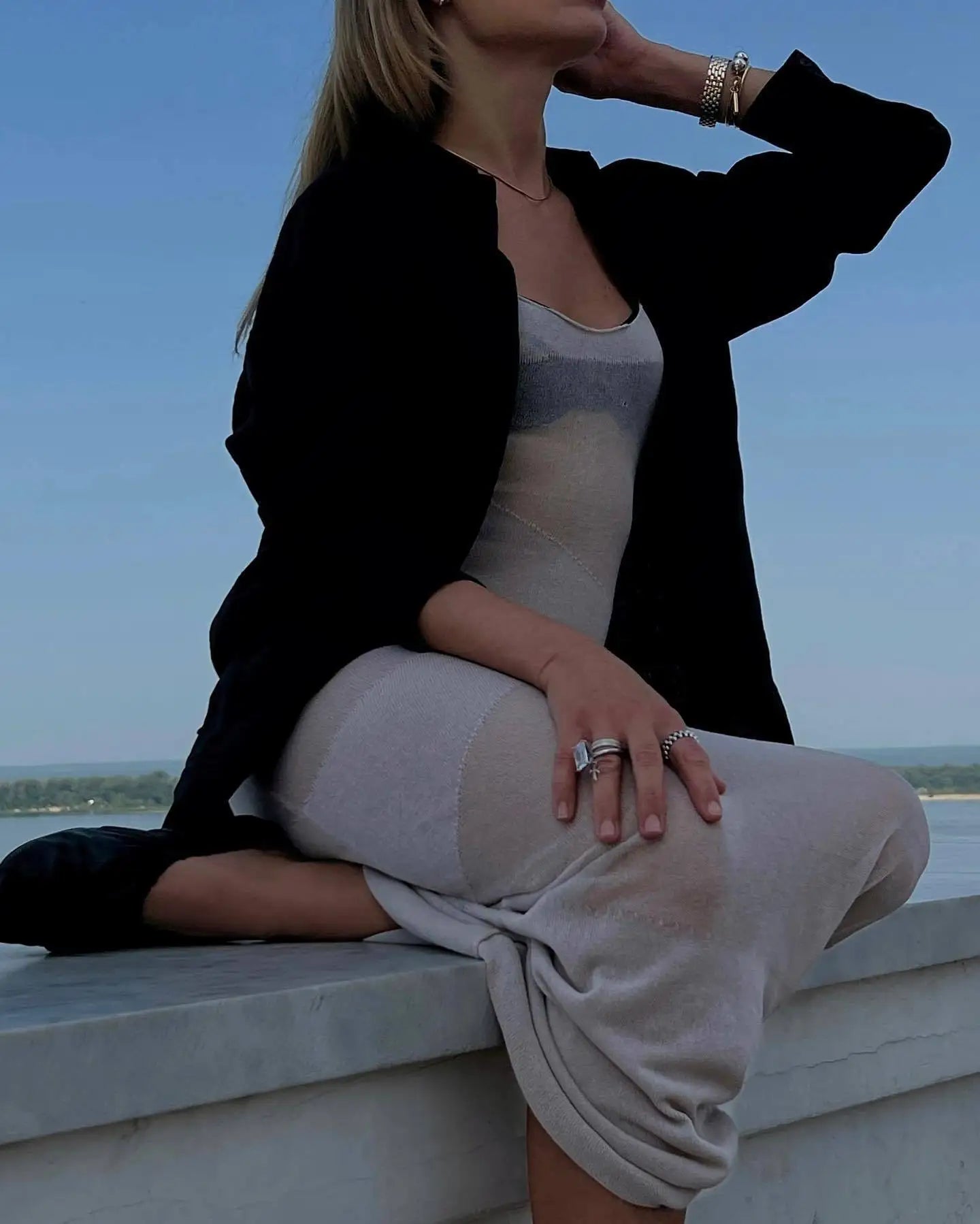 Women's Elegant Knitted See Through Beachwear Maxi Sleeveless Backless Dress