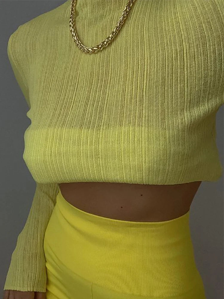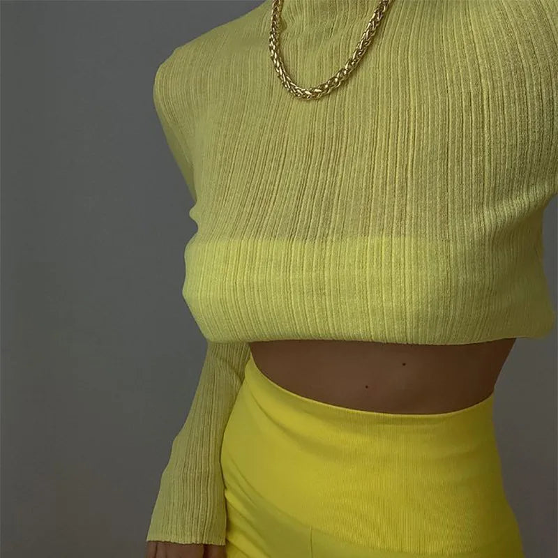 Women's Elegant See Through Long Sleeve Mock Neck Top