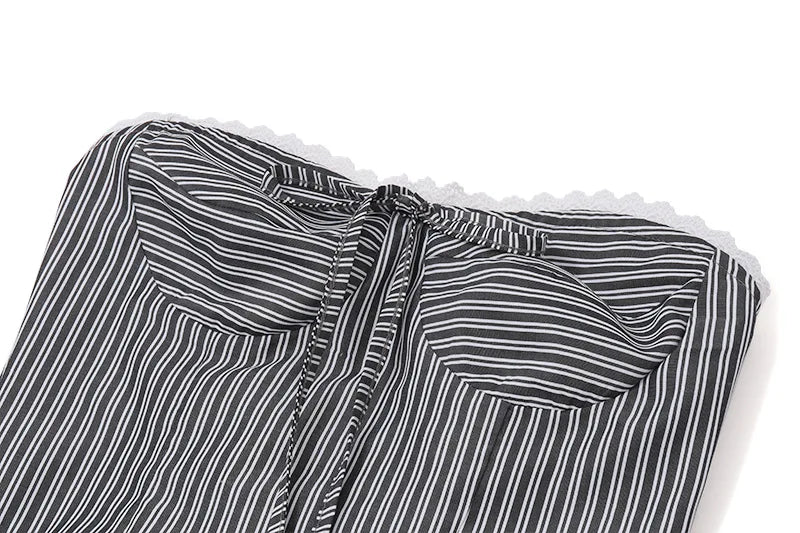 Women's Embellished Fashion Striped Sexy Strapless Top and Pant 2 Piece Sets Women Summer Outfits Coquette Aesthetic